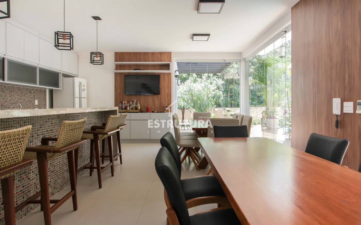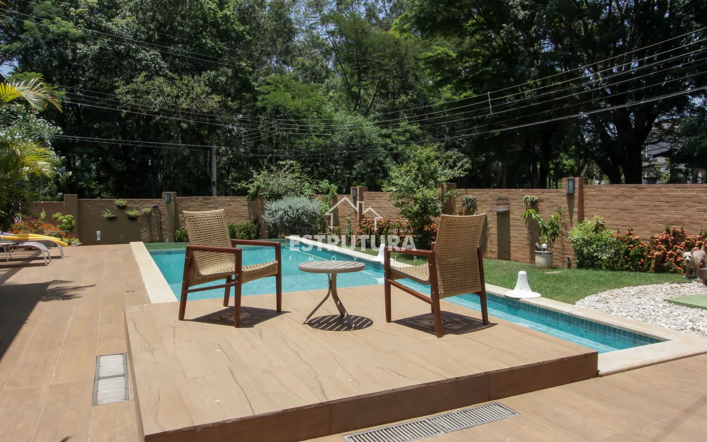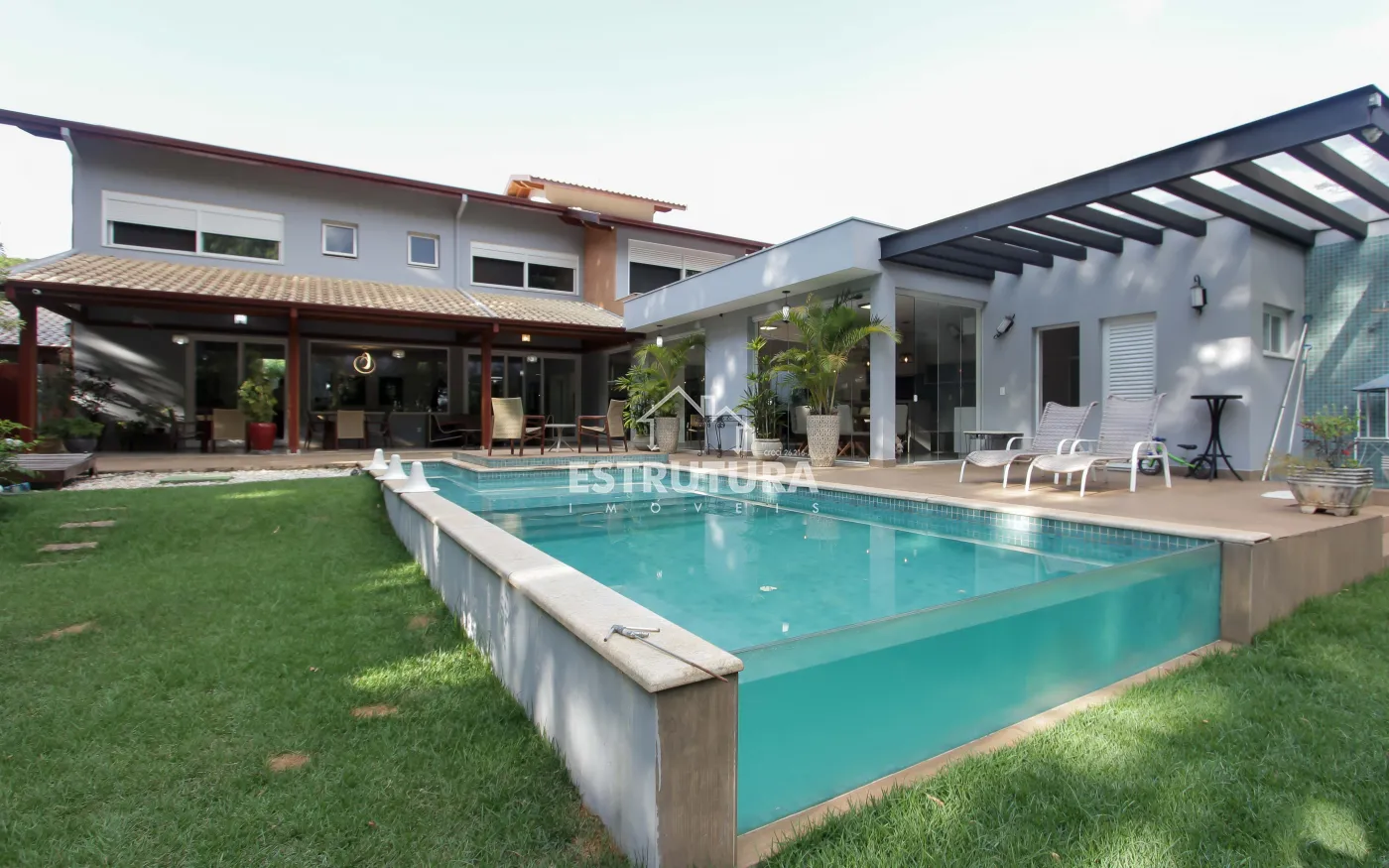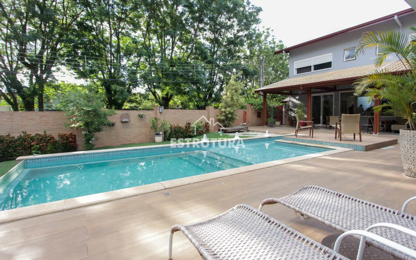 A área de lazer é um verdadeiro refúgio, com piscina, hidromassagem, deck, varanda, pergolado e rancho, proporcionando um espaço perfeito para relaxar e receber amigos e familiares. Além disso, a residência conta com um banheiro adicional, uma adega subterrânea para os apreciadores de vinhos, uma sala de estar com TV e uma suíte master, além de três suítes adicionais, todas com móveis planejados, garantindo o máximo de conforto e organização.