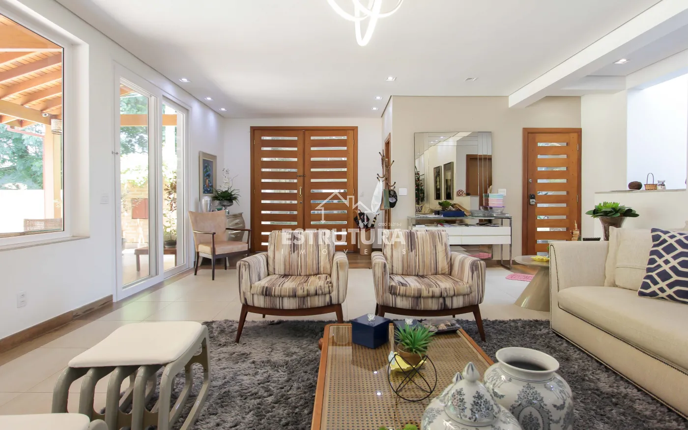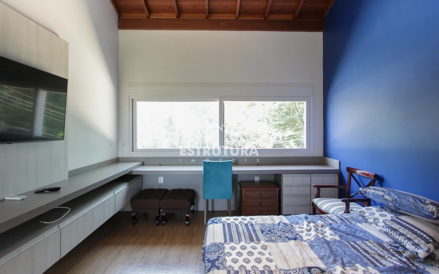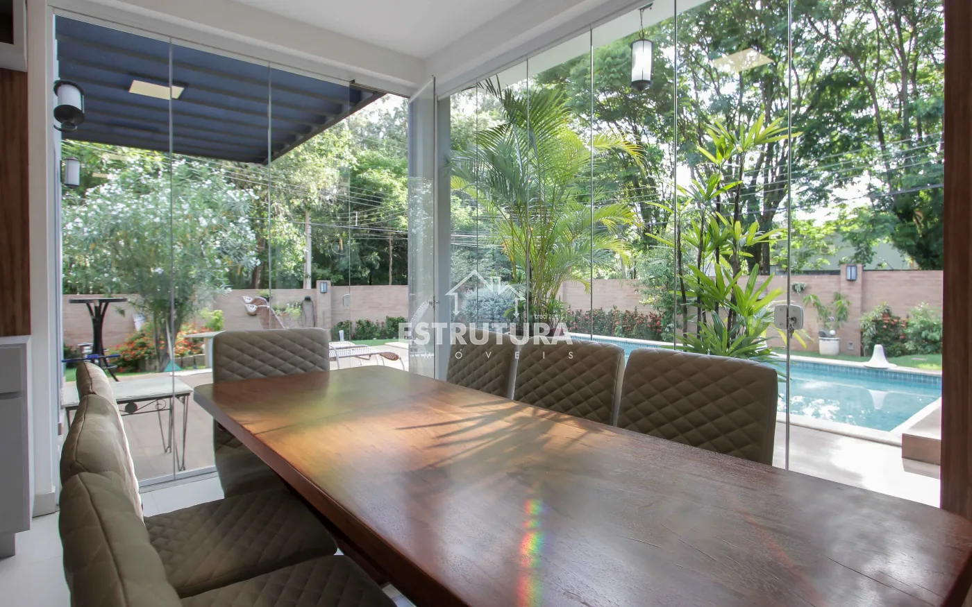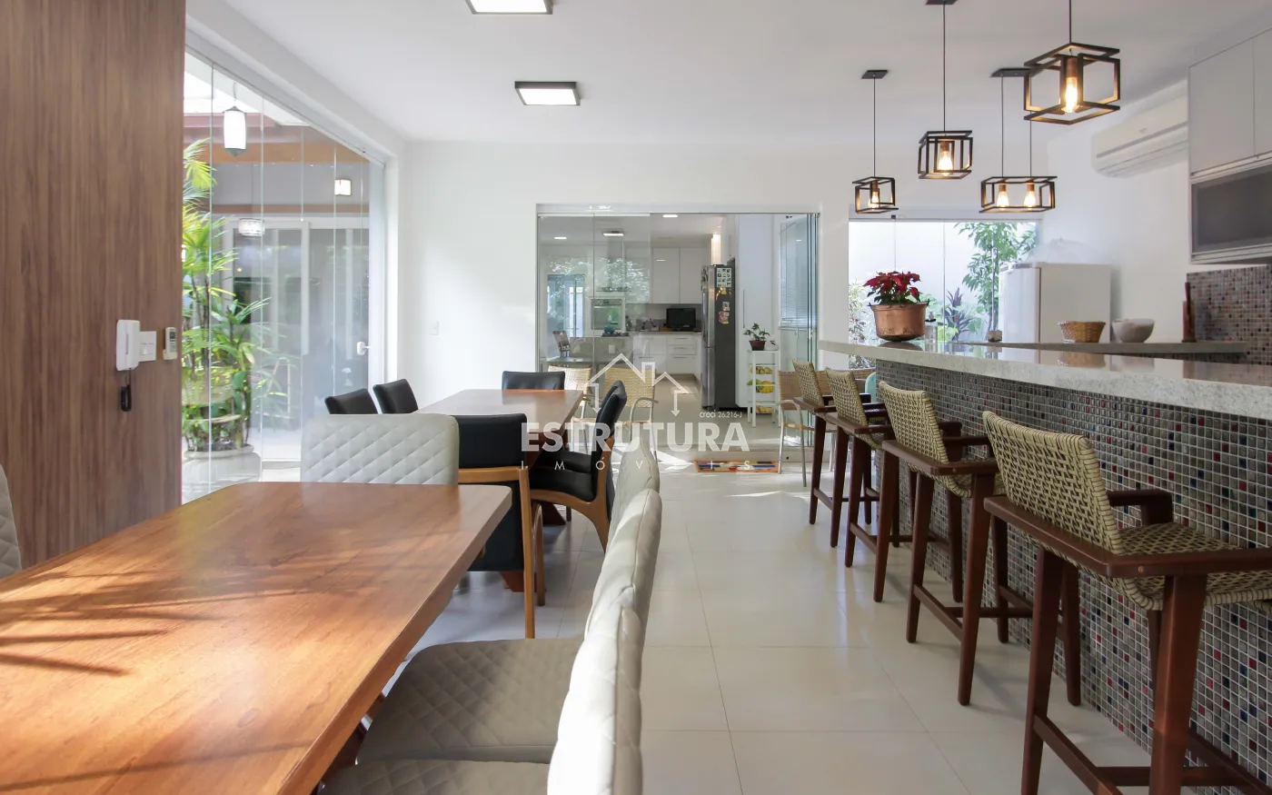 A área de lazer é um verdadeiro refúgio, com piscina, hidromassagem, deck, varanda, pergolado e rancho, proporcionando um espaço perfeito para relaxar e receber amigos e familiares. Além disso, a residência conta com um banheiro adicional, uma adega subterrânea para os apreciadores de vinhos, uma sala de estar com TV e uma suíte master, além de três suítes adicionais, todas com móveis planejados, garantindo o máximo de conforto e organização.