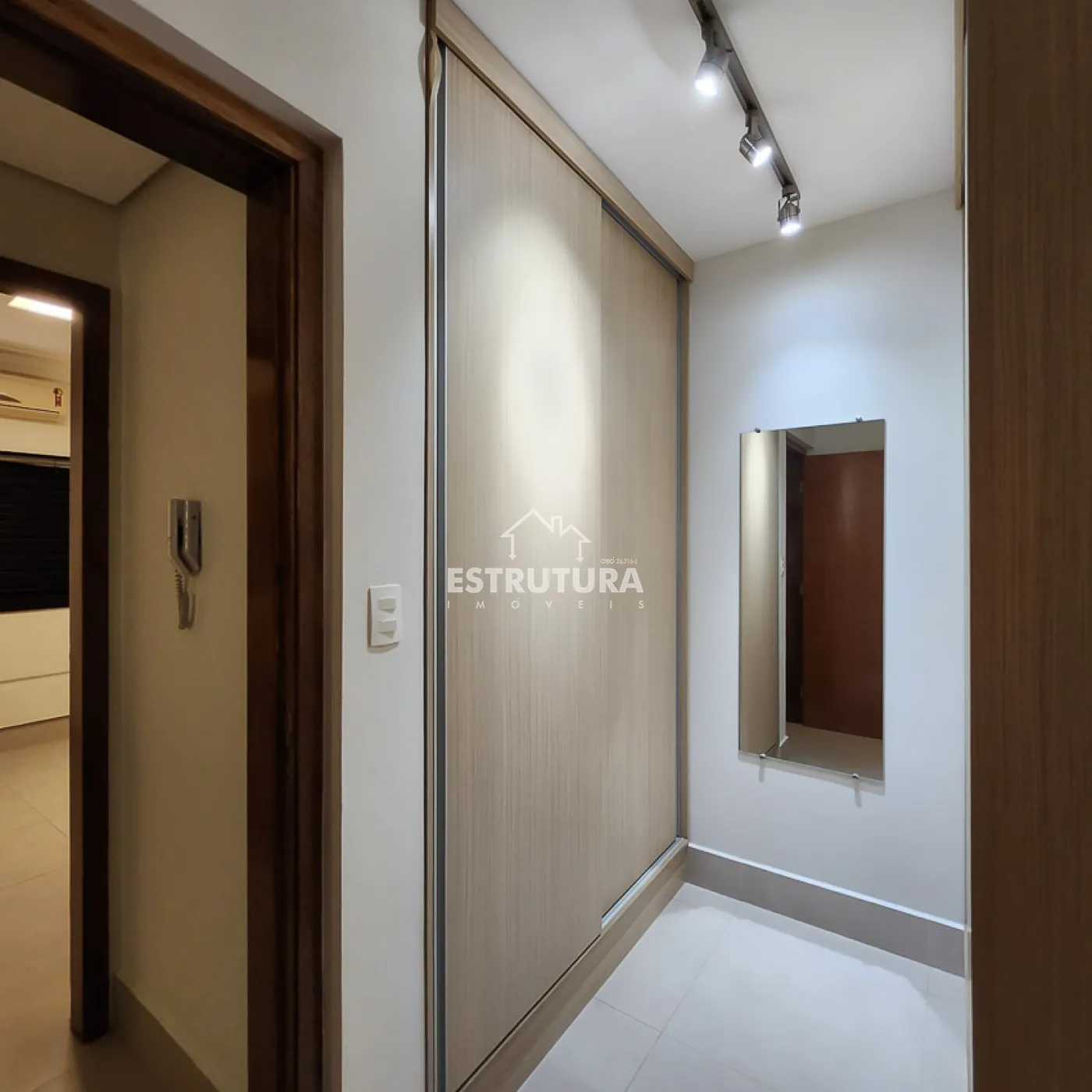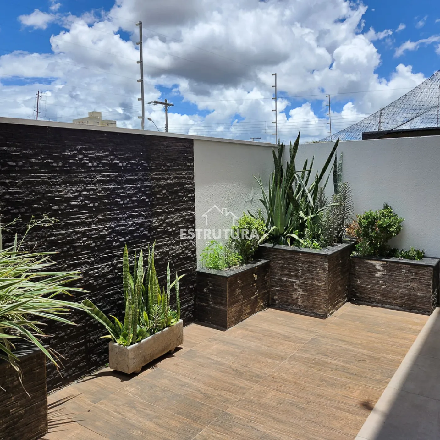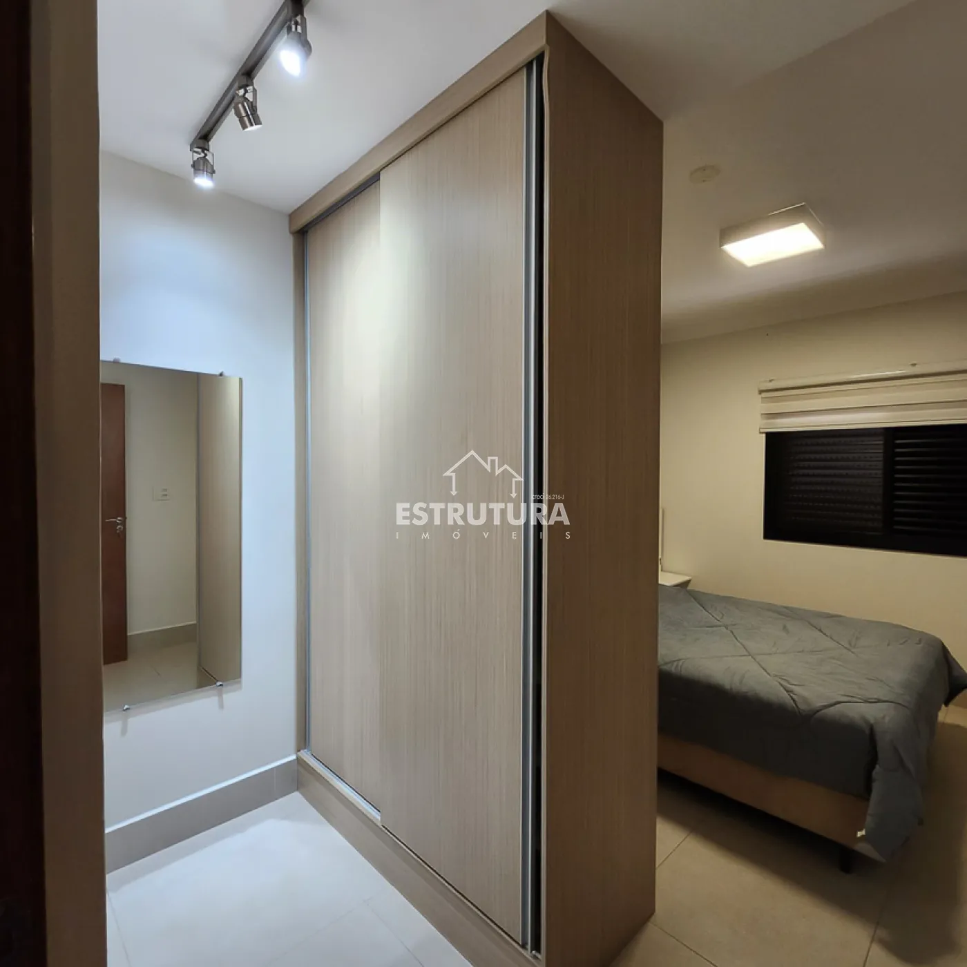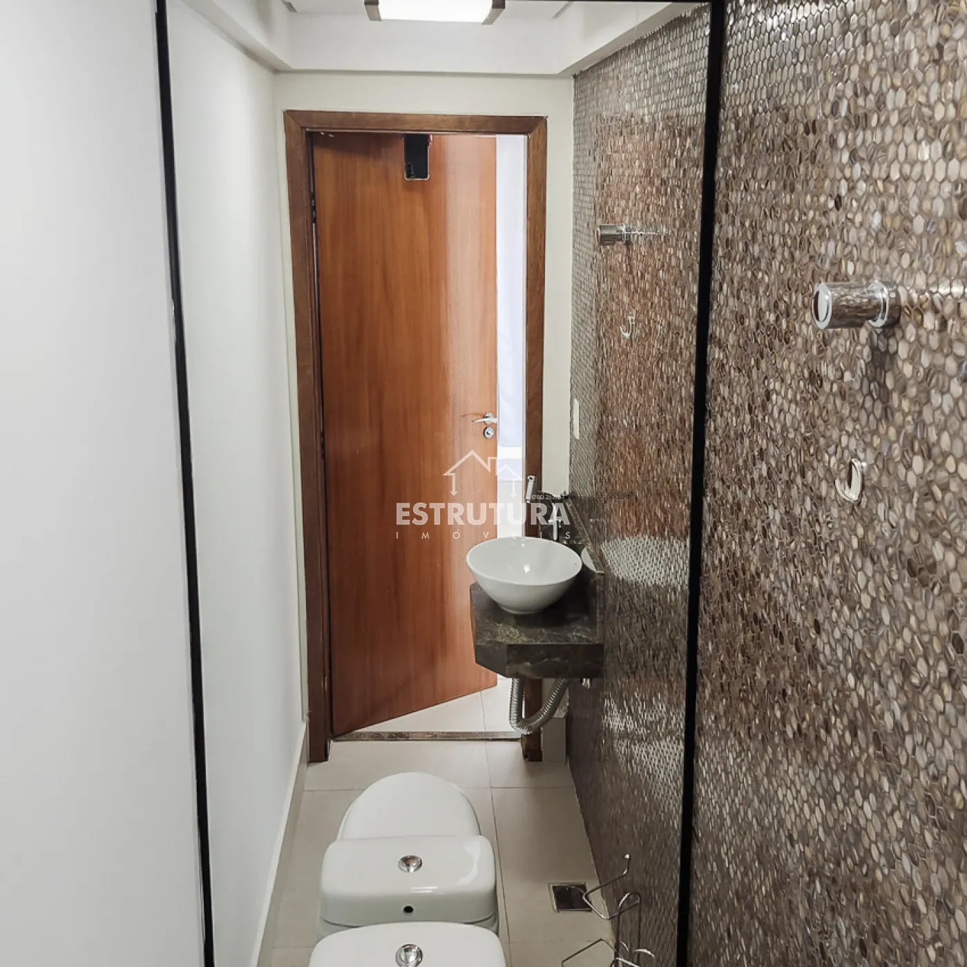 Este imóvel conta com uma sala espaçosa para dois ambientes, equipada com painel e ar condicionado, além de um lavabo. A cozinha é completa, com armários planejados, coifa e fogão embutido, oferecendo praticidade e elegância no dia a dia.