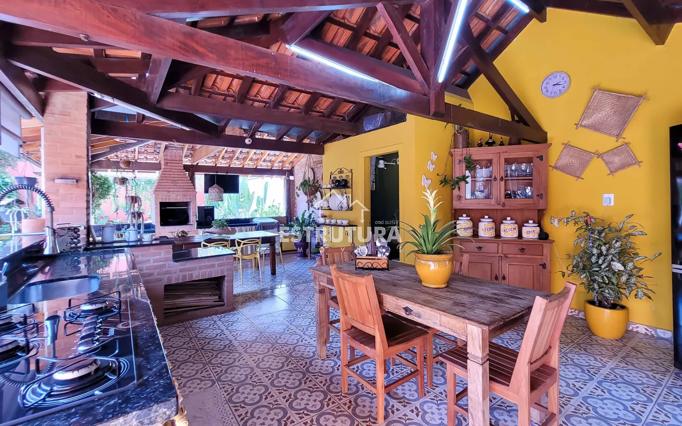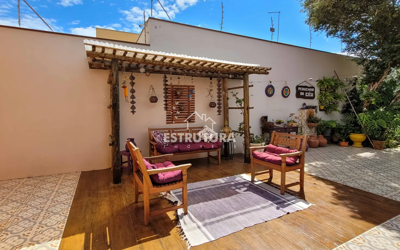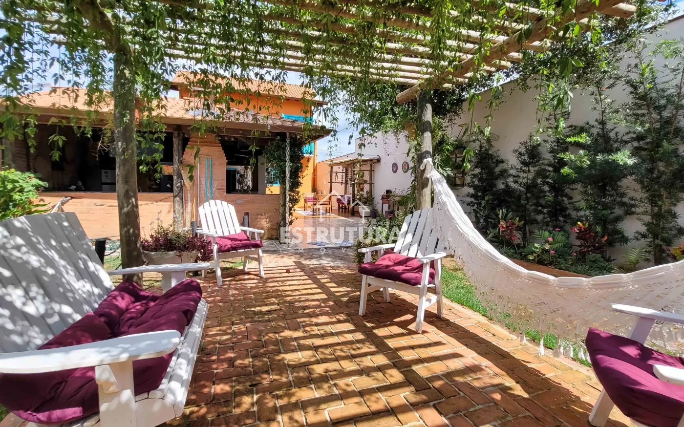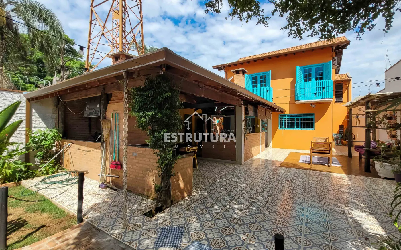 Casa assobradada contendo no piso inferior garagem para 4 carros, sala de estar, escritório, lavabo, sala de jantar, cozinha, despensa, amplo quintal com árvores frutíferas, cozinha externa, banheiro externo. No piso superior, 2 dormitórios, sendo 1 suíte com sacada e armários, banheiro social, sala de descanso e espaço gourmet com churrasqueira.