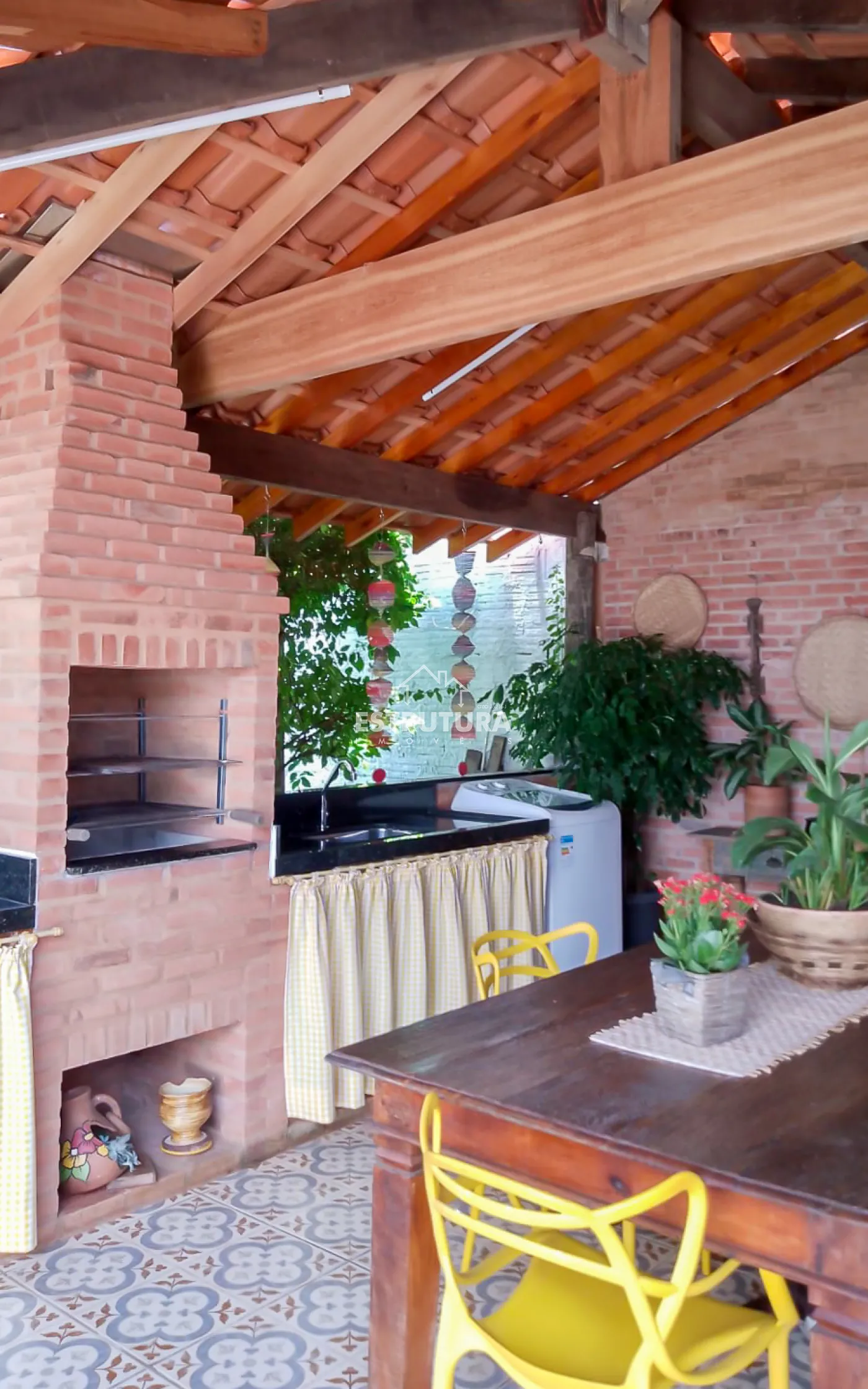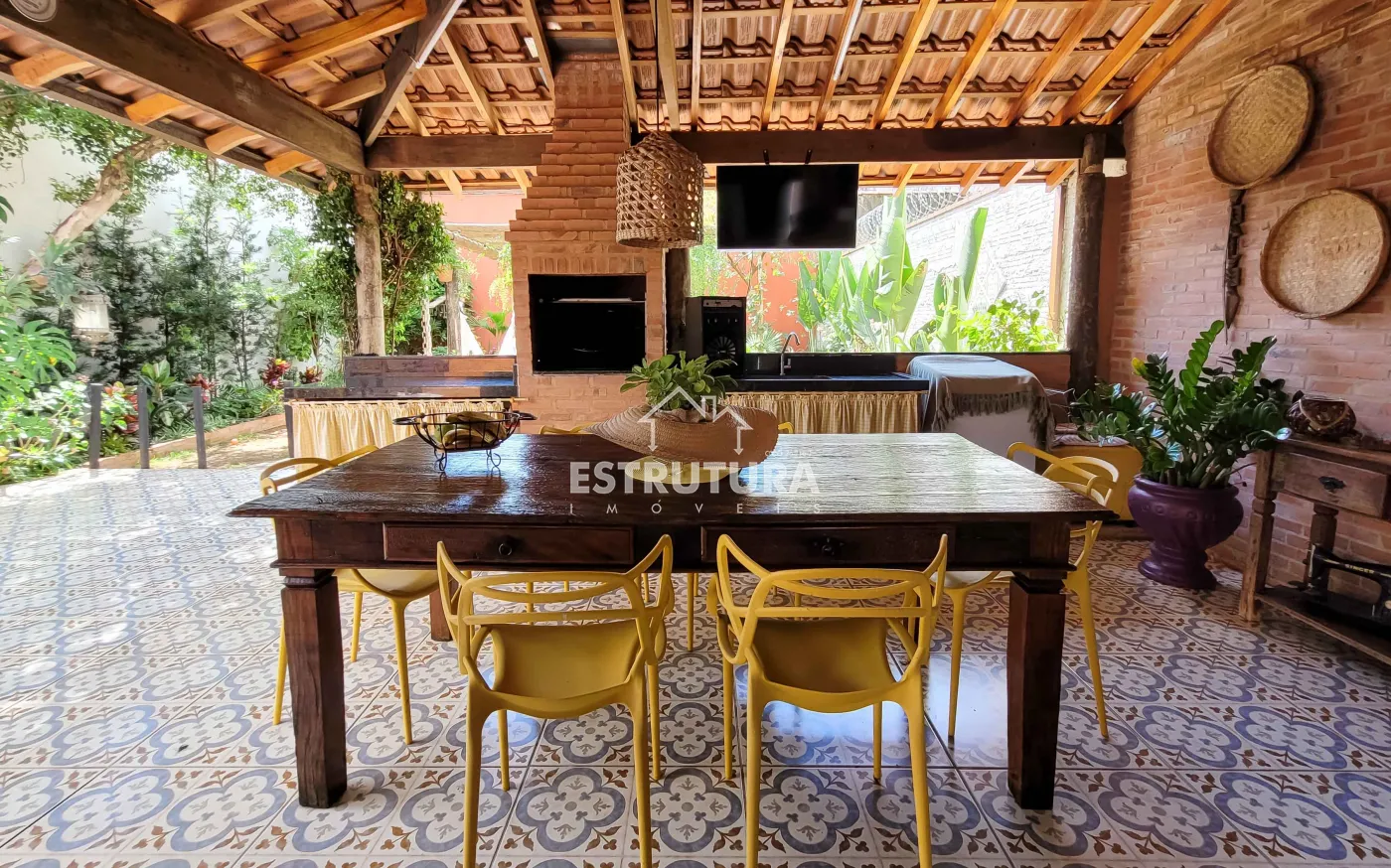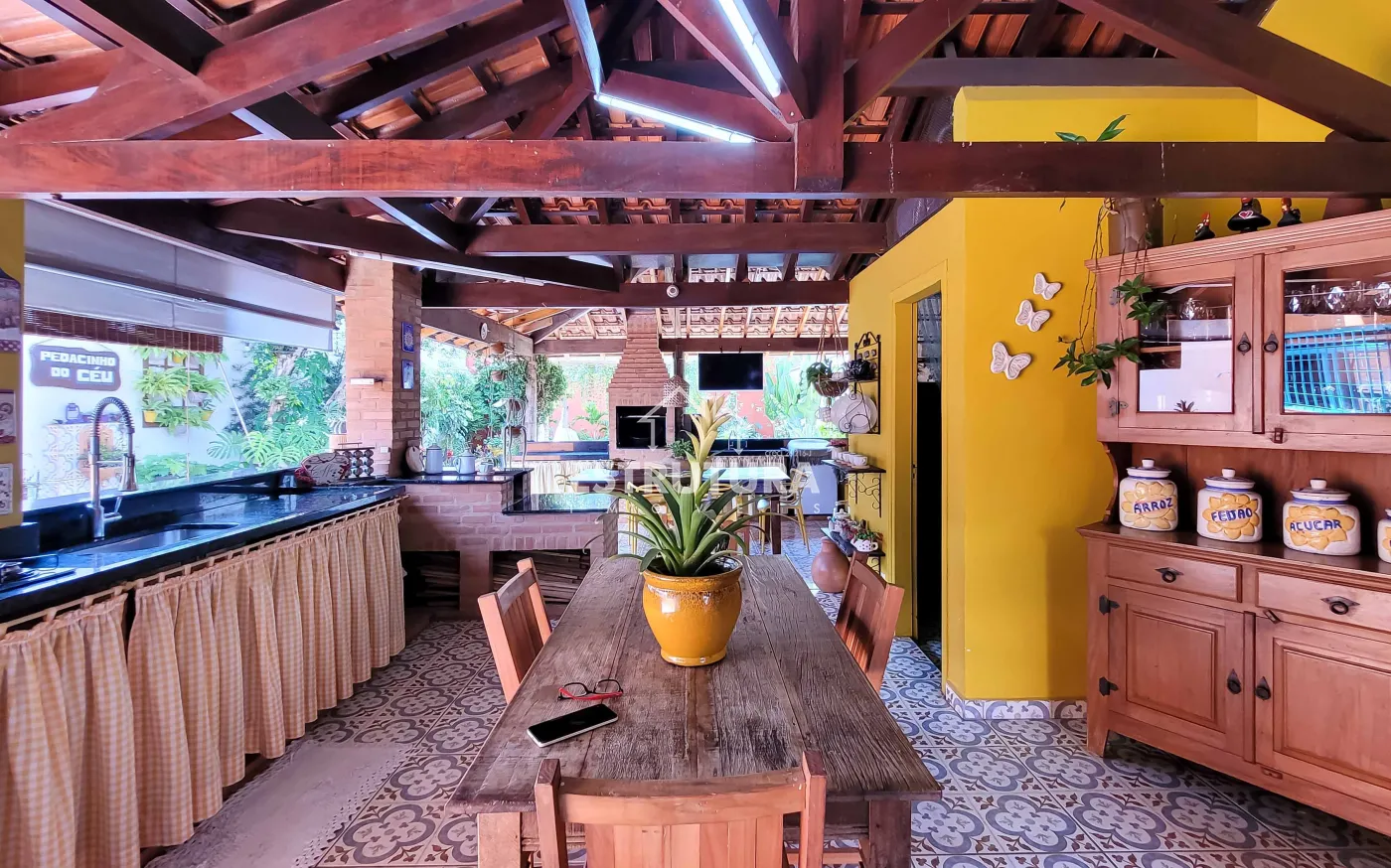 Casa assobradada contendo no piso inferior garagem para 4 carros, sala de estar, escritório, lavabo, sala de jantar, cozinha, despensa, amplo quintal com árvores frutíferas, cozinha externa, banheiro externo. No piso superior, 2 dormitórios, sendo 1 suíte com sacada e armários, banheiro social, sala de descanso e espaço gourmet com churrasqueira.