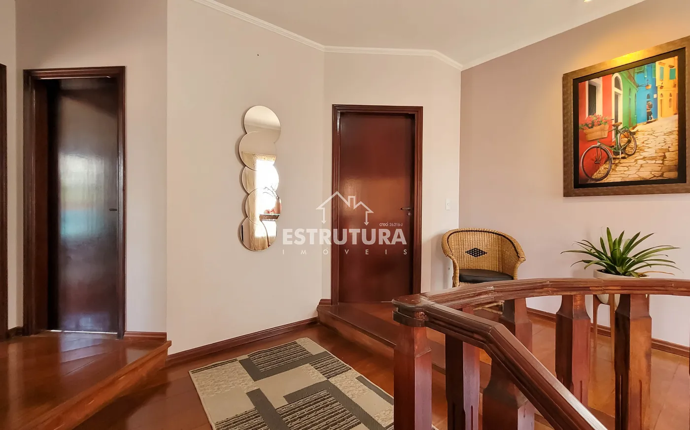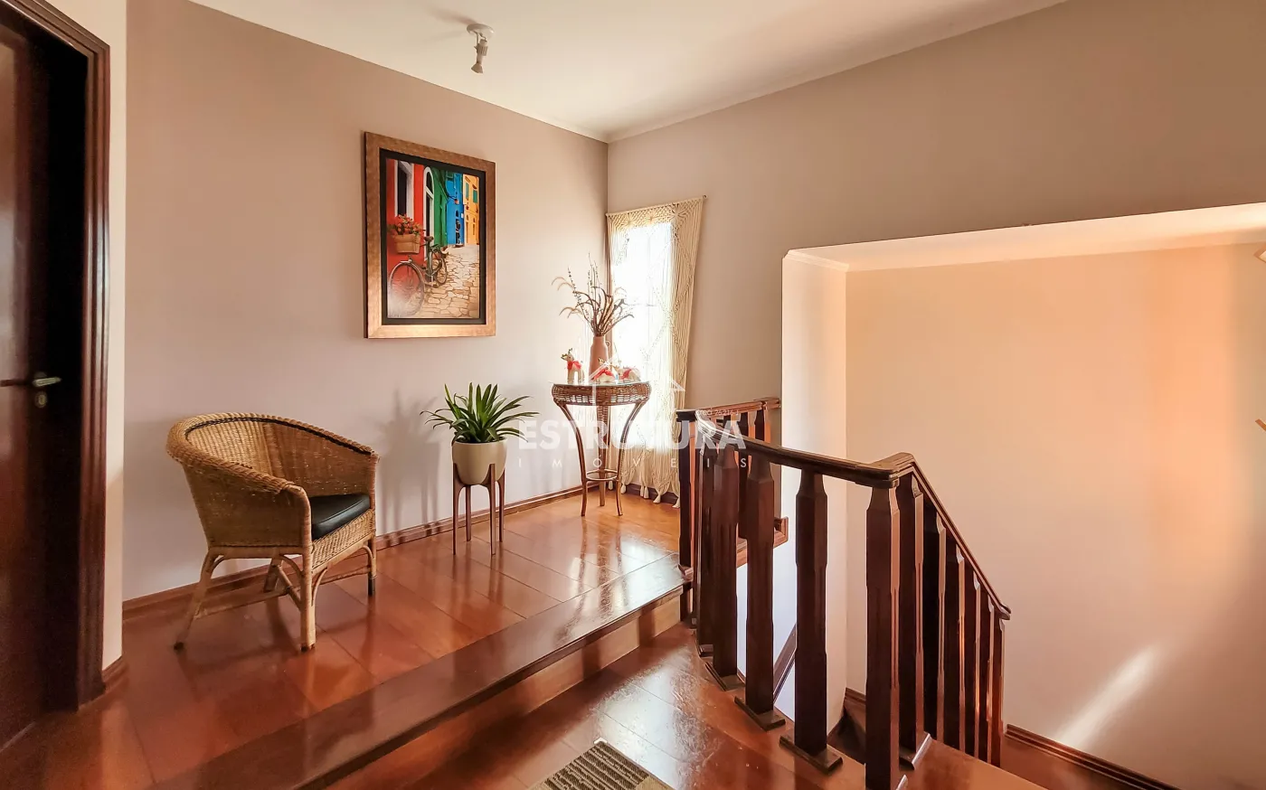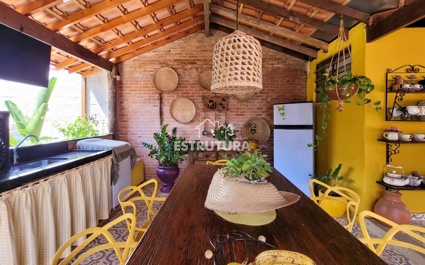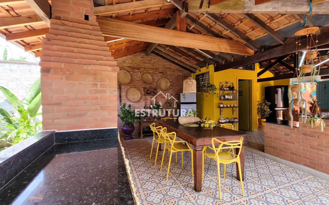 Casa assobradada contendo no piso inferior garagem para 4 carros, sala de estar, escritório, lavabo, sala de jantar, cozinha, despensa, amplo quintal com árvores frutíferas, cozinha externa, banheiro externo. No piso superior, 2 dormitórios, sendo 1 suíte com sacada e armários, banheiro social, sala de descanso e espaço gourmet com churrasqueira.