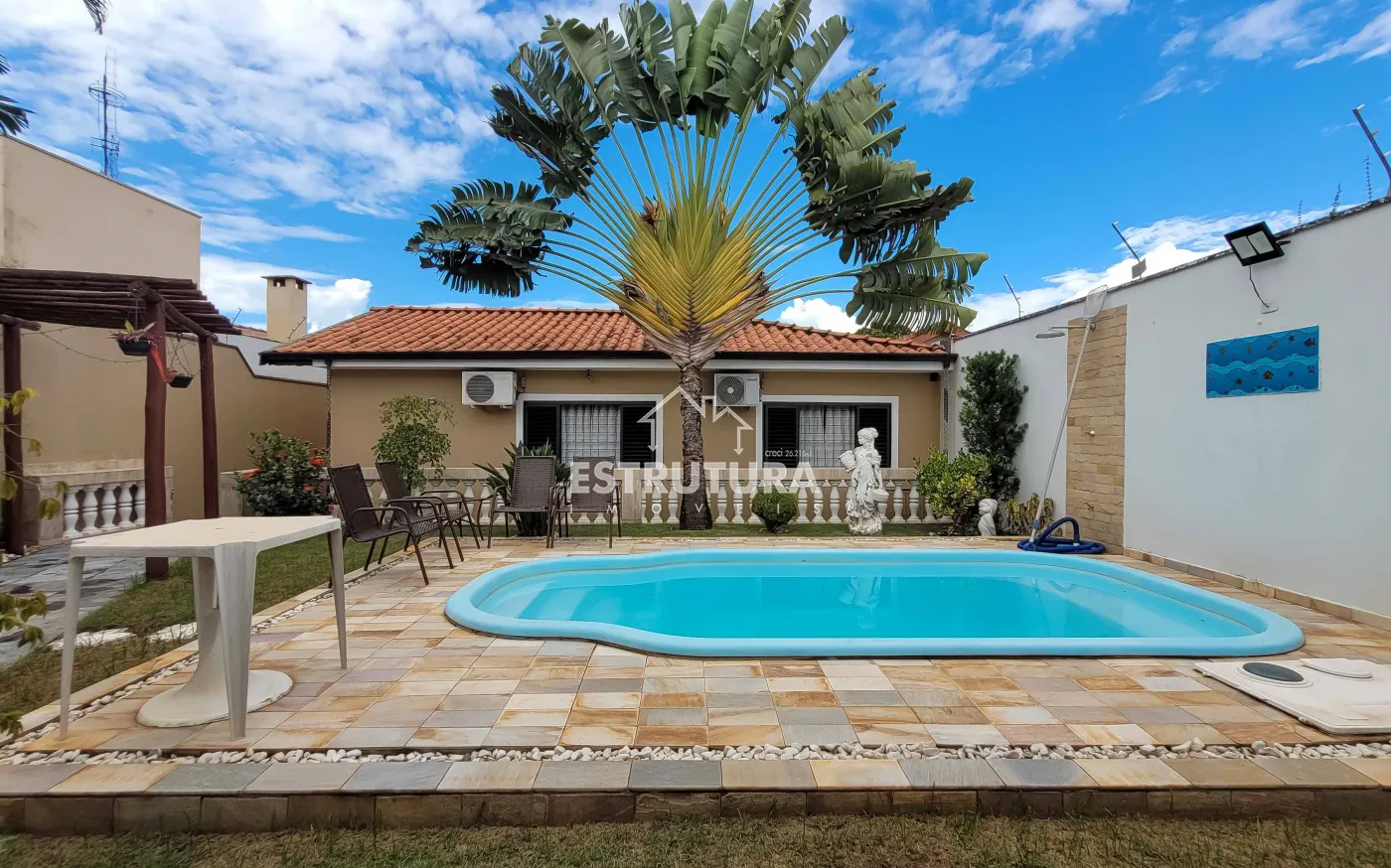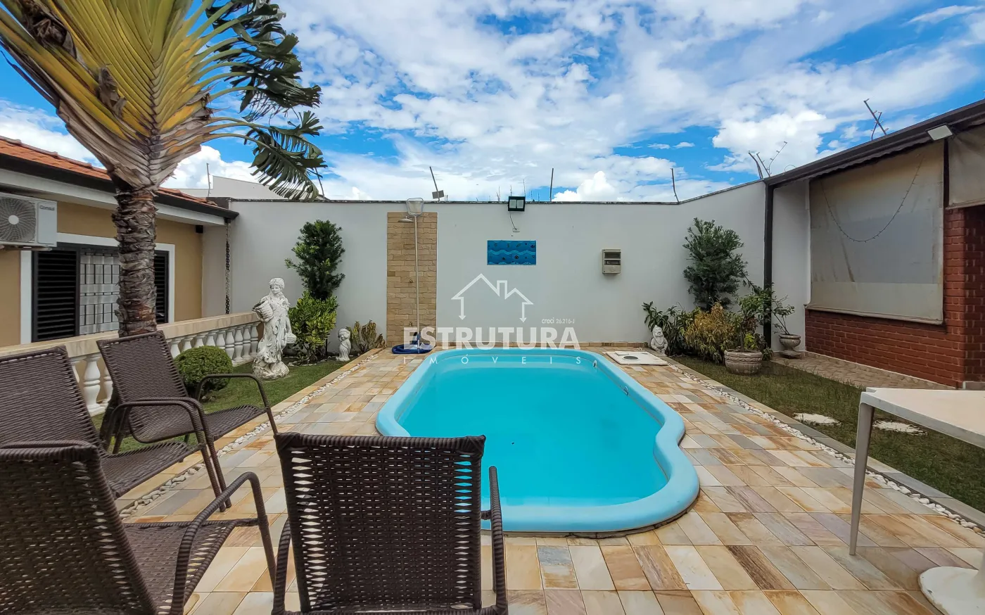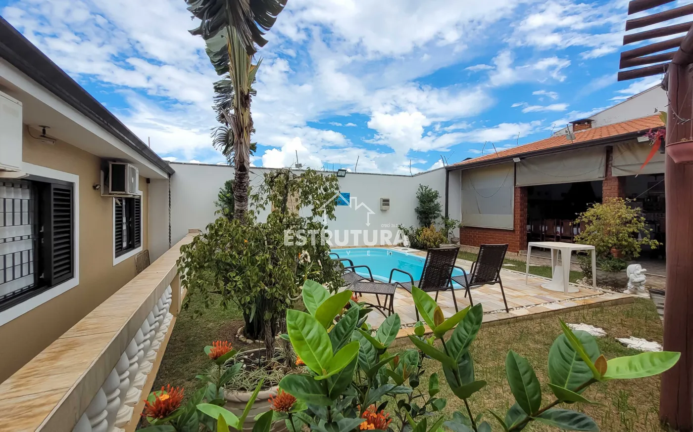Uma linda casa localizada em um dos bairros mais procurados da cidade, próxima a escolas, mercados e farmácias, ideal para quem busca conforto, praticidade e qualidade de vida. O imóvel conta com três dormitórios, sendo um deles uma suíte com closet e ar condicionado , além de uma sala aconchegante com areade luz, lavabo e sala de jantar integrada. A cozinha é funcional e bem distribuída. A casa dispõe ainda de banheiro social, despensa e área de serviço, oferecendo toda a estrutura necessária para o dia a dia. Na parte externa, o quintal com jardim cria um espaço agradável de convivência, complementado por uma piscina e uma área gourmet com banheiro, perfeita para momentos de lazer e confraternização. Nos fundos, há ainda um dormitório adicional, ideal para hóspedes ou uso versátil conforme a necessidade.