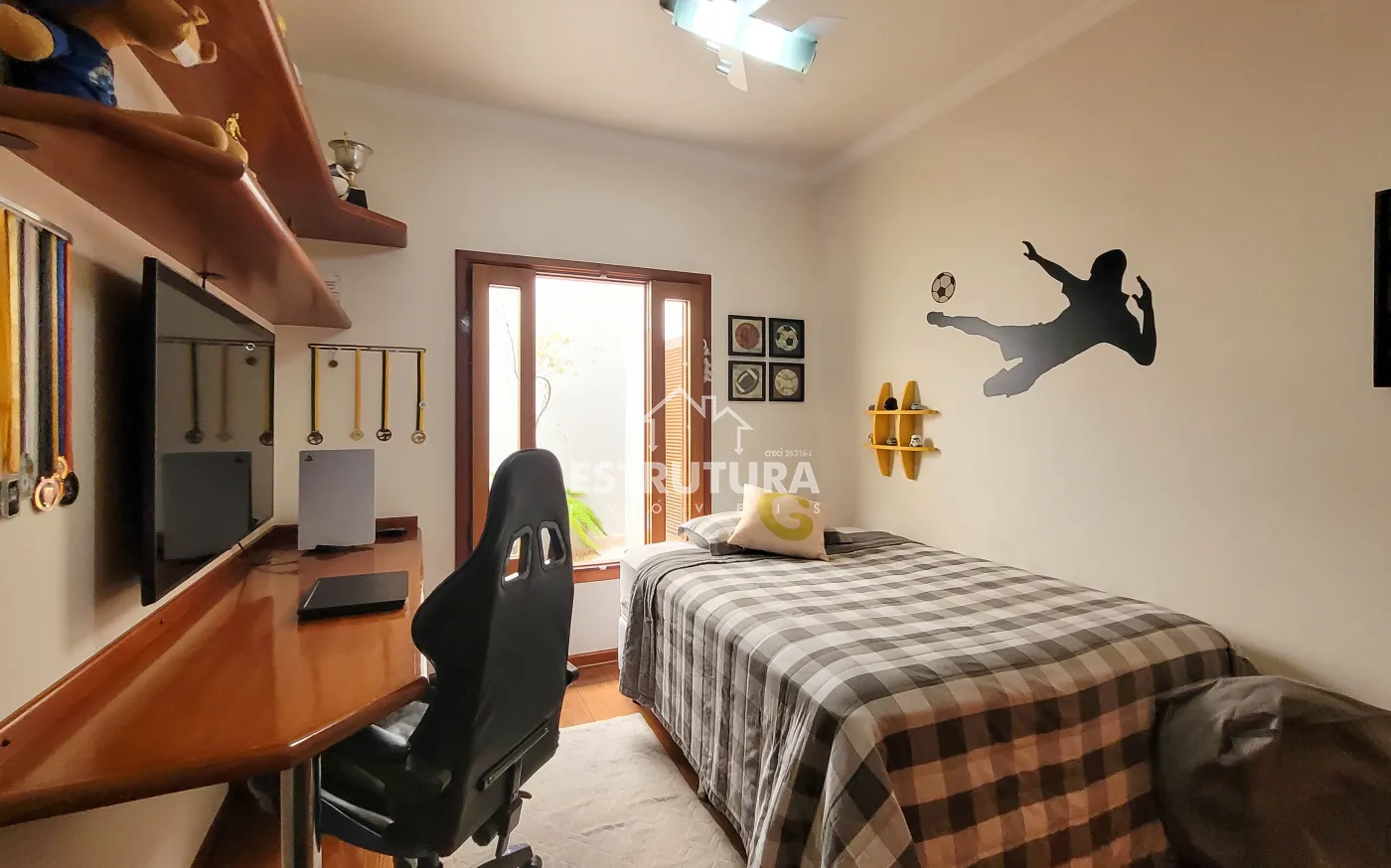 Linda residência com detalhes em madeira maciça, localizada em bairro nobre da cidade. Conta com ampla garagem com pé-direito alto, integrada à sua área gourmet equipada com churrasqueira, lavabo para convidados e espaço pronto para sauna, ideal para momentos de lazer e convivência.