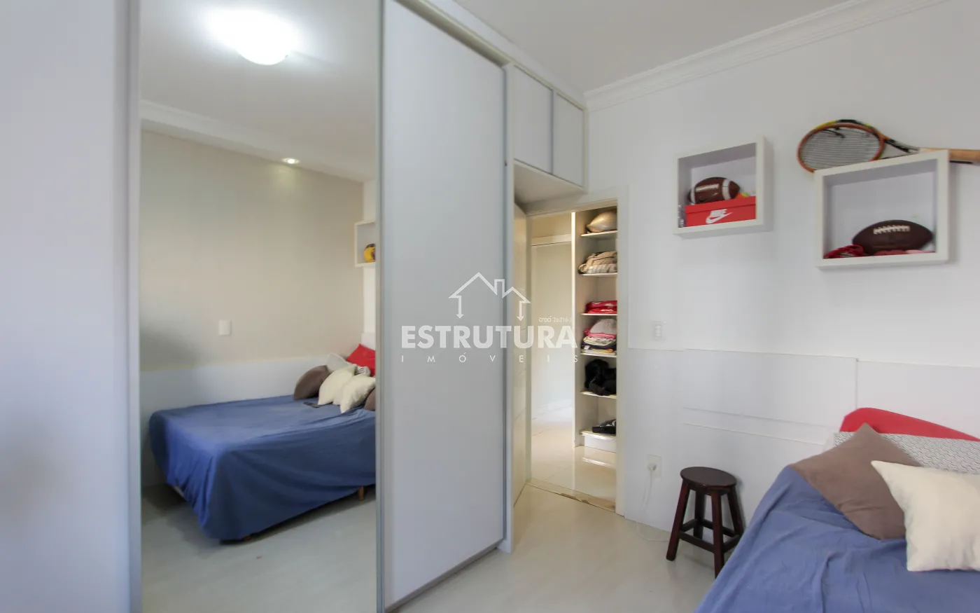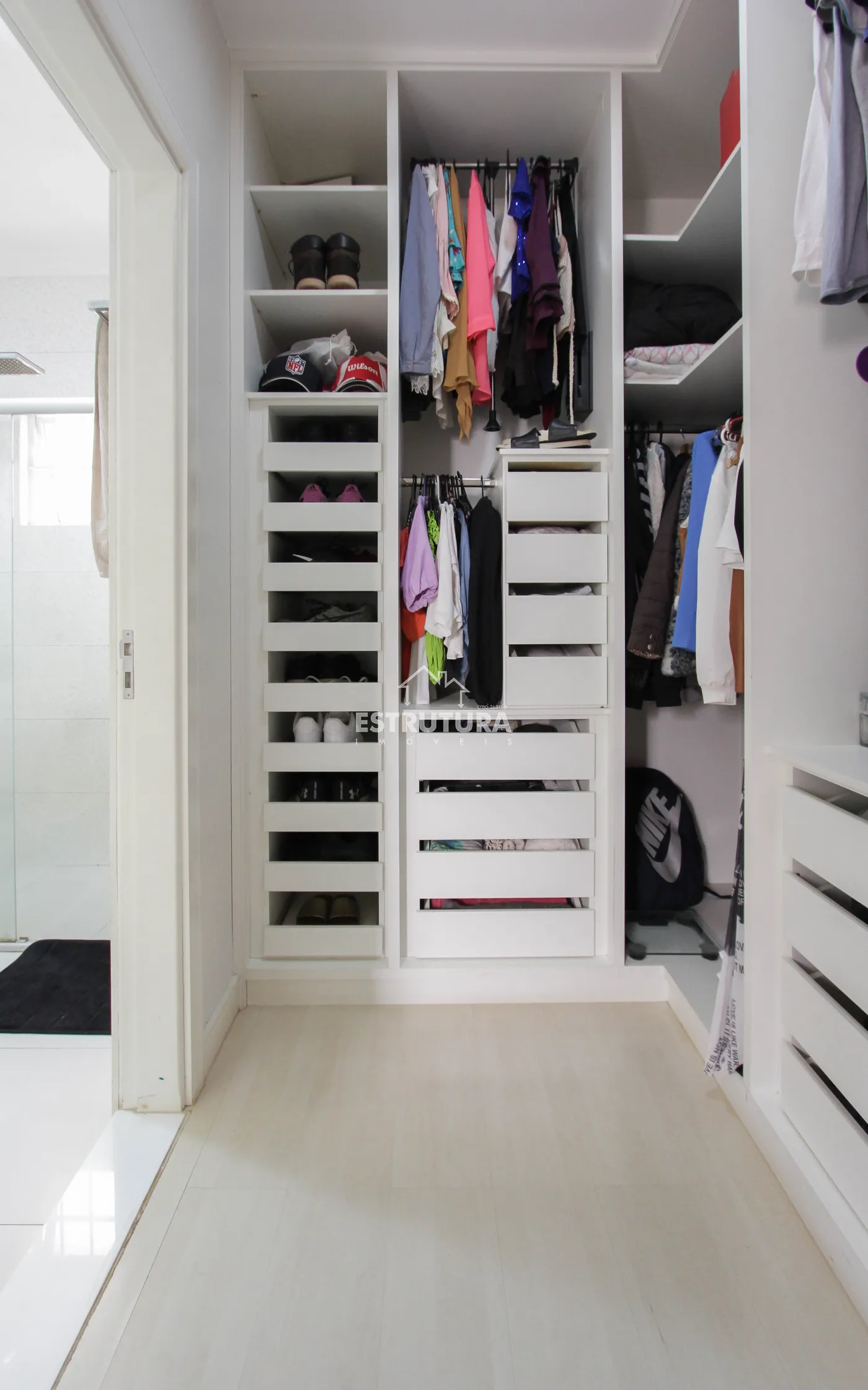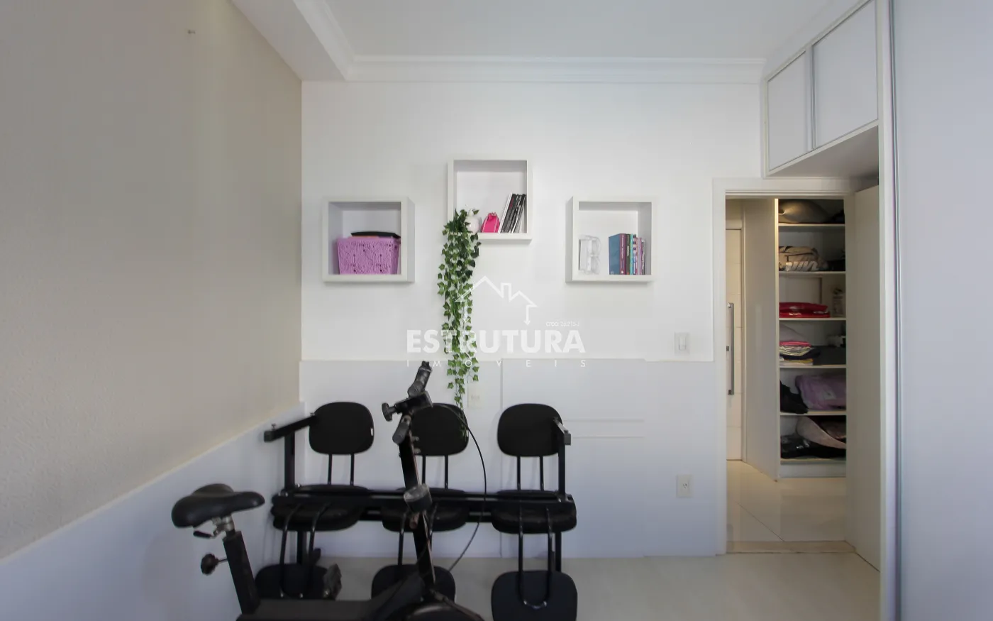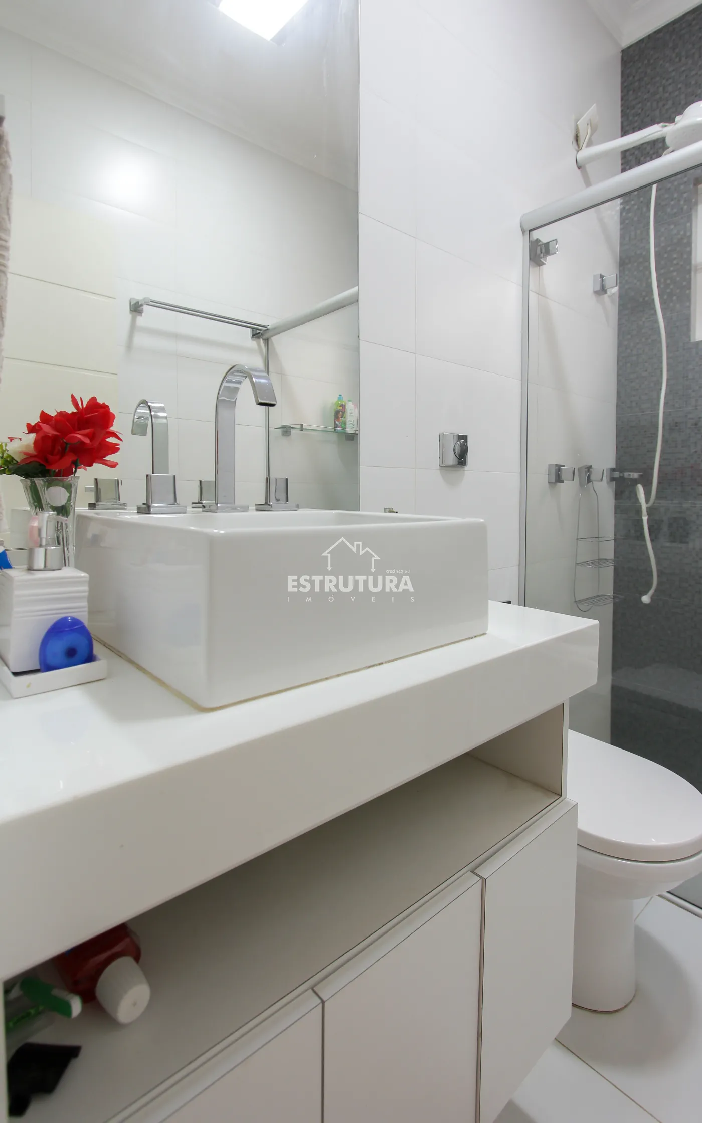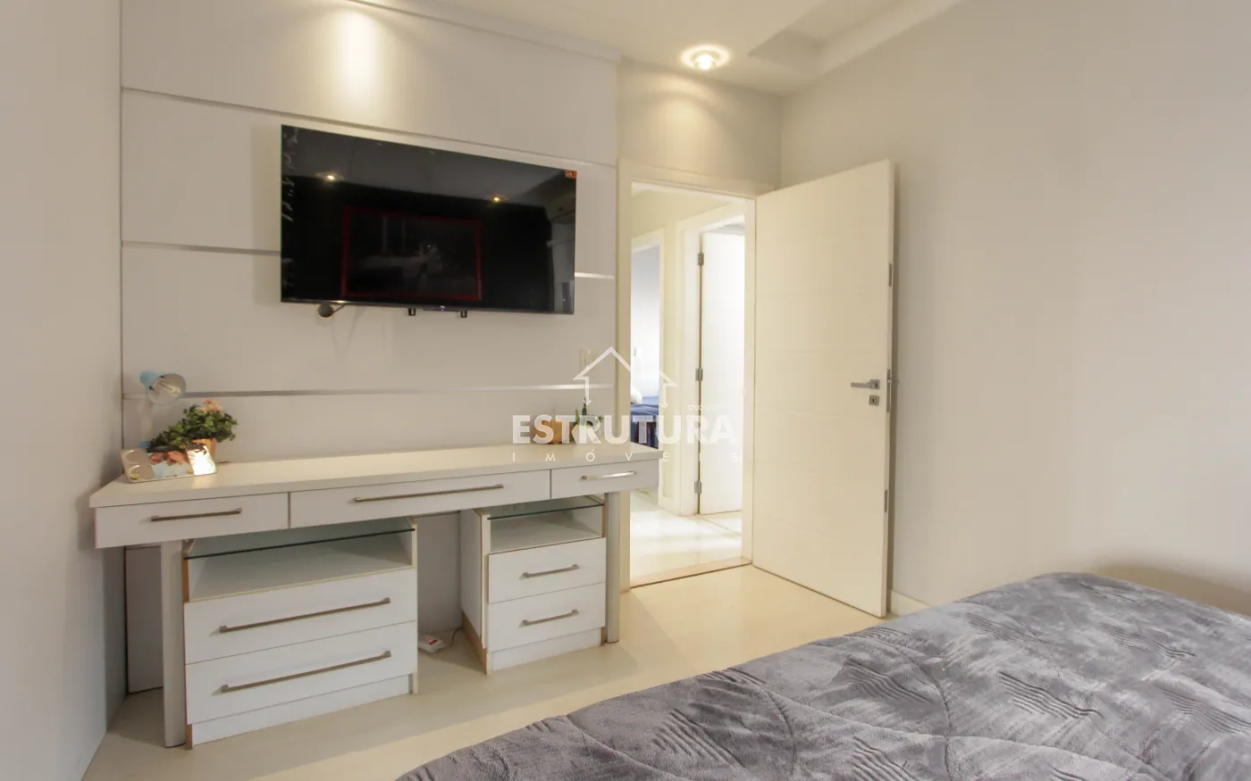 Garagem coberta para 02 carros e descoberta para 01 carro, 03 dormitórios com armários, sendo uma suíte com closet, ar-condicionado, sala de estar e jantar, sala de TV, espaço bar, área de luz, lavabo, cozinha equipada e com armários planejados, área de serviço com planejados, área externa com piscina, sauna, ducha, banheiro social e churrasqueira.