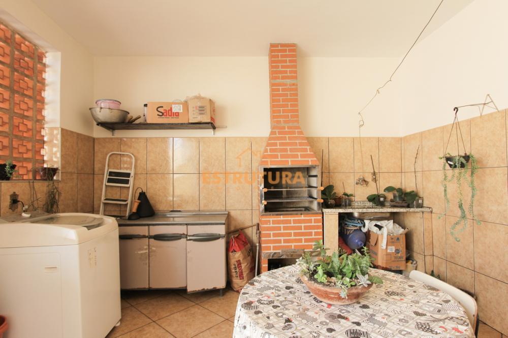Fundos: edícula com quarto, cozinha, área social, churrasqueira, quintal.