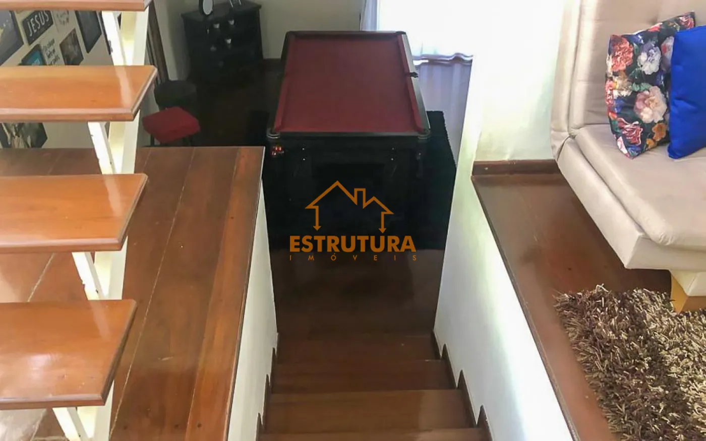 Ótima residência, construção em perfeito estado. Garagem para 2 carros, 2 suítes com planejados, uma delas com closet. Sala de jantar, cozinha e área de serviço também com planejados. Lavabo, sala de TV e sala de jogos no mesmo ambiente. No hall dos quartos, escritório. Área de lazer completa, sauna com sala de descanso e banheiro, churrasqueira, piscina, ducha. Uma cozinha externa com banheiro e um quintal com muitas árvores e plantas. Entrada de serviço isolada. A casa não é sobrado, mas tem 2 lances de escada. Assoalho na casa toda. Jardim de inverno, ar condicionado nos quartos. Casa excelente.