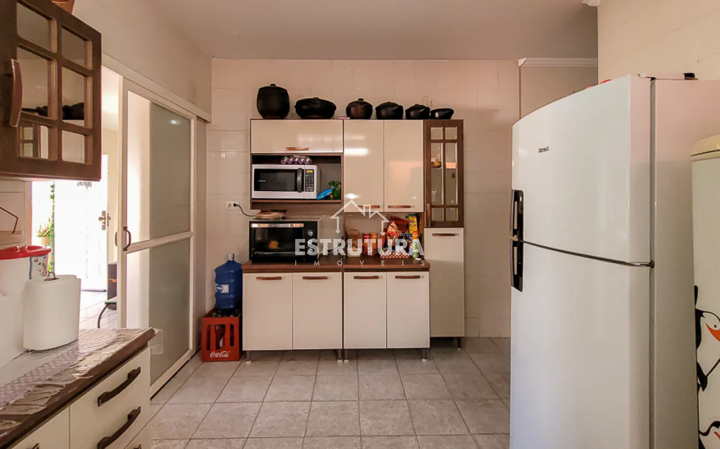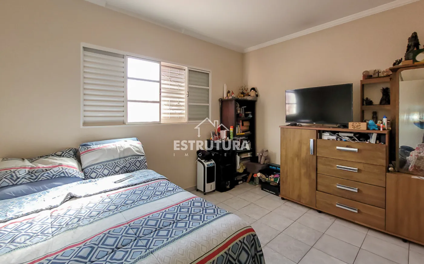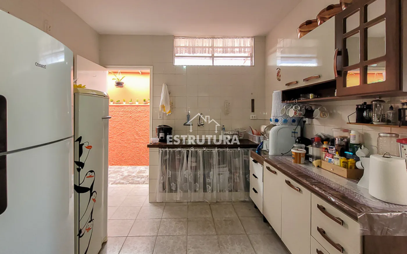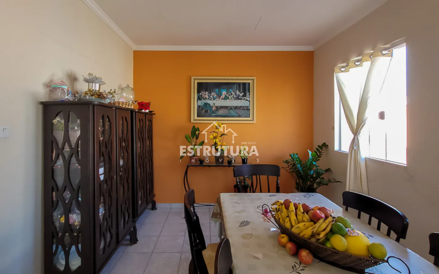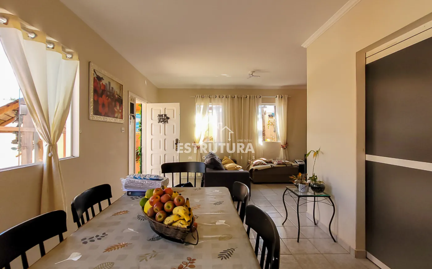 Casa com 4 vagas de garagem, 3 dormitórios, sendo 1 suíte, banheiro, sala e sala de jantar integradas, cozinha, área de serviço com banheiro, corredor, canil e quintal.