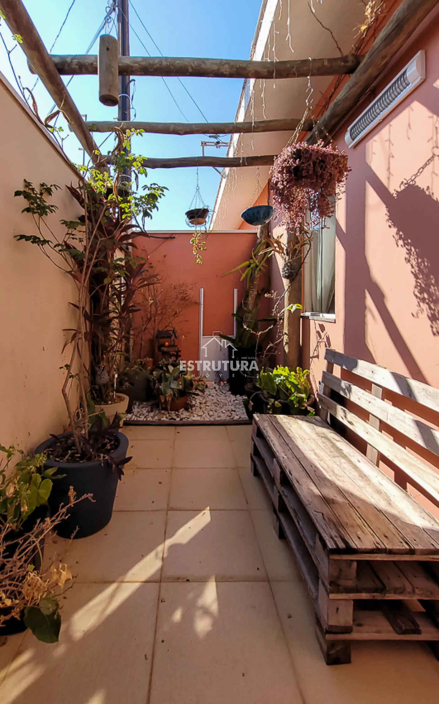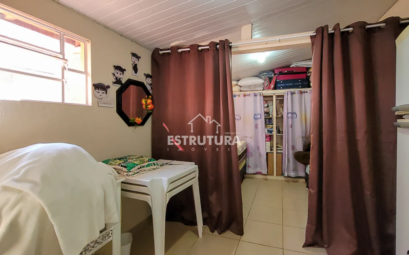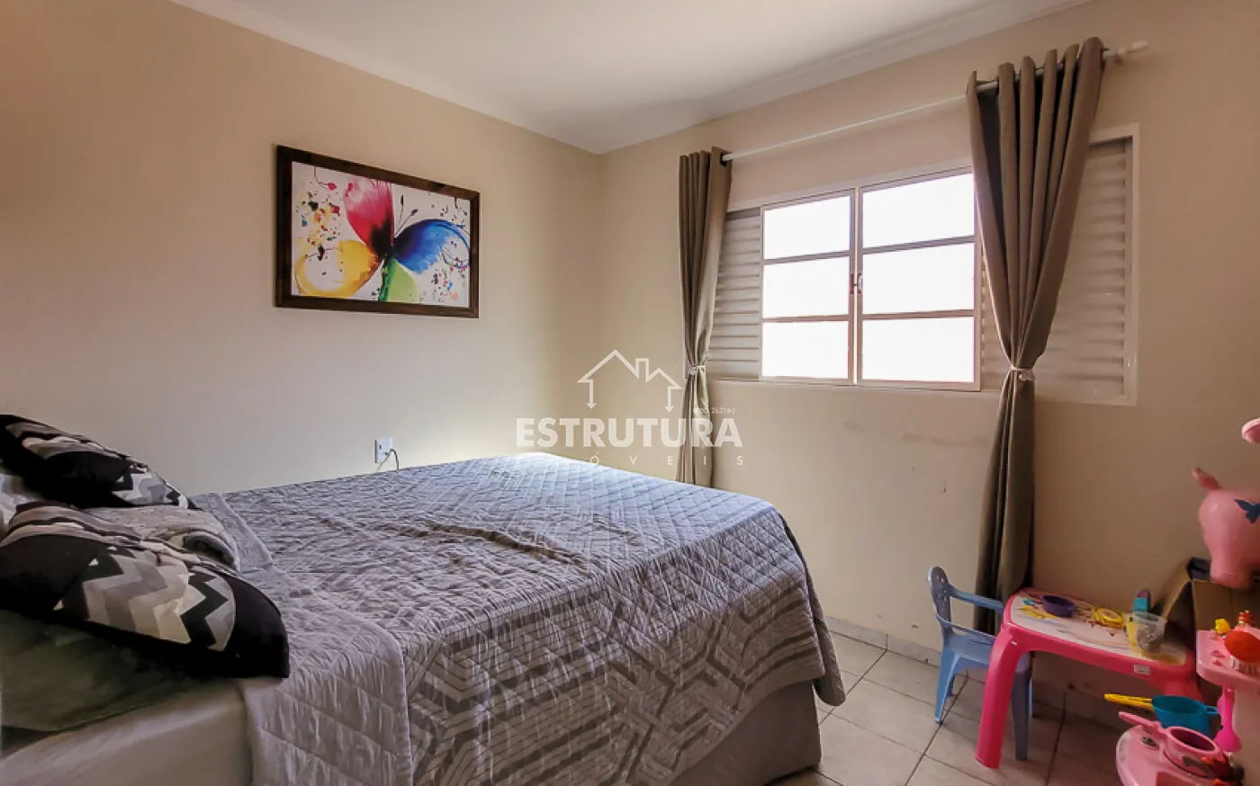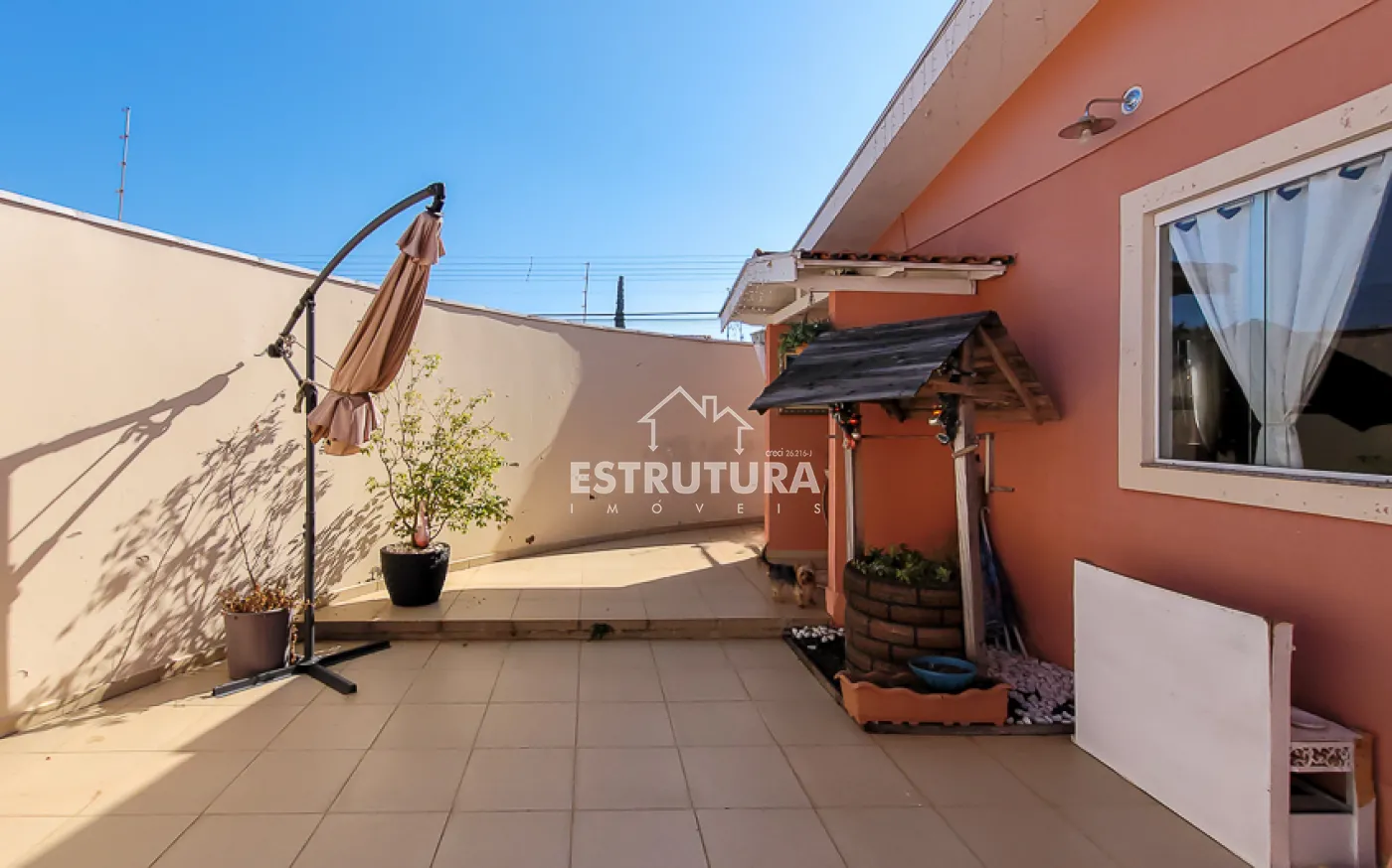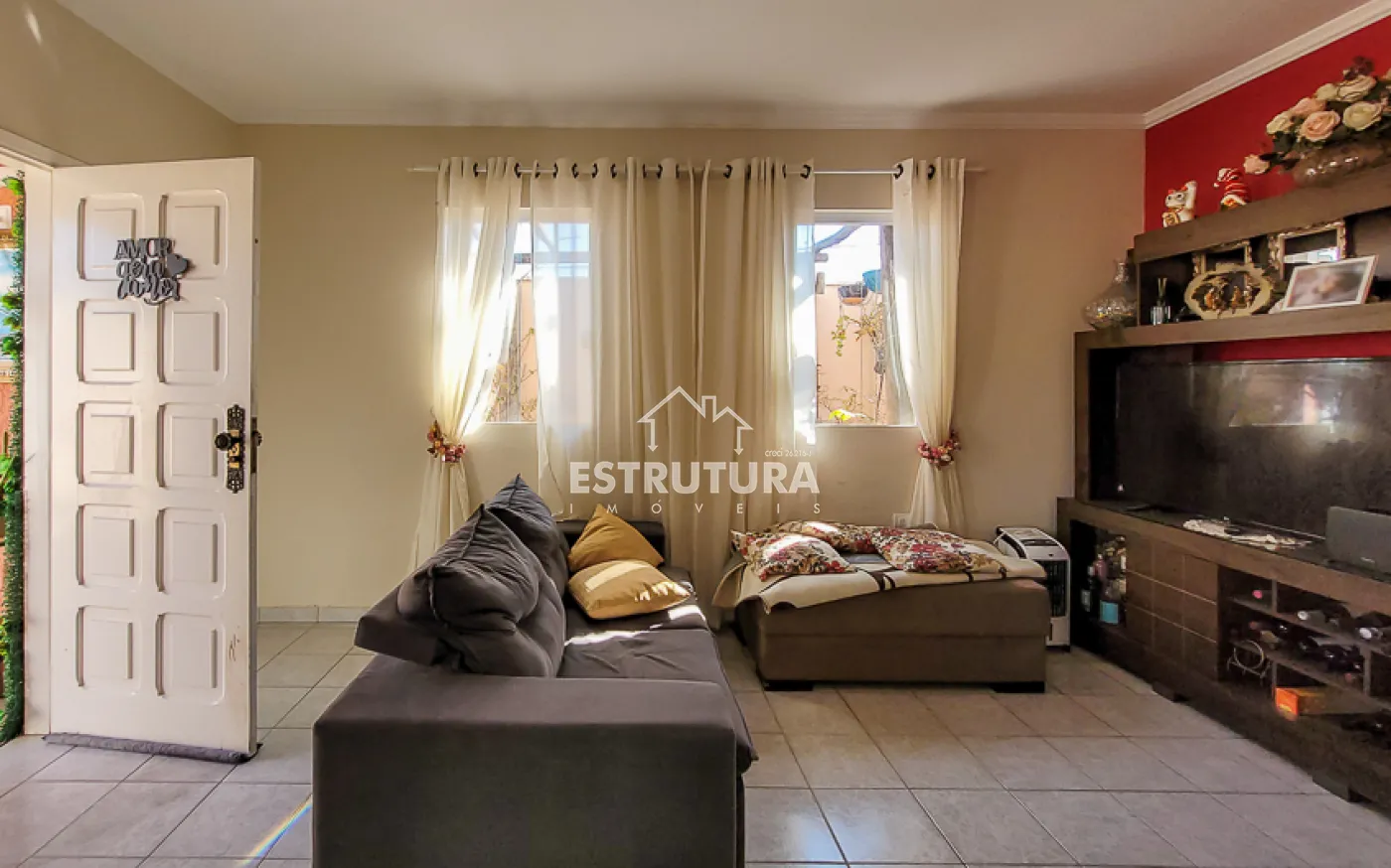 Casa com 4 vagas de garagem, 3 dormitórios, sendo 1 suíte, banheiro, sala e sala de jantar integradas, cozinha, área de serviço com banheiro, corredor, canil e quintal.
