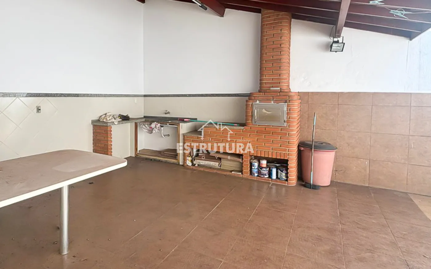 Nos fundos, amplo quintal com rancho e espaço para área gourmet com fogão a lenha e churrasqueira.