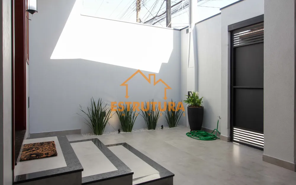 A casa principal possui uma garagem espaçosa, com capacidade para dois carros. A casa, conta com três dormitórios, sendo um deles uma suíte, perfeito para a privacidade e conforto dos moradores. A sala de estar e jantar é espaçosa e bem iluminada, proporcionando um ambiente aconchegante e agradável. A cozinha é ampla e funcional, permitindo o preparo de refeições com facilidade. Além disso, há um banheiro social para maior comodidade dos moradores.