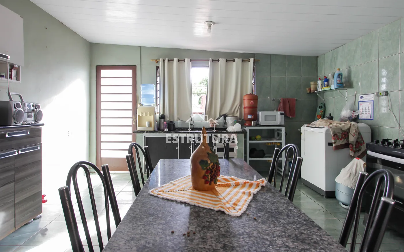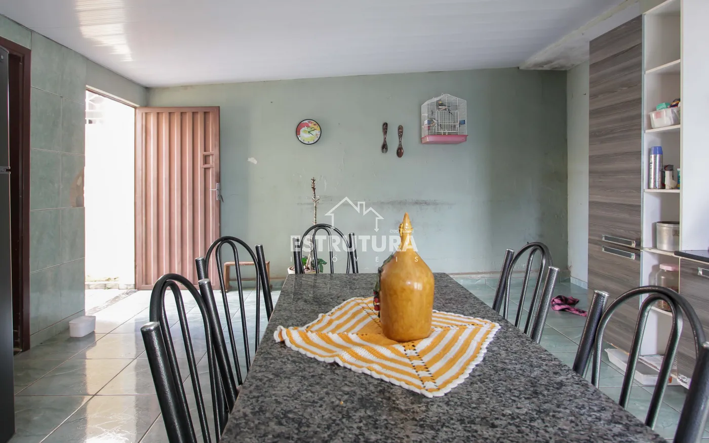 Casa com 4 quartos, banheiro social próximo aos quartos, cozinha e banheiro.