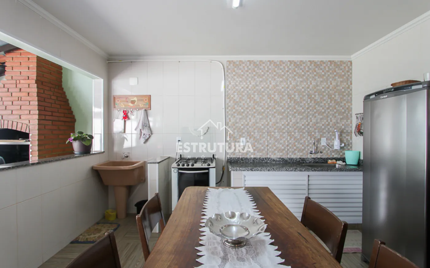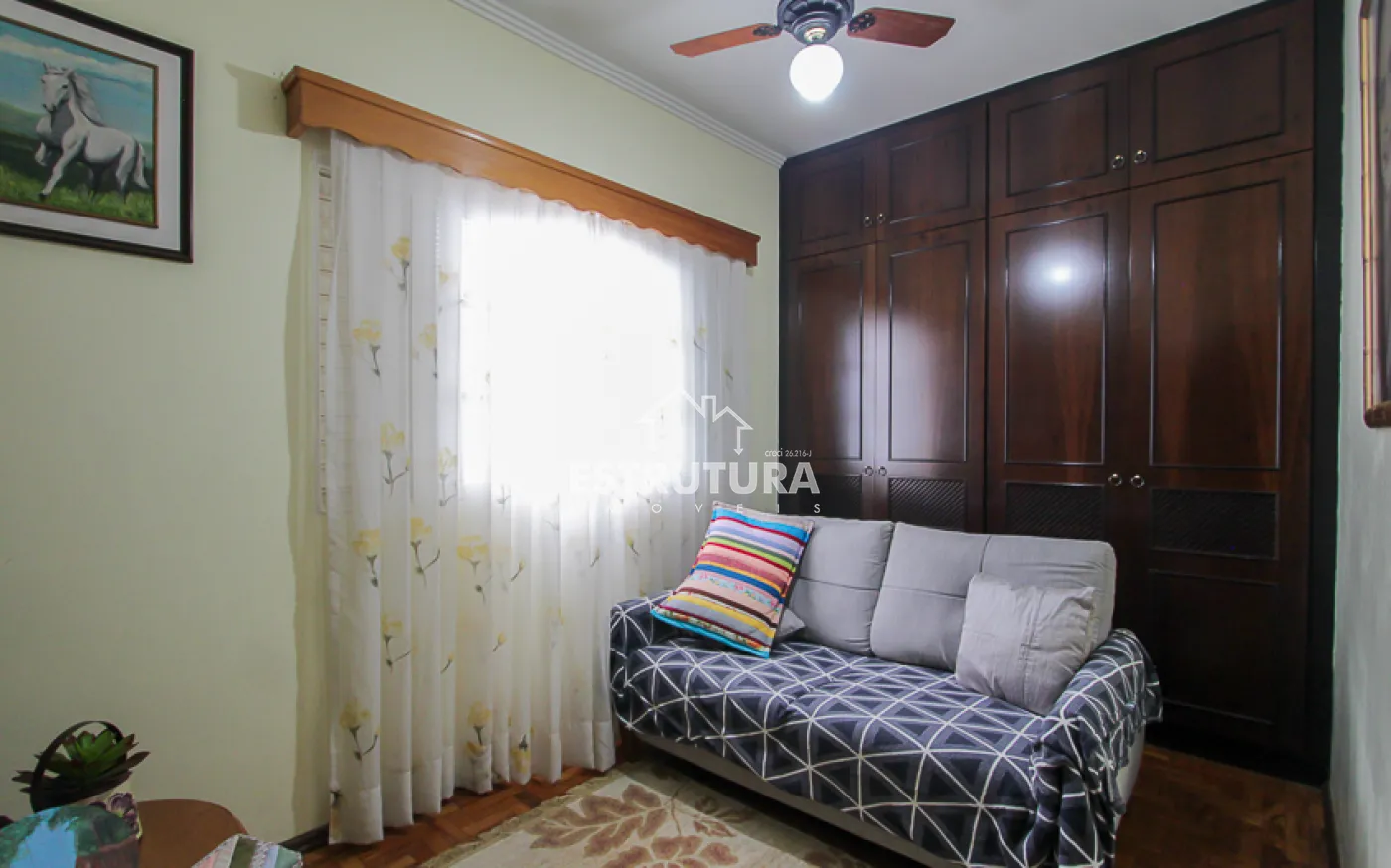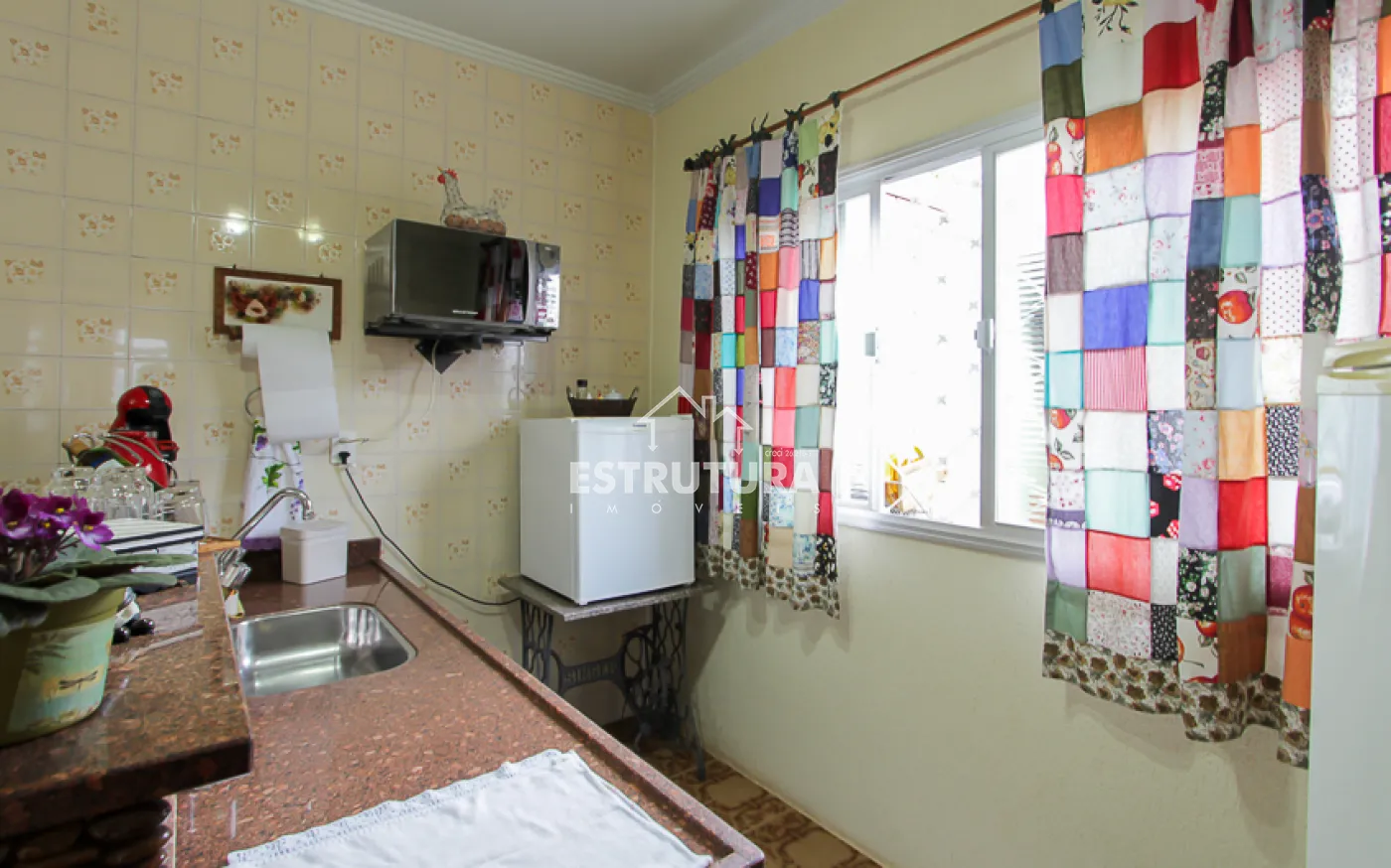 Sala de estar, 03 dormitórios com armários embutidos, banheiro social, área de luz, copa e cozinha, espaço gourmet com banheiro externo e quarto de despejo . Edícula com 01 dormitório, sala e cozinha e lavandeira.