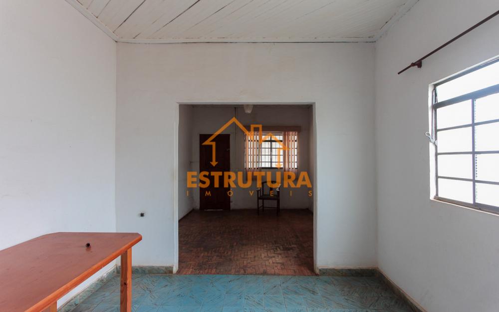 Garagem descoberta para vários carros, 2 dormitórios, sala, copa, cozinha, amplo quarto de despejo com banheiro que pode ser dormitório, rancho com fogão a lenha e quintal.