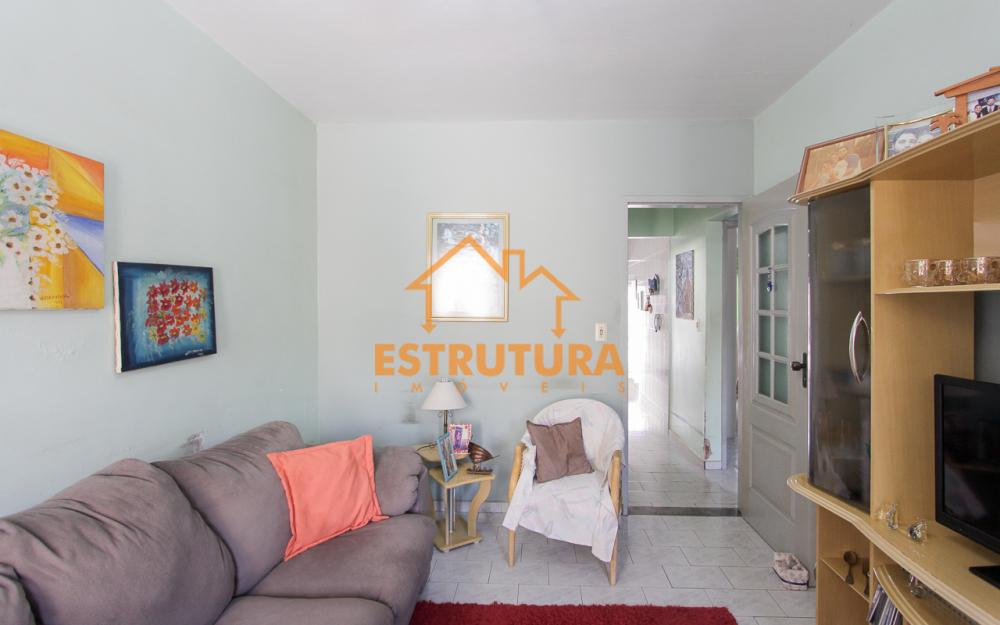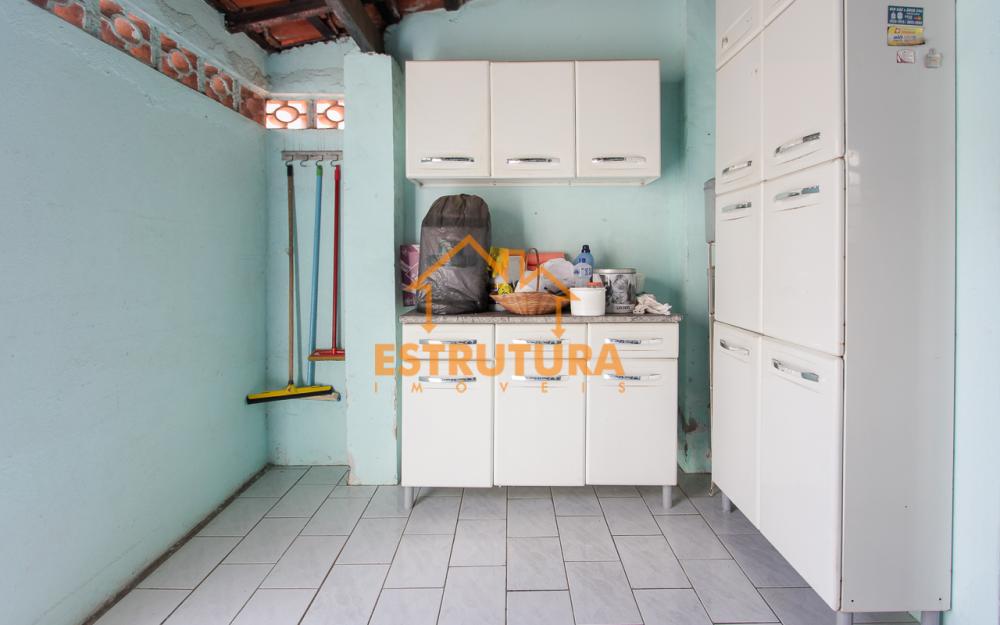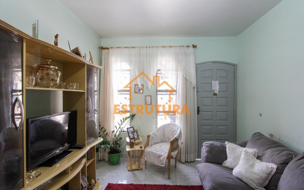 Casa residencial contendo garagem para 8 veículos, sendo 1 vaga coberta, 1 sala, 2 dormitórios, copa/cozinha, lavanderia e banheiro social.