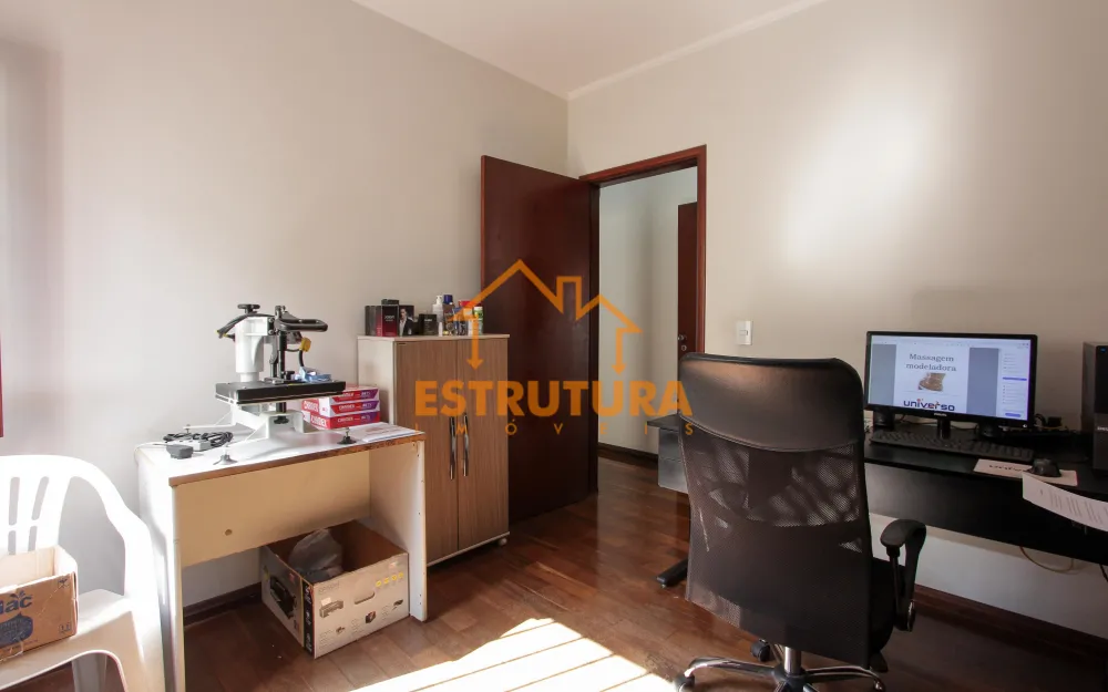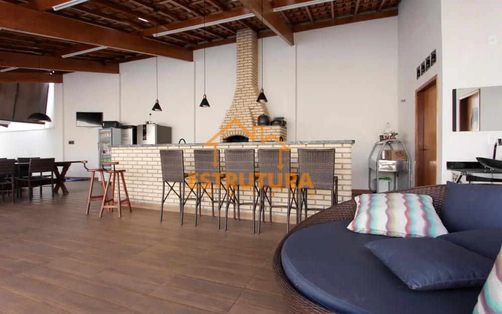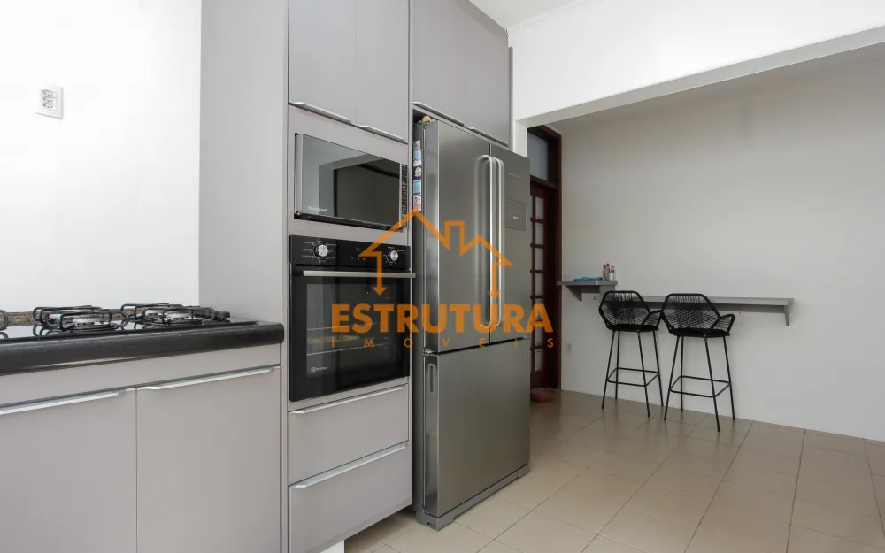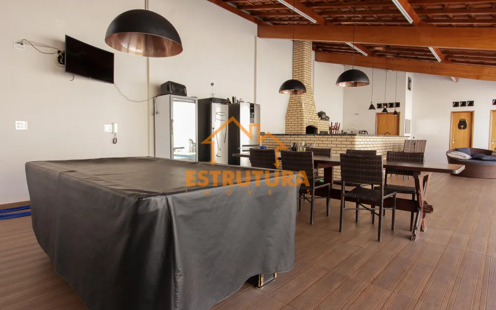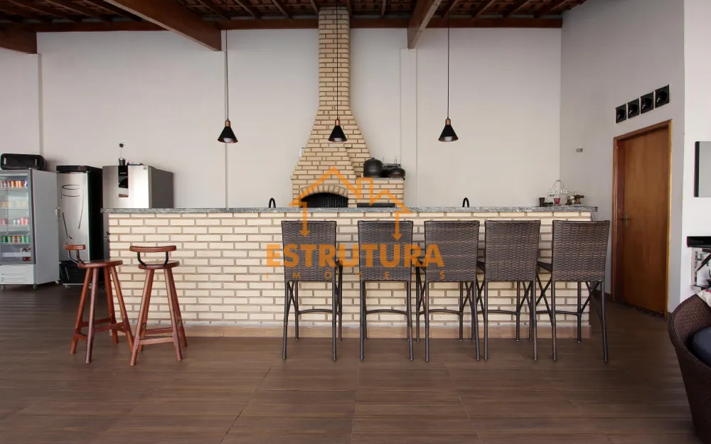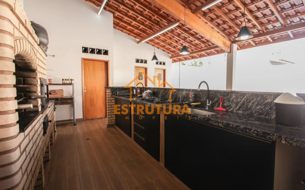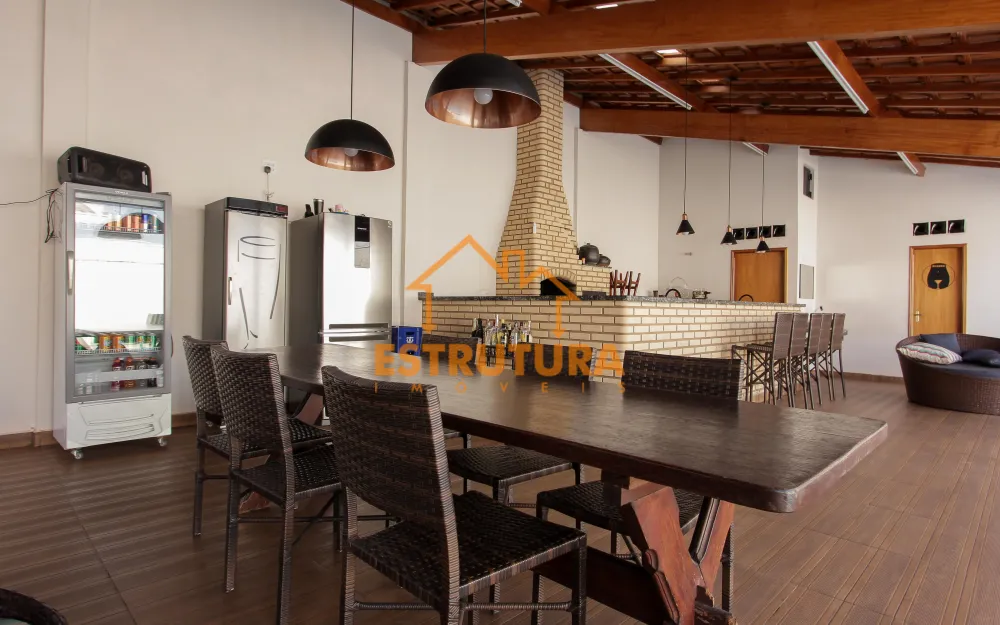 A área gourmet é completa, com piscina, churrasqueira, fogão a lenha, forno, cooktop e móveis planejados. Há ainda 2 banheiros adicionais e um quarto de despensa.