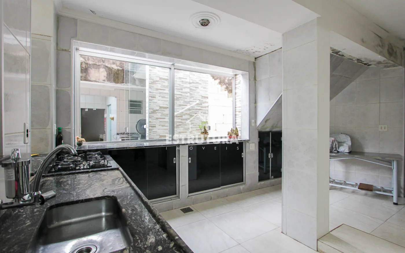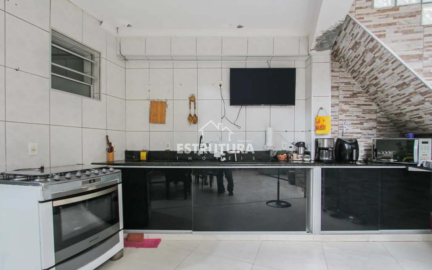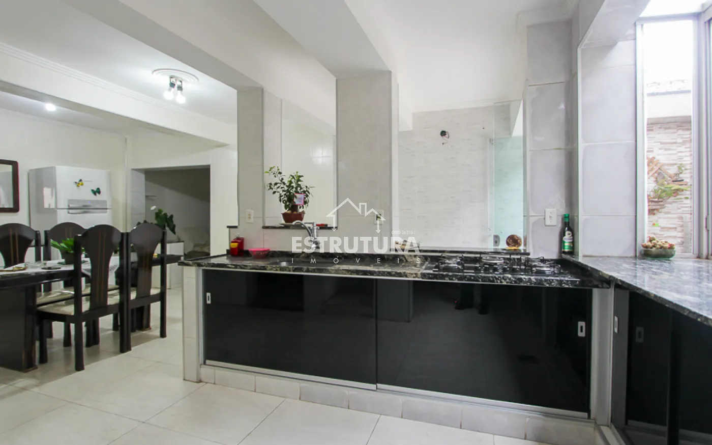 O salão comercial anexo dispõe de uma cozinha, banheiro e um espaço amplo de 33 m², ideal para diferentes tipos de negócios.