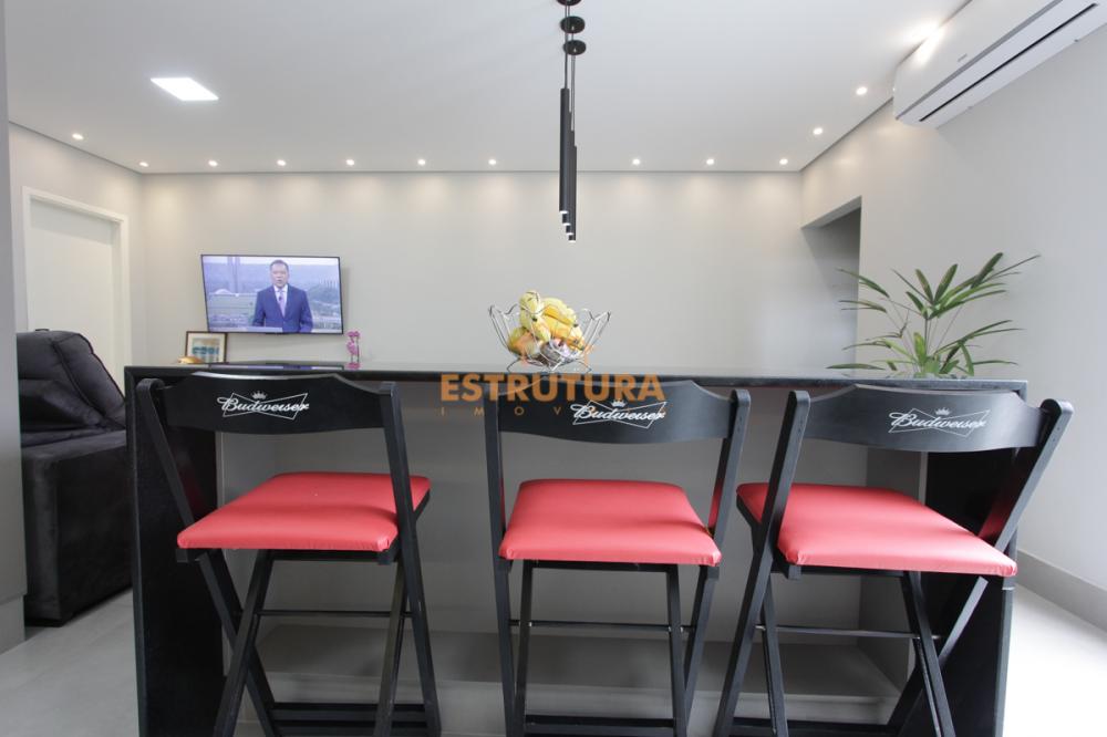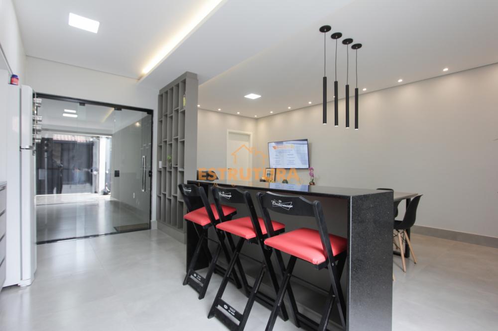 Este imóvel conta com 2 dormitórios, incluindo 1 suíte, uma garagem coberta para 2 carros com portão eletrônico, lavabo, banheiro social, sala, cozinha estilo americano e um espaço gourmet. Possui ar condicionado nos dormitórios, sala e cozinha. Destaca-se pelo acabamento diferenciado, incluindo móveis planejados e revestimento em porcelanato.