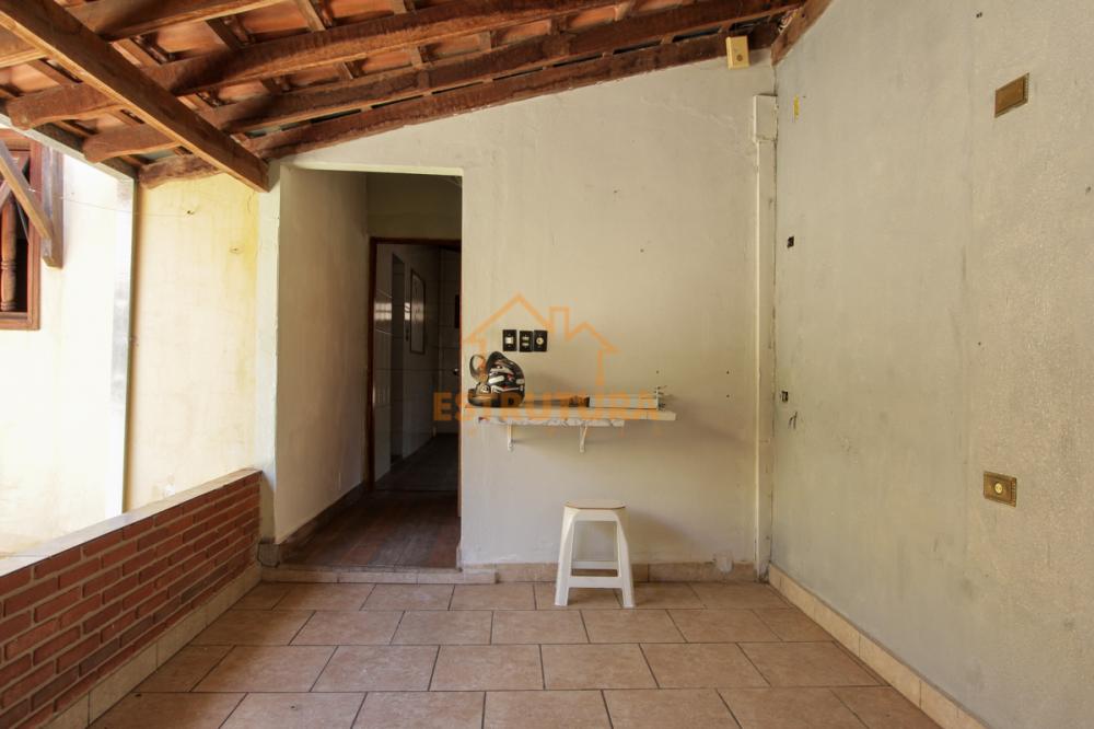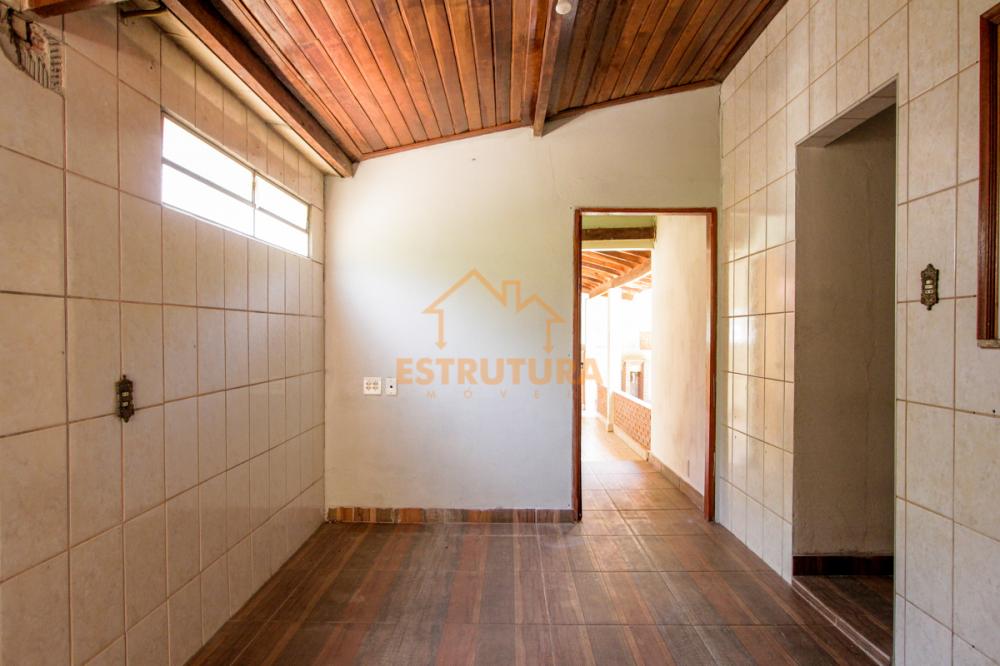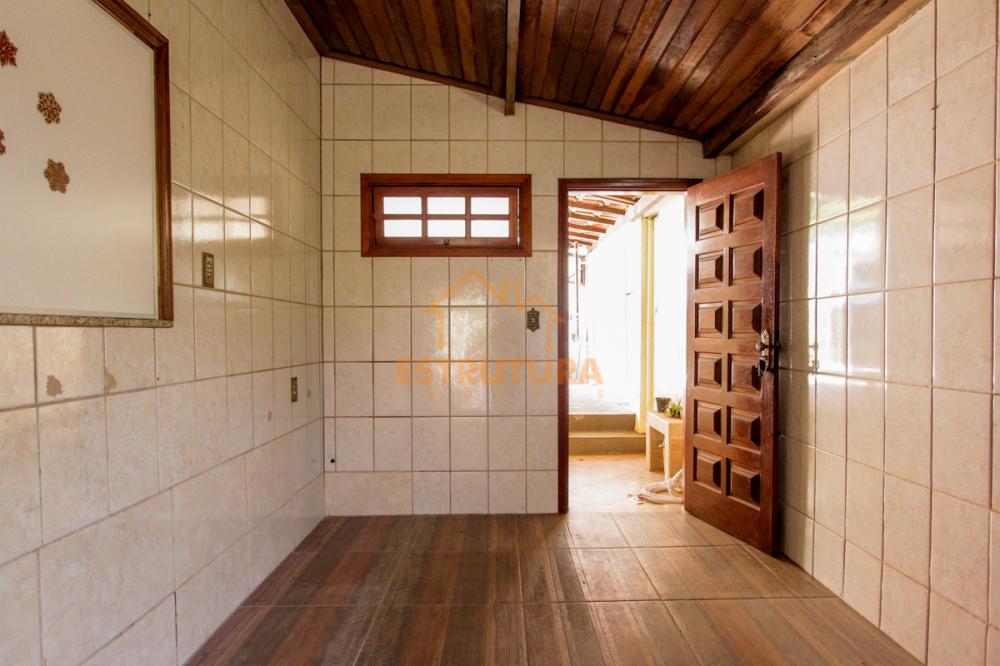 Casa contendo 3 dormitórios, 2 W.C., sala de tv, cozinha com churrasqueira e fogão a lenha, quintal com área coberta com quarto de despejo nos fundos