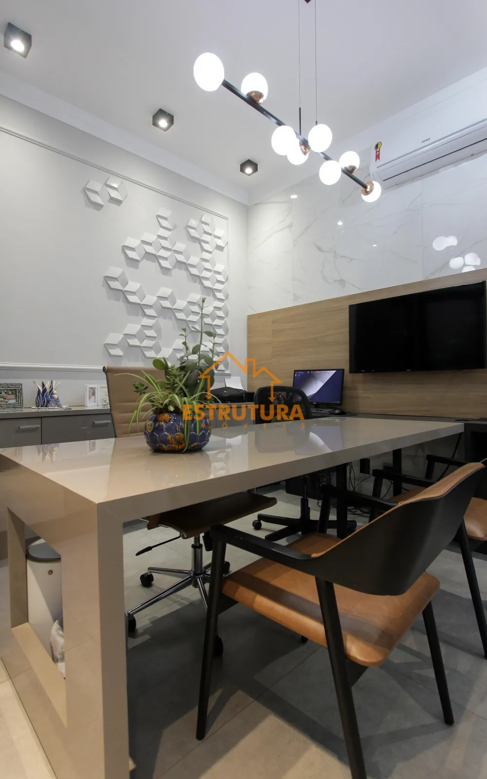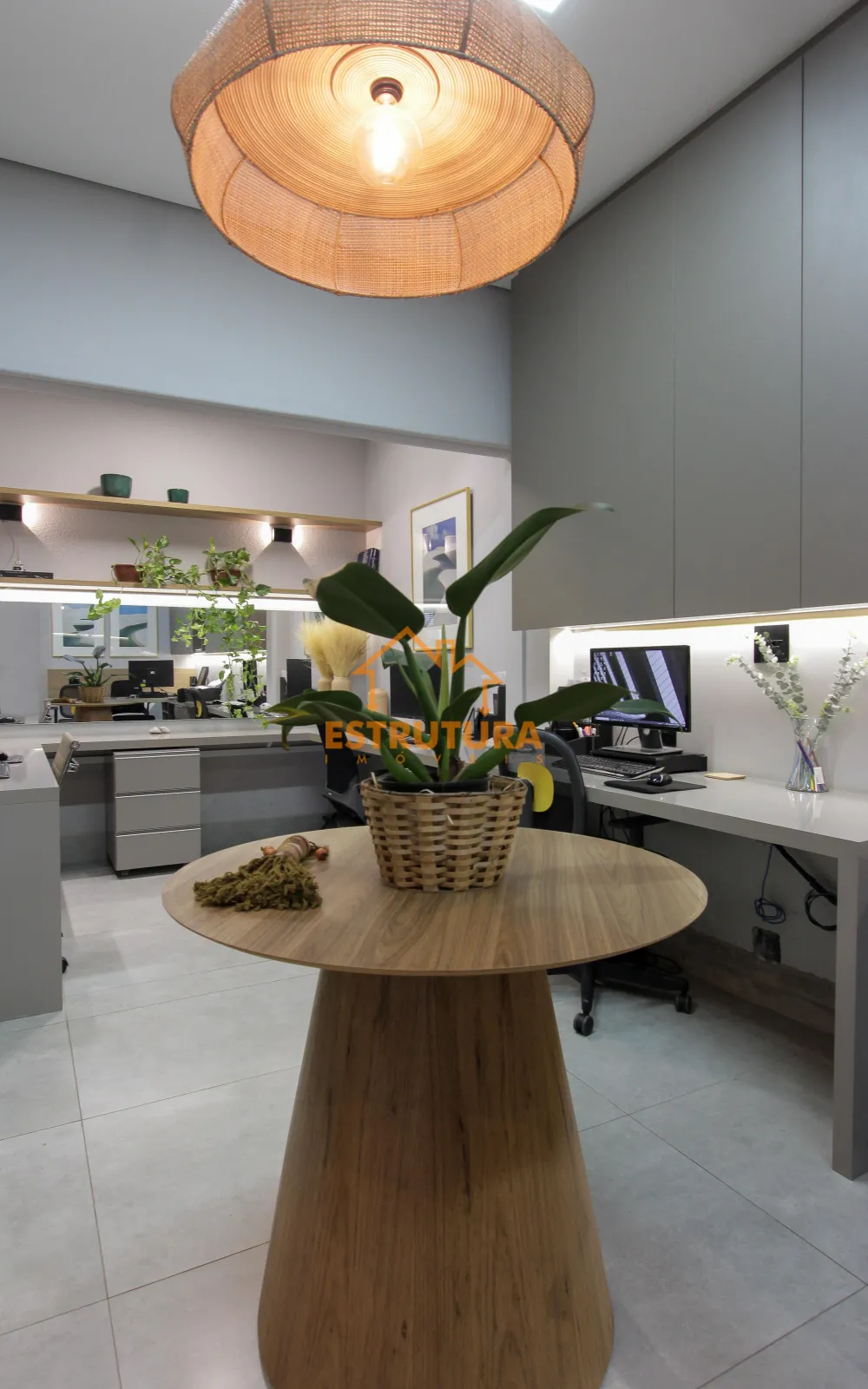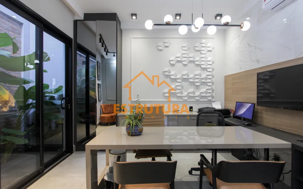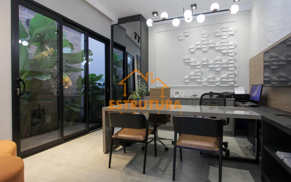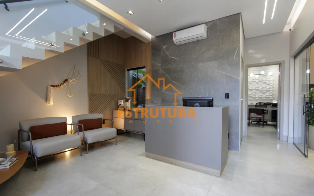 O espaço comercial, por sua vez, conta com uma recepção acolhedora, sala de espera, lavabo e 2 salas com armários planejados e um agradável jardim de inverno, tudo localizado no piso inferior. No piso superior, há um amplo hall, um lavabo, uma cozinha e uma sala ampla.