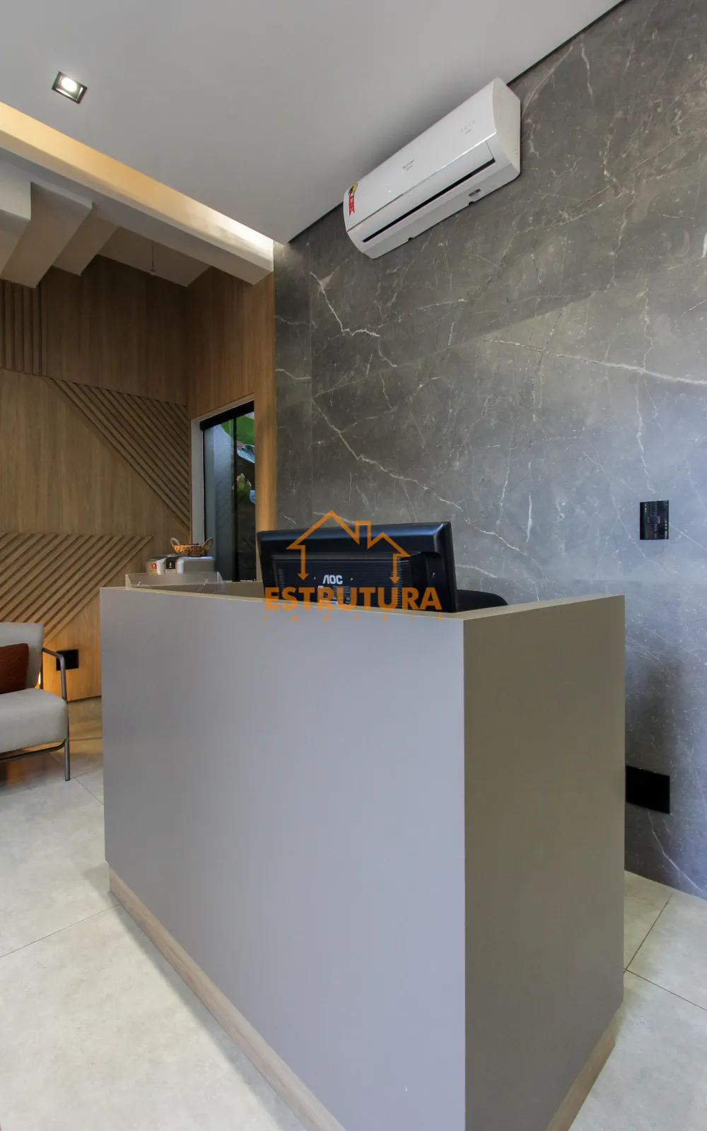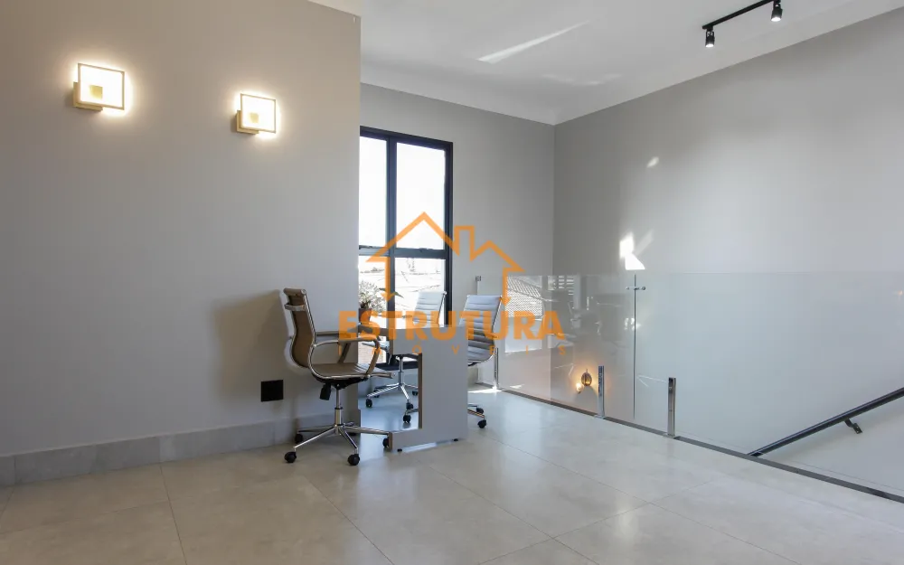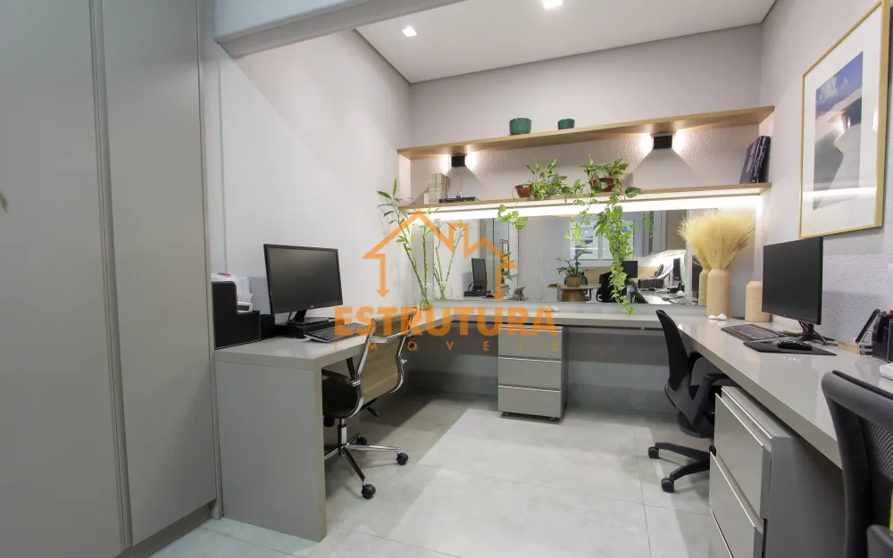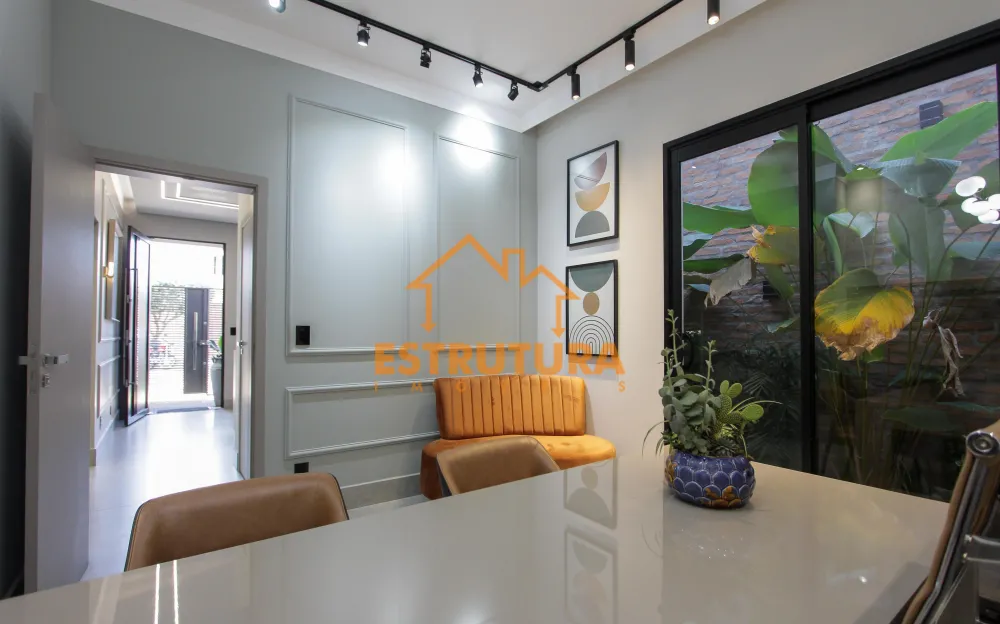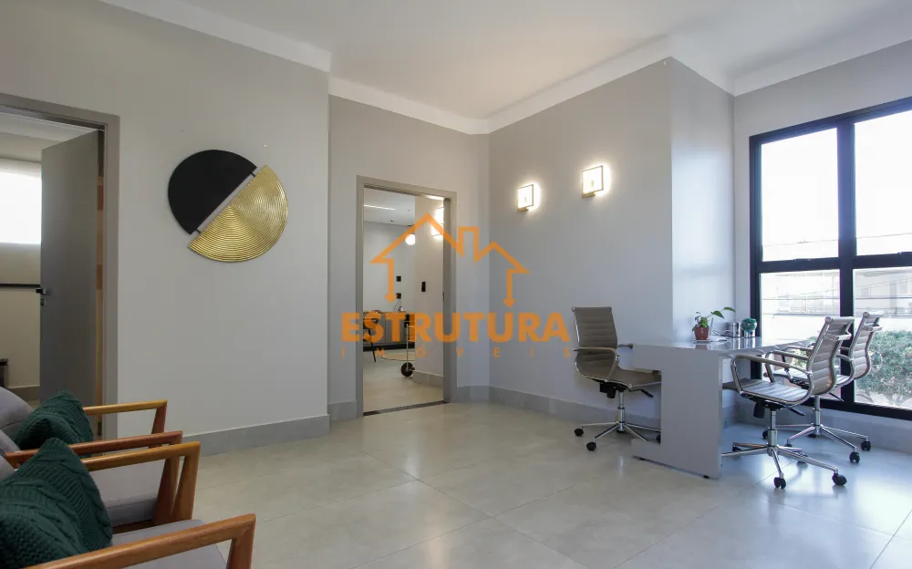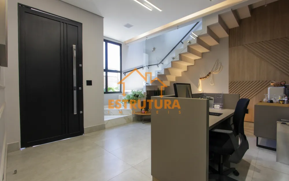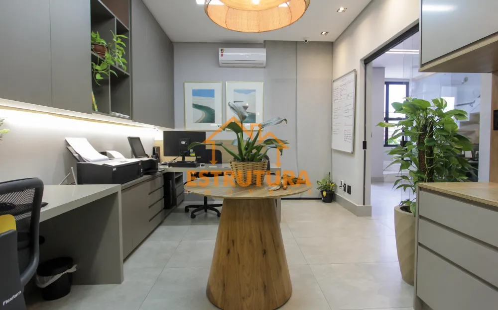 O espaço comercial, por sua vez, conta com uma recepção acolhedora, sala de espera, lavabo e 2 salas com armários planejados e um agradável jardim de inverno, tudo localizado no piso inferior. No piso superior, há um amplo hall, um lavabo, uma cozinha e uma sala ampla.