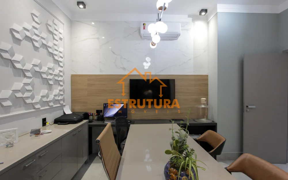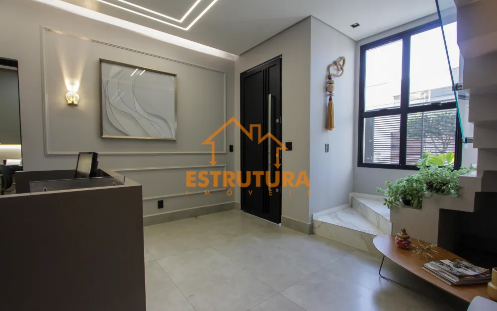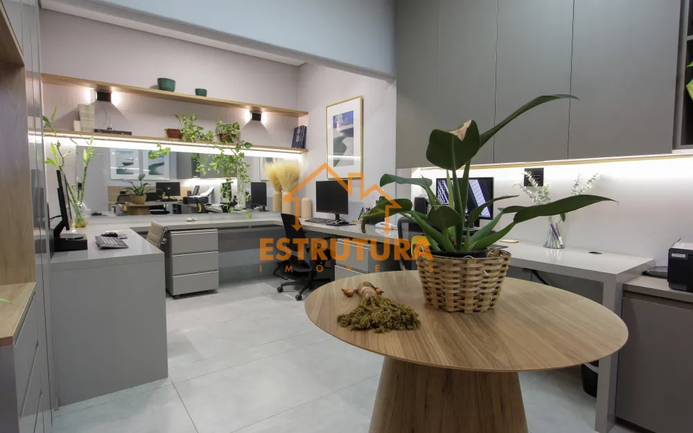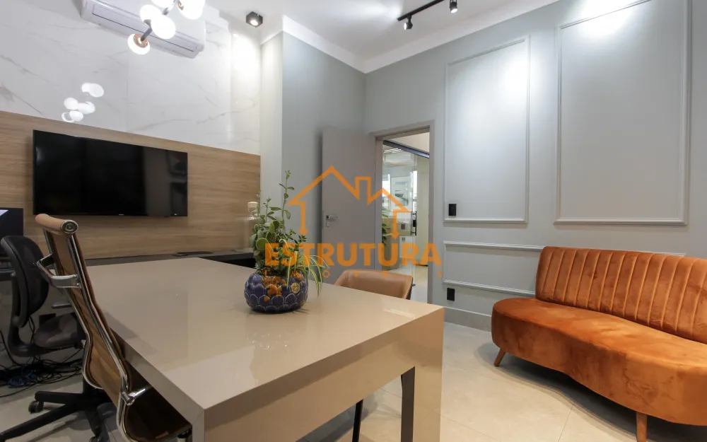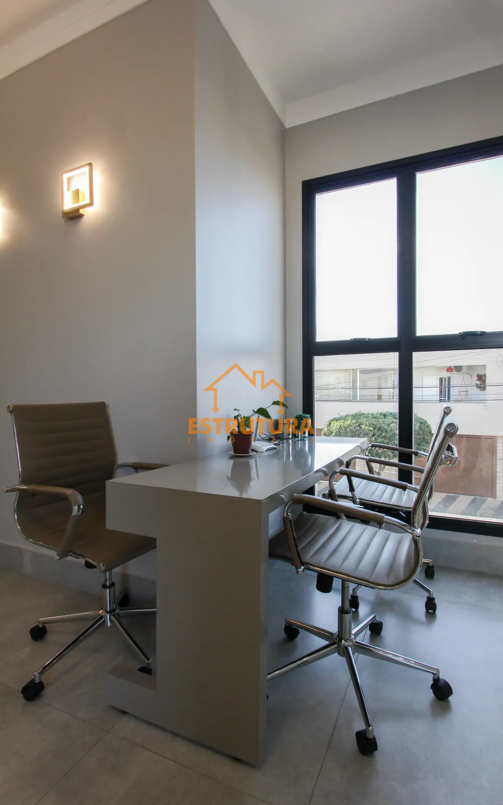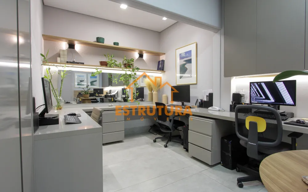 O espaço comercial, por sua vez, conta com uma recepção acolhedora, sala de espera, lavabo e 2 salas com armários planejados e um agradável jardim de inverno, tudo localizado no piso inferior. No piso superior, há um amplo hall, um lavabo, uma cozinha e uma sala ampla.