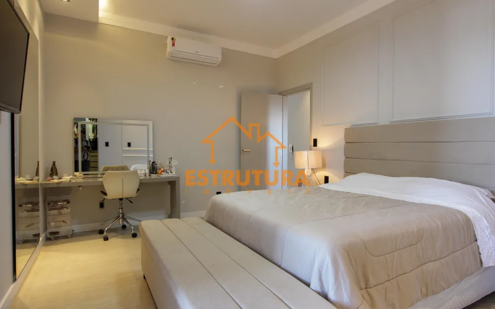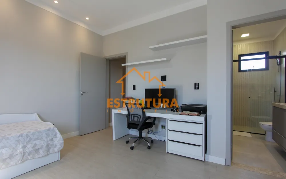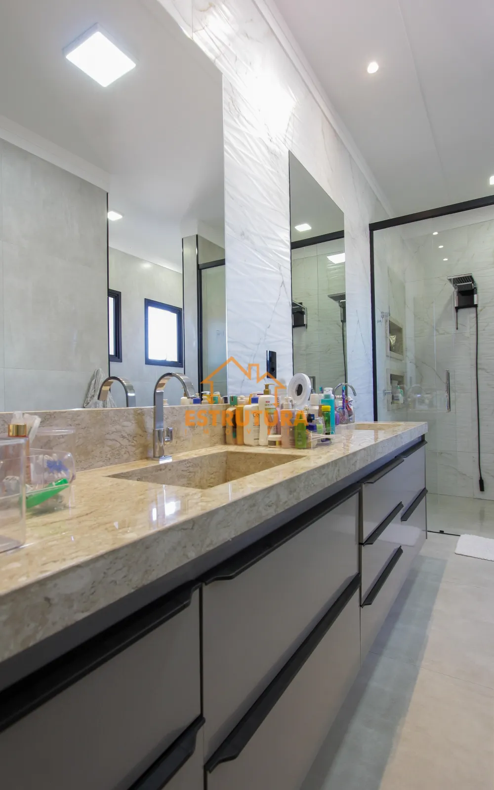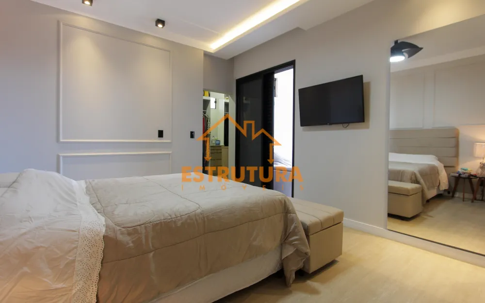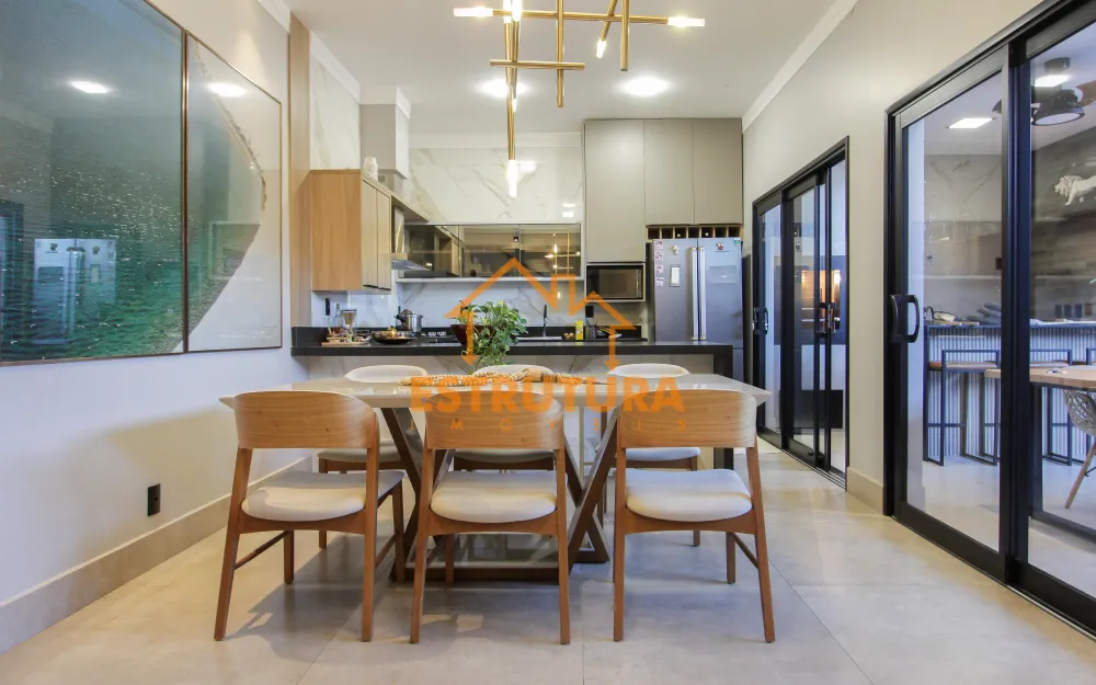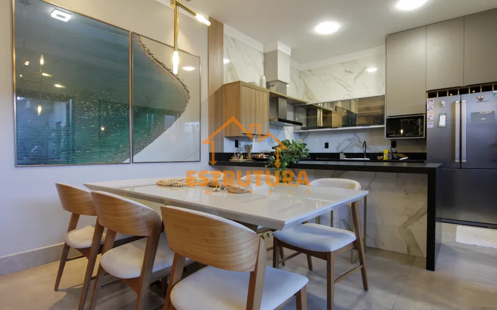 A casa residencial oferece uma série de comodidades, incluindo uma sala de estar espaçosa e aconchegante, lavabo, cozinha planejada, área de serviço, um espaço gourmet perfeito para momentos de convívio, além de uma piscina para desfrutar de momentos relaxantes. No andar de cima, há 3 amplos dormitórios, todos equipados com suítes e armários planejados. A suíte principal conta com um generoso closet e uma varanda espaçosa. O imóvel ainda dispõe de 2 vagas de garagem cobertas e fechadas. A casa é segura, com um fechamento sólido, e possui acabamentos de alta qualidade.