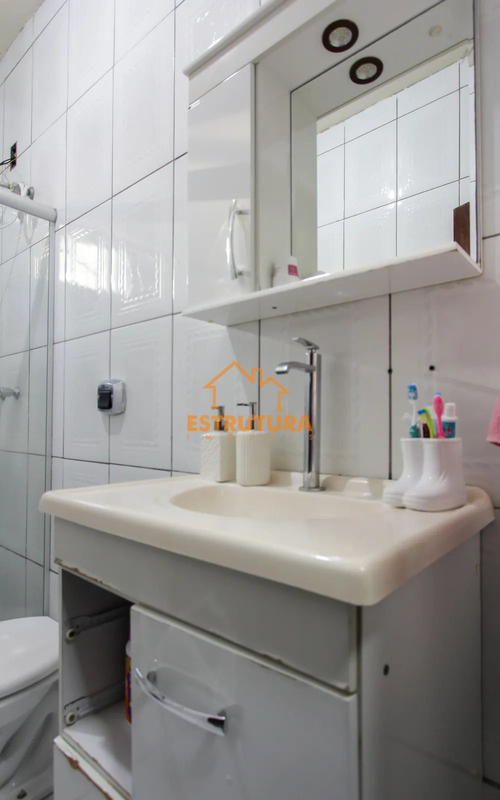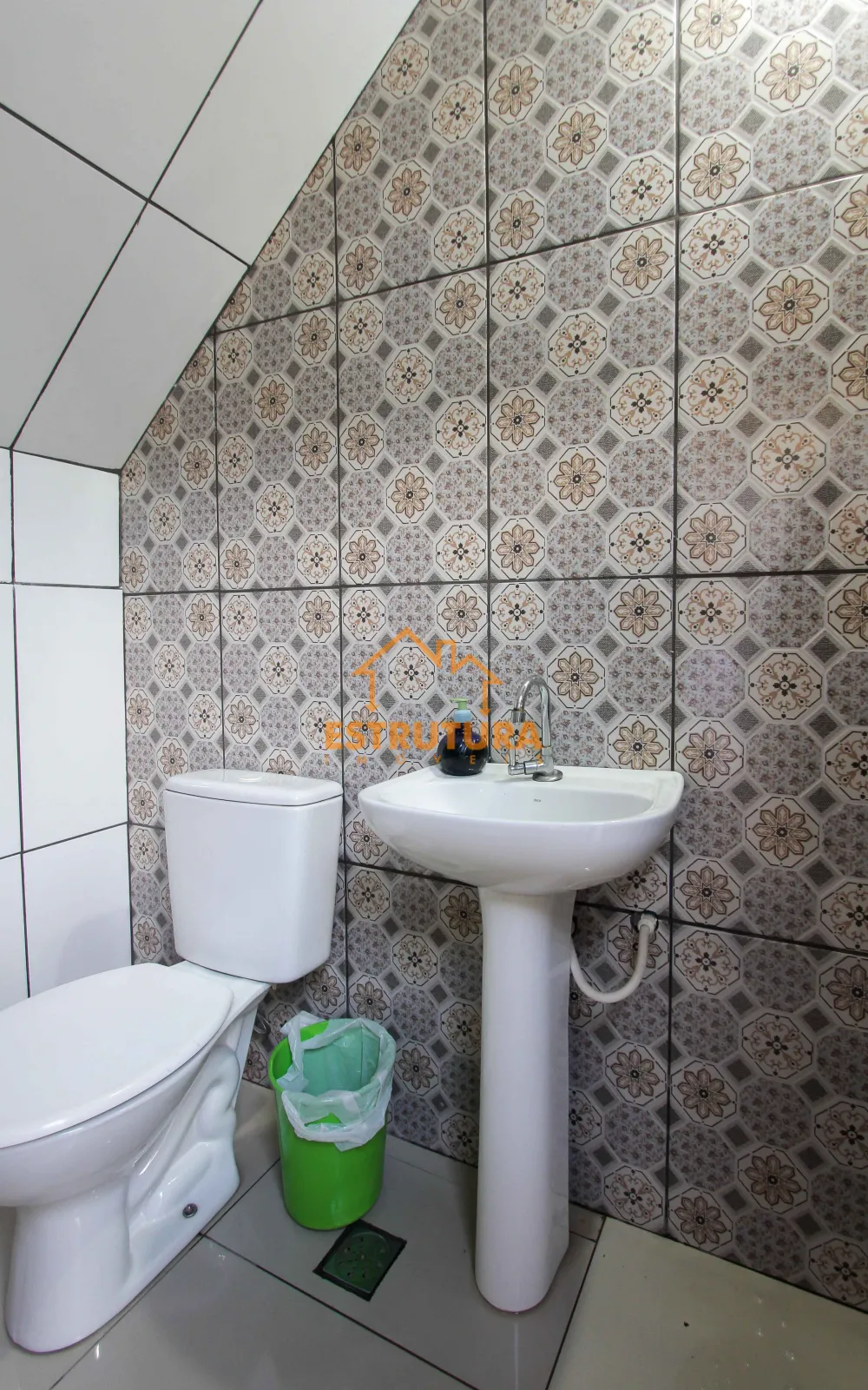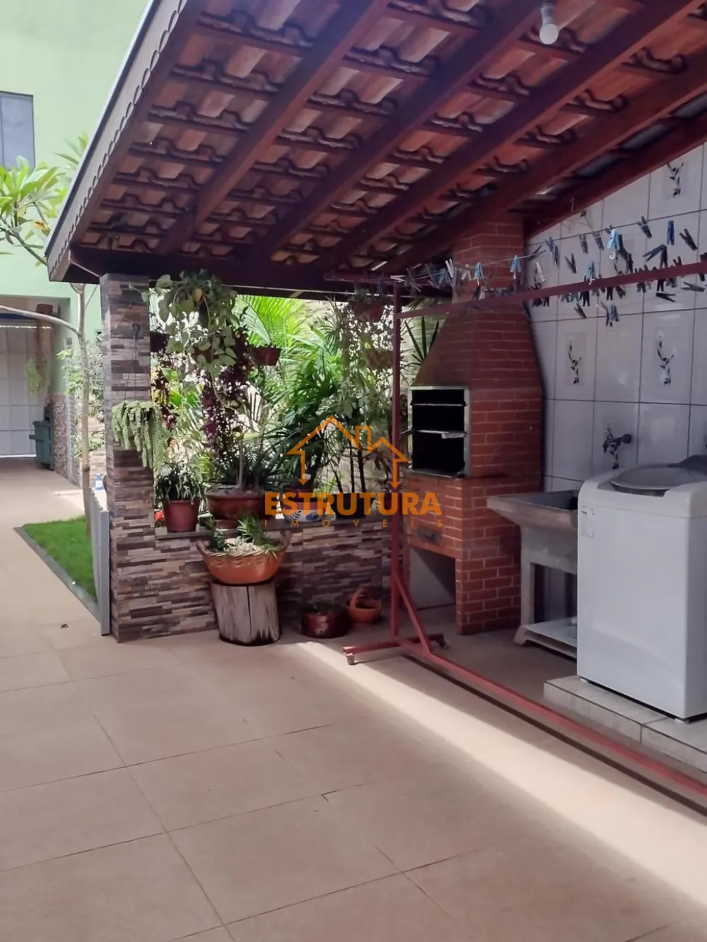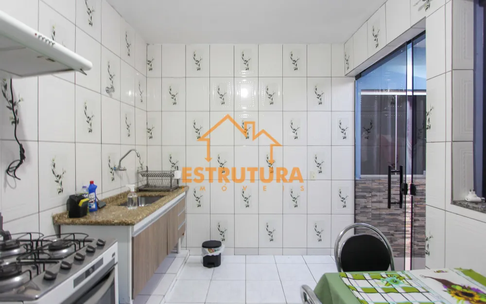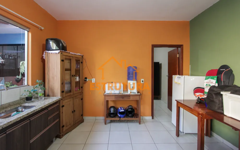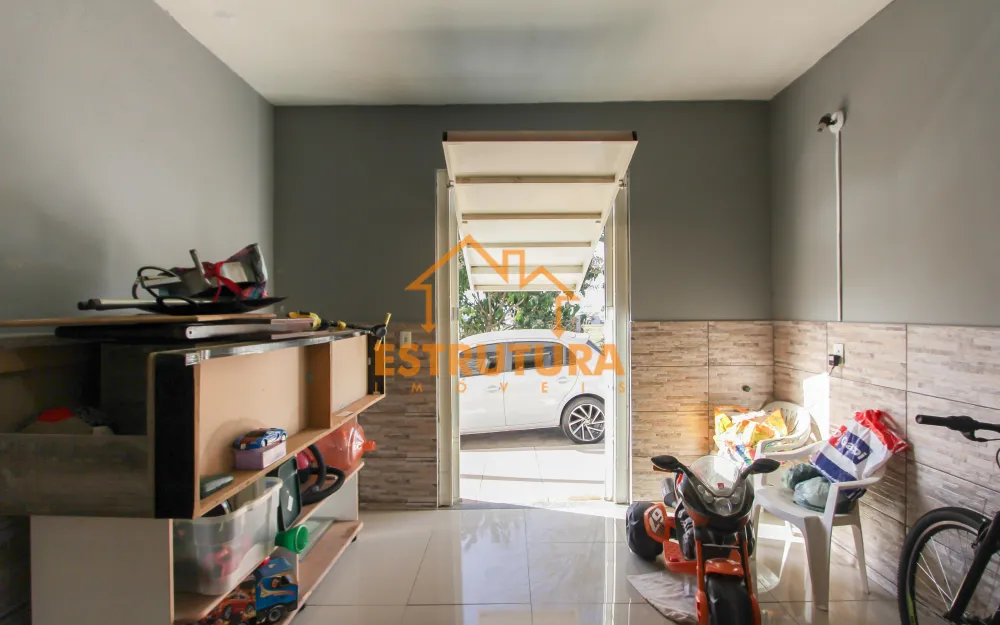 Na parte térrea tem um salão na frente, com garagem para 2 carros, lavanderia coberta, área gourmet com churrasqueira, 2 quartos, banheiro social, cozinha e sala.
