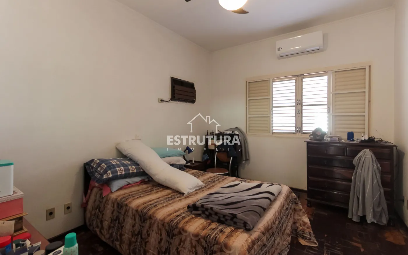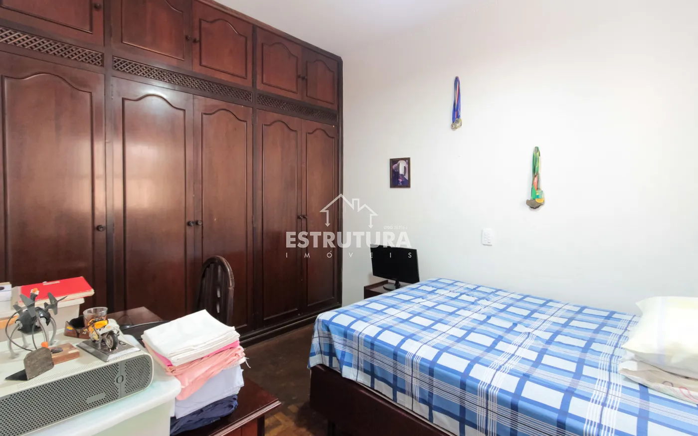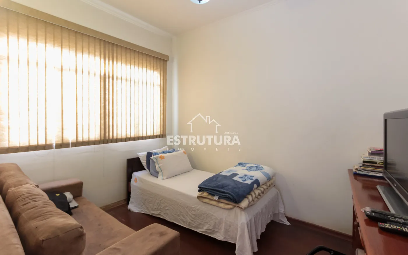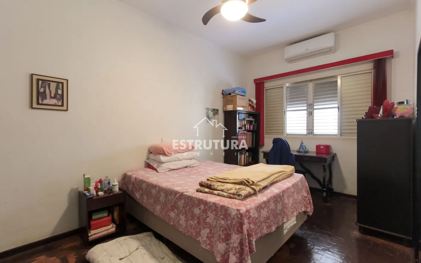 Nos fundos, há um quintal espaçoso com área de serviço e uma edícula com dormitório e banheiro.