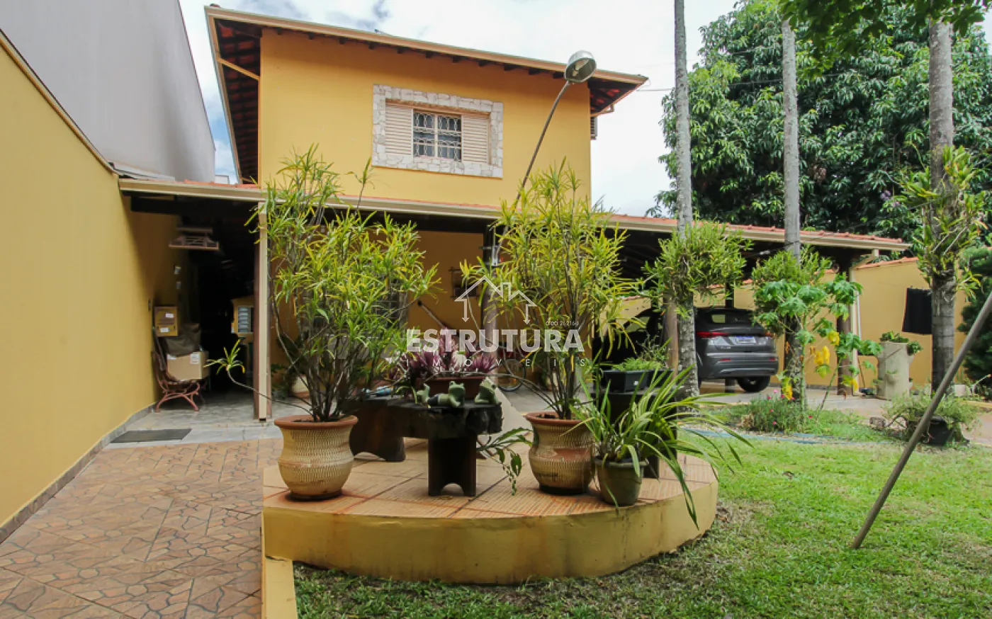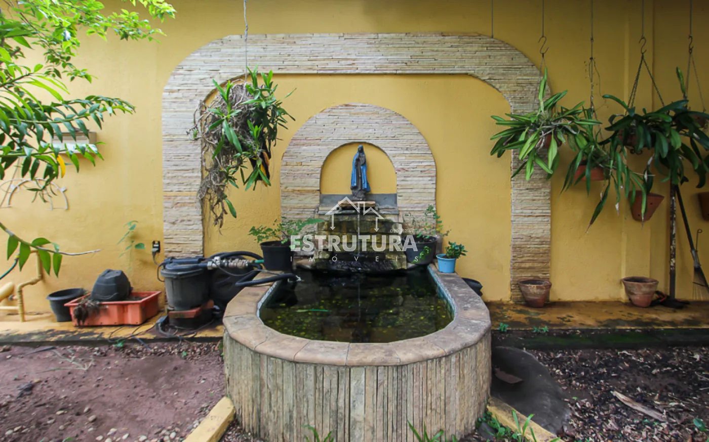 A propriedade conta com um jardim bem cuidado, repleto de árvores frutíferas e uma charmosa fonte, oferecendo um ambiente tranquilo e acolhedor. A garagem possui espaço para até 4 carros.