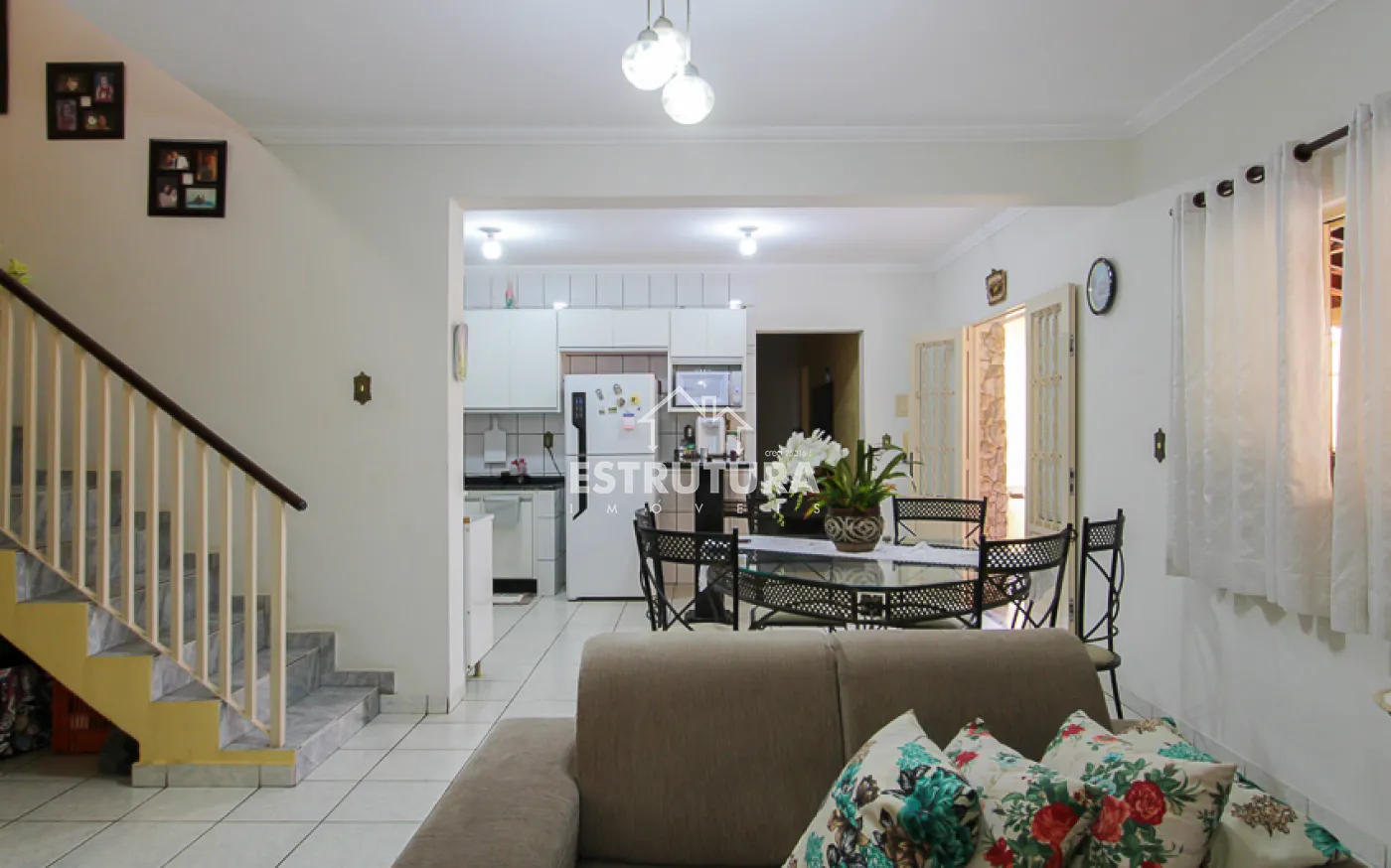 Imóvel encantador com ampla sala 2 ambientes com lavabo e cozinha completa de armários e mais uma sala de tv. 3 quartos, sendo 1 suíte no piso térreo e 2 dormitórios no piso superior, sendo 1 suíte.