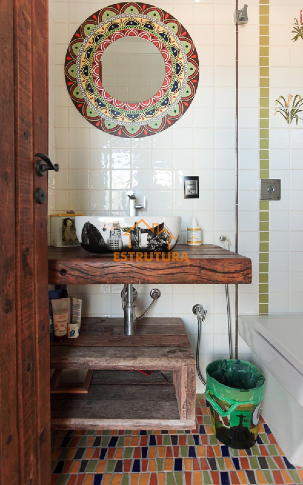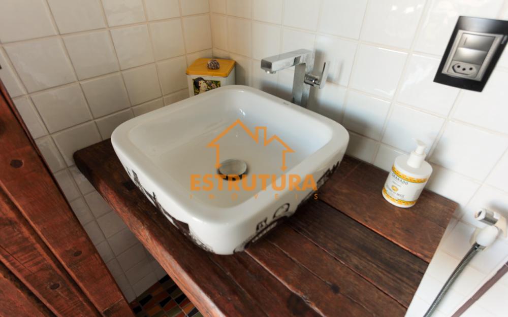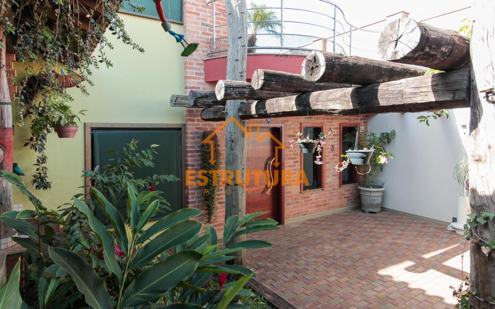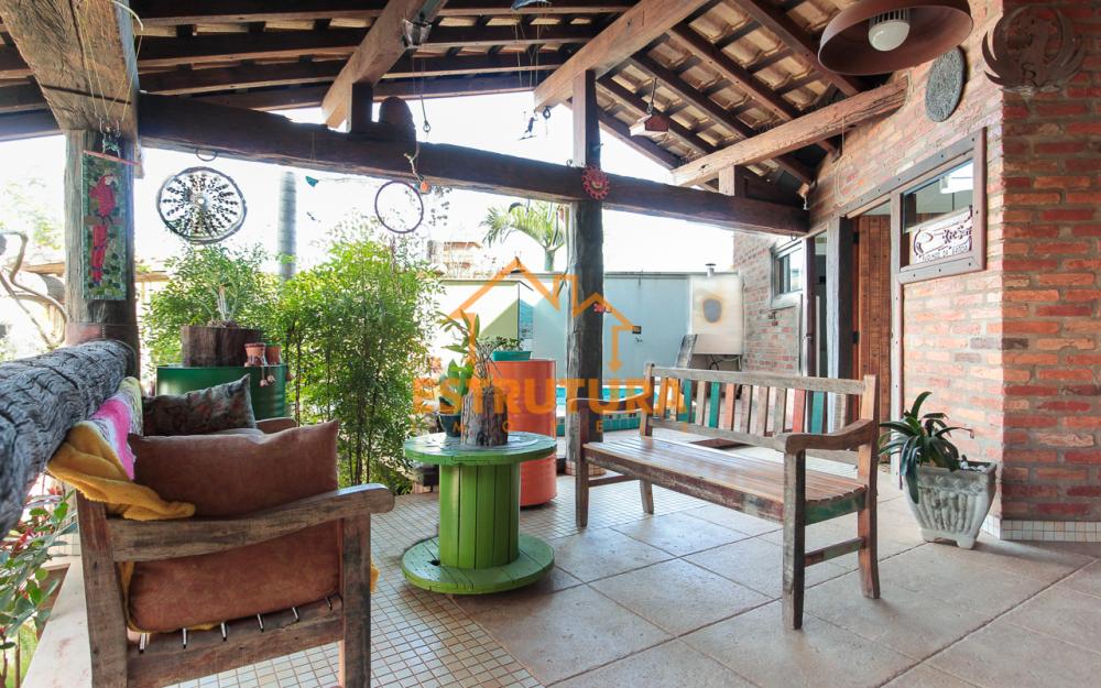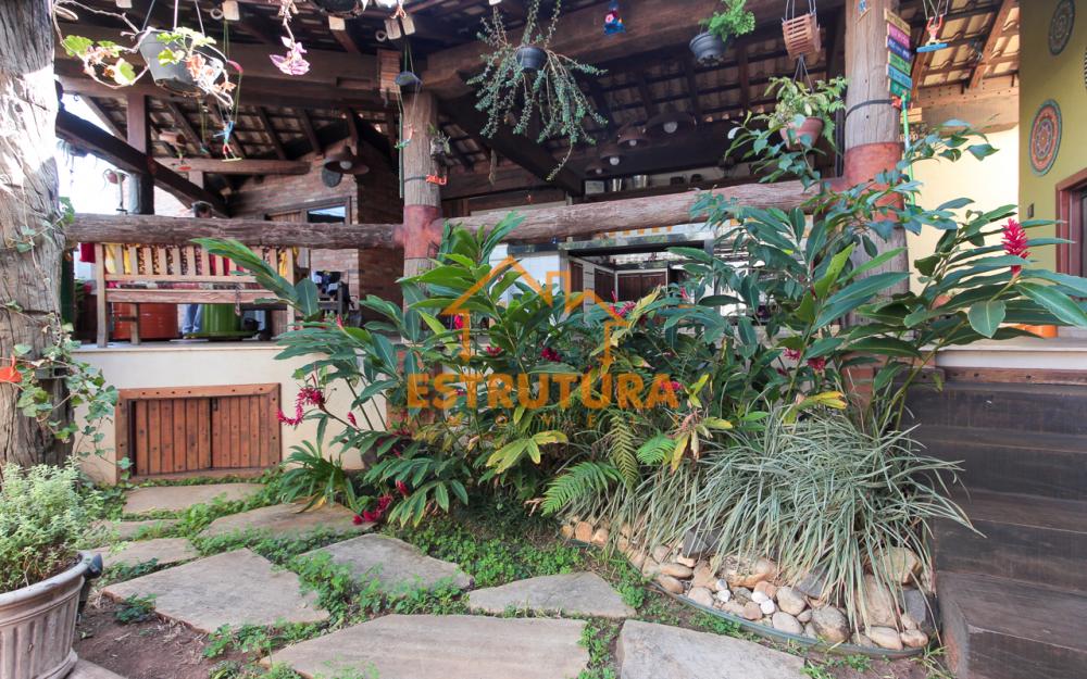O imóvel possui 3 vagas de garagem com pergolado de madeira Aroeira e trepadeira. Sua área externa foi criada para proporcionar a sensação de encantamento e acolhimento. Toda em estilo rustico, possui banheira spa com hidromassagem aquecida, lavabo, sauna, e uma grande área de lazer com lustres, bancada de serviço com móveis também em madeira Aroeira e churrasqueira profissional a gás.