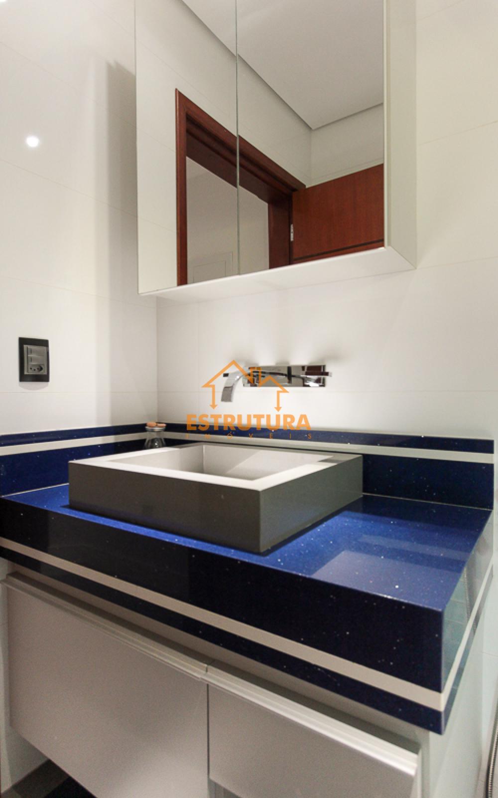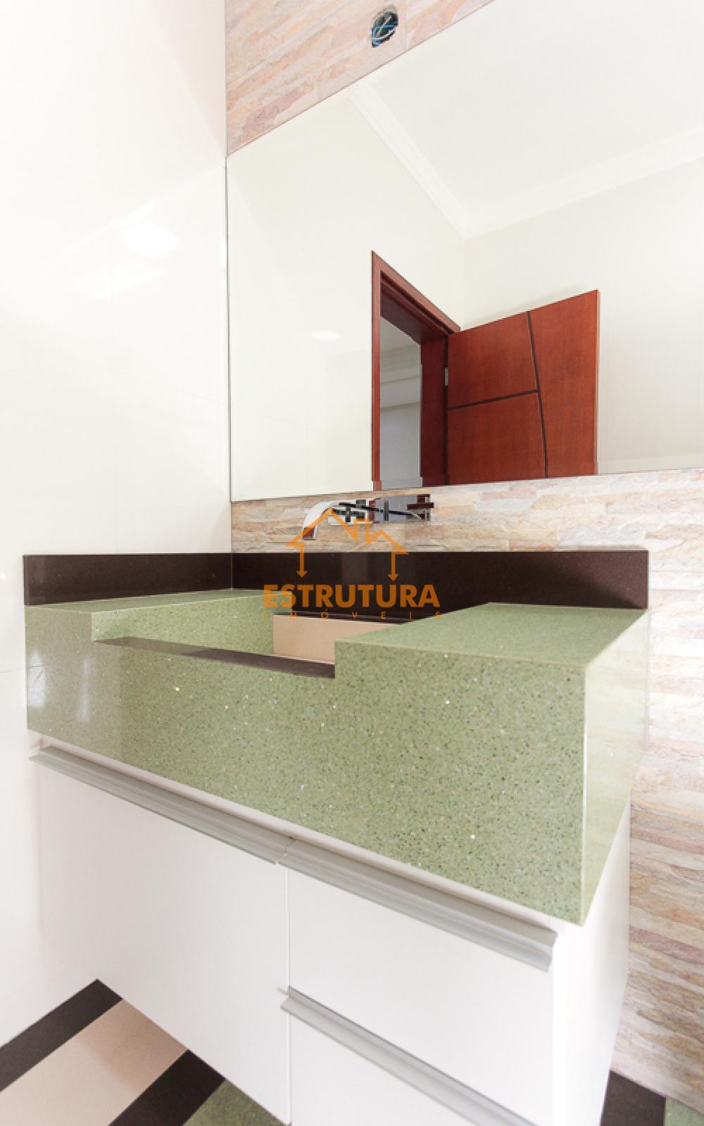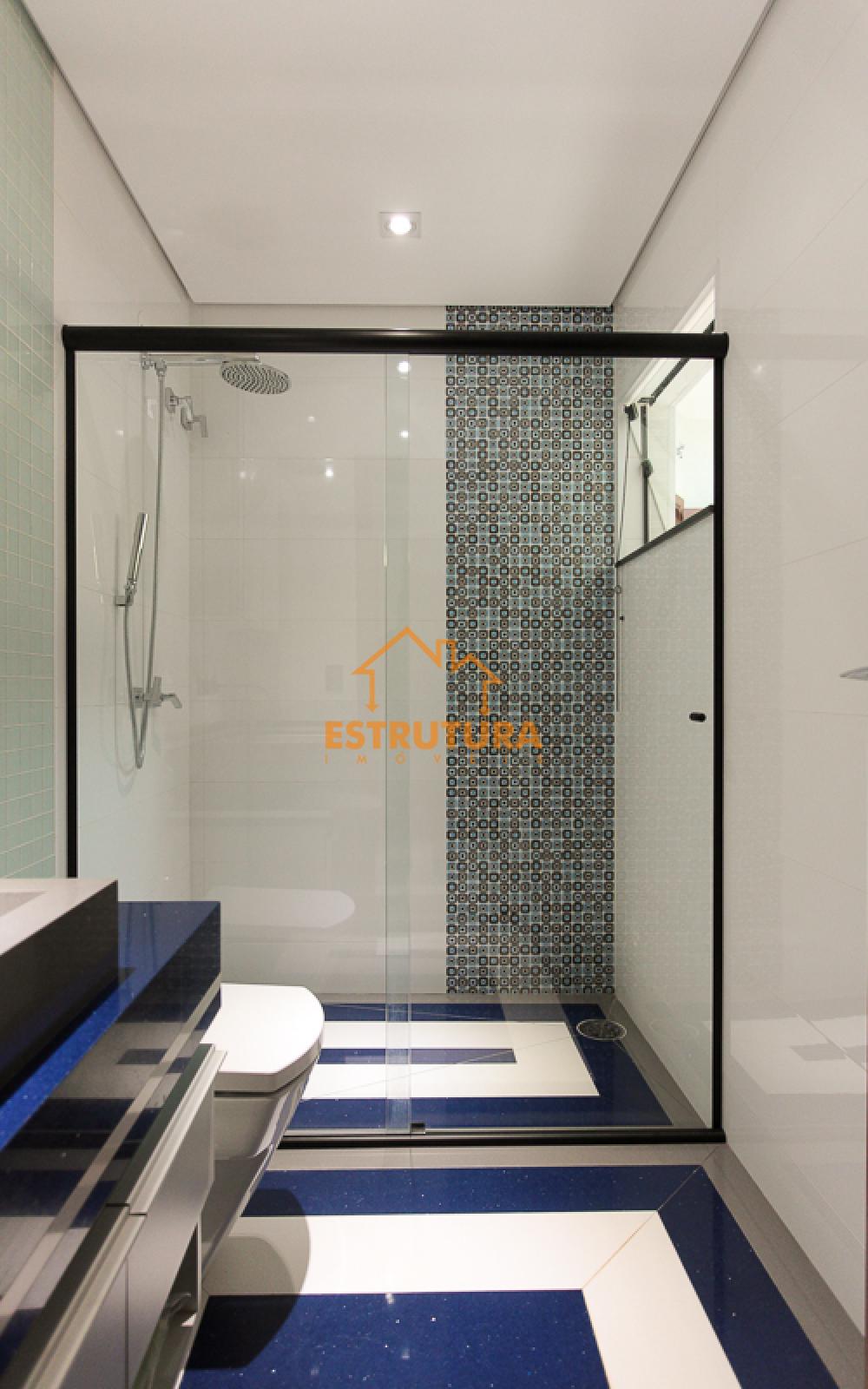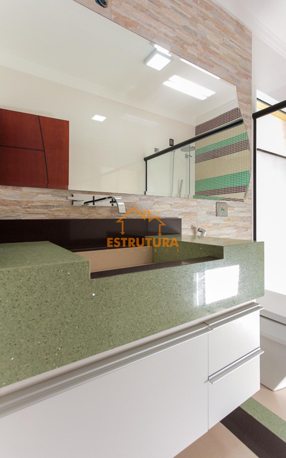 Em seu pavimento inferior possui hall de entrada, sala com painel de TV, e iluminação em led. Sala de jantar com iluminação pendente, jardim de inverno, cozinha com armários planejados, balcão para café e ampla área de serviço com despensa. Separados da área de convivência, há também 1 banheiro social, 2 dormitórios com móveis planejados, e 1 suíte com closet.
