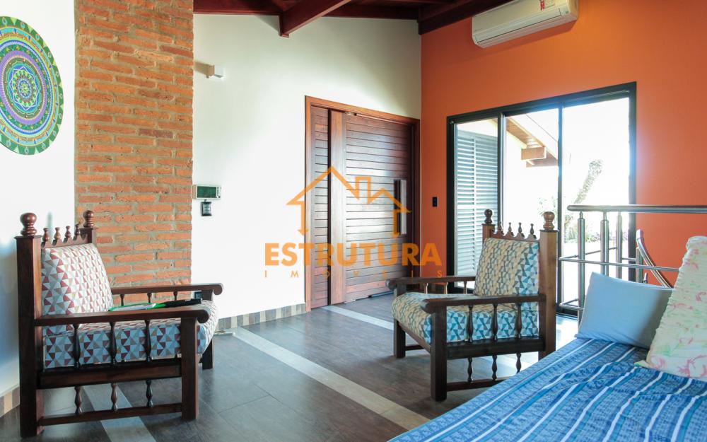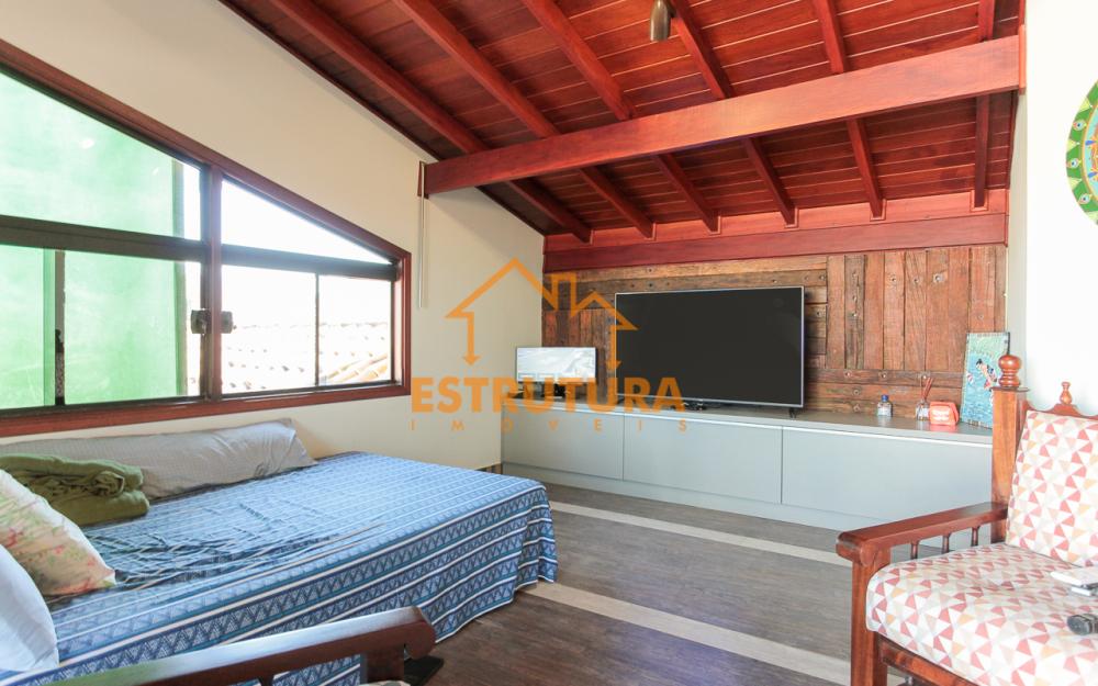 E em seu pavimento superior possui home, e 1 suíte com móveis planejados, com acesso ao terraço. Proporcionando uma bela vista da área externa.