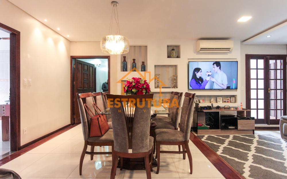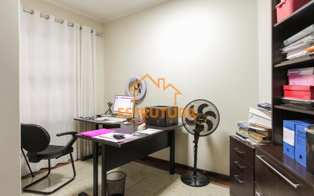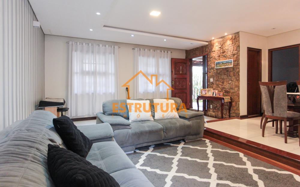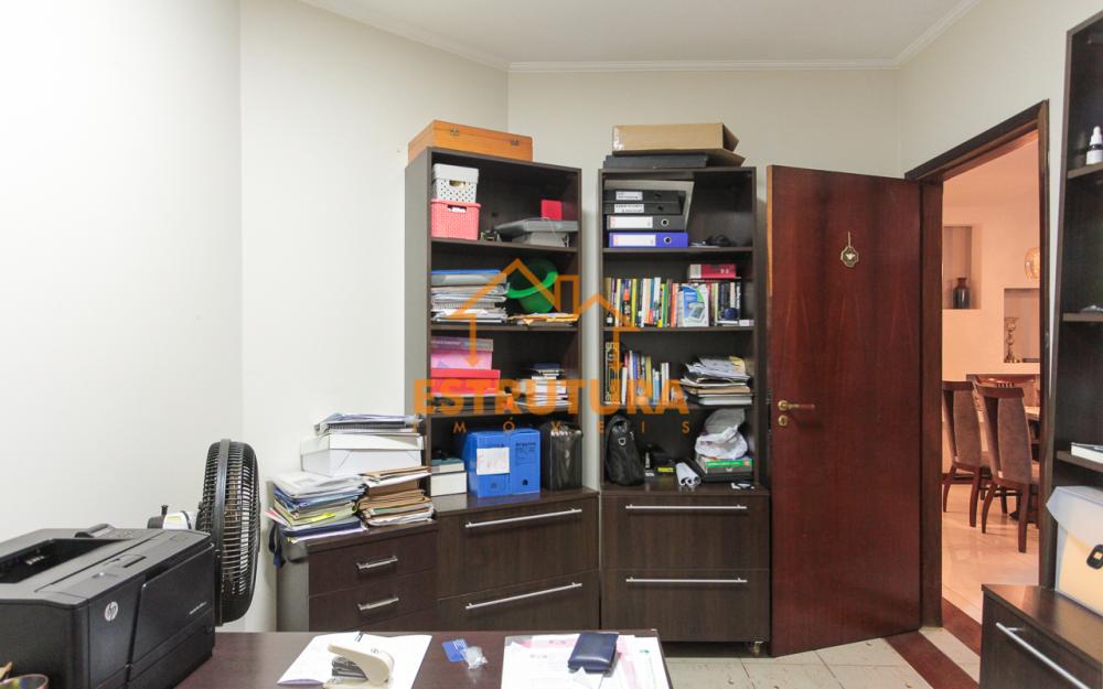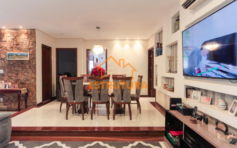 Casa contendo garagem para 4 carros, sala de tv e sala de jantar integradas, escritório, lavabo, cozinha com armários, 4 dormitórios sendo 2 suítes, banheiro social.