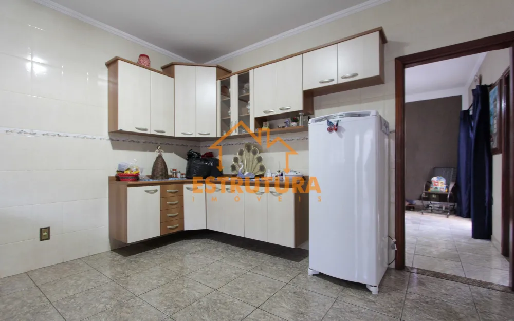 Garagem cabe aproximadamente até 6 carros, possui aquecedor solar para banheiros e torneiras da cozinha, ampla sala, sala de jantar, área de luz, cozinha com armários, suíte com closet mais 02 quartos, banheiro social, amplo quintal com espaço com terra, rancho com cozinha e churrasqueira, banheiro social e mais um quarto.