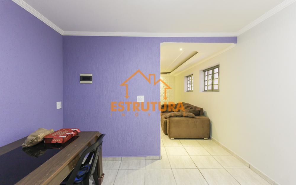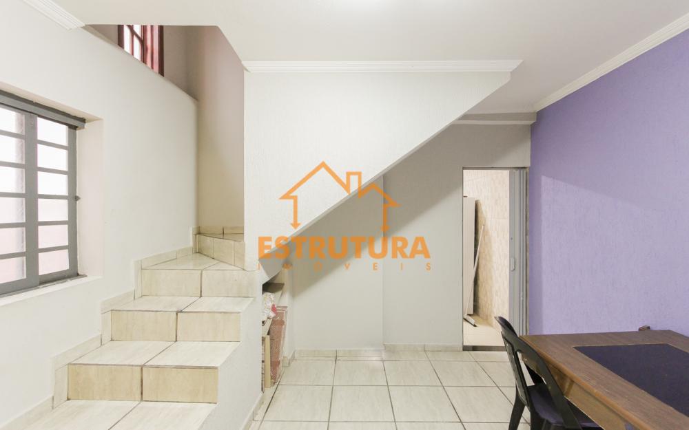 No piso superior contendo 2 dormitórios no piso superior, sala, banheiro social, área gourmet e pequeno quintal.