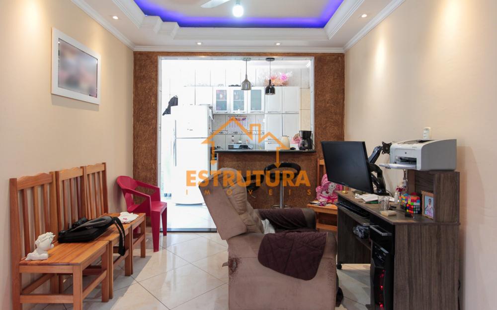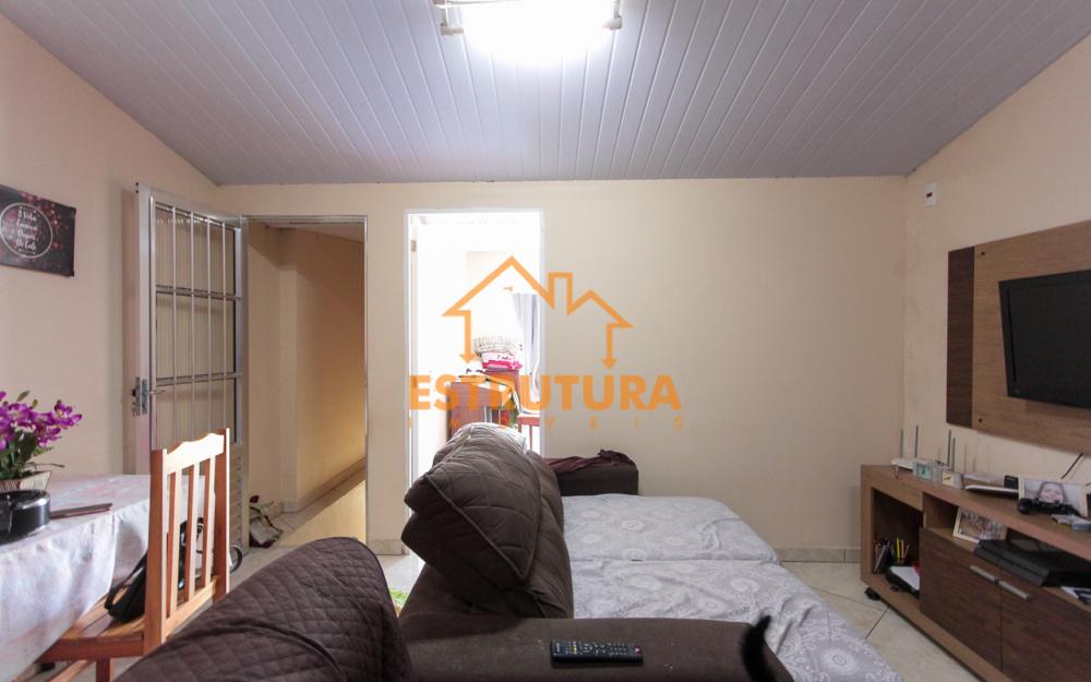 Casa 2: Piso superior. Possui 2 dormitórios, sala de estar, cozinha americana, hall de entrada, banheiro e sacada com blindex.