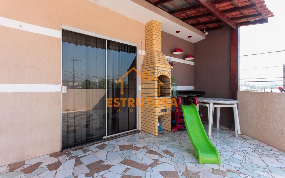 Casa 3: Piso superior. Possui 3 dormitórios, sala de estar e jantar com sanca e luz led, cozinha, banheiro social, área de luz com blindex, área de Lazer com churrasqueira e área de serviço.