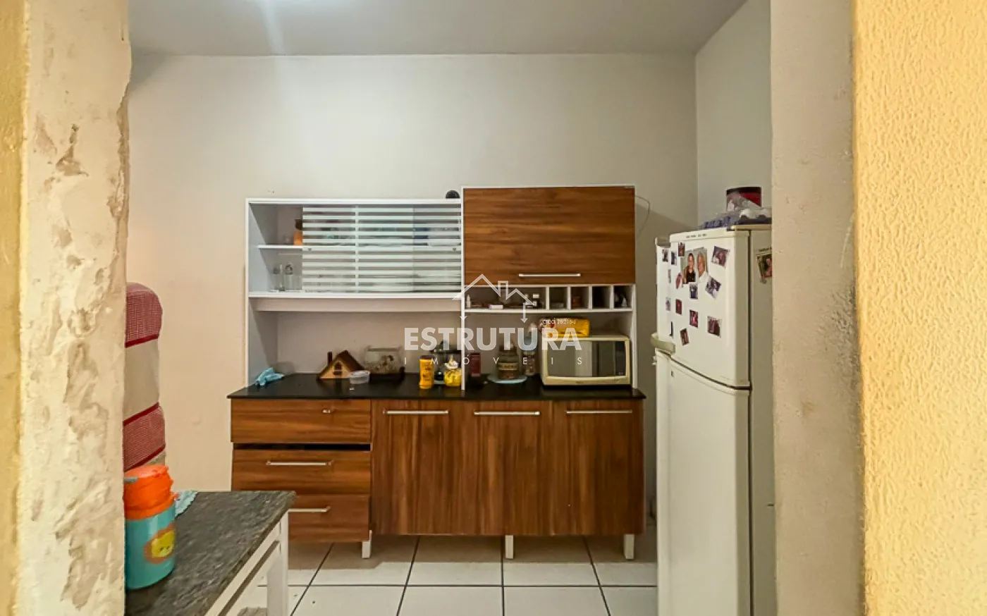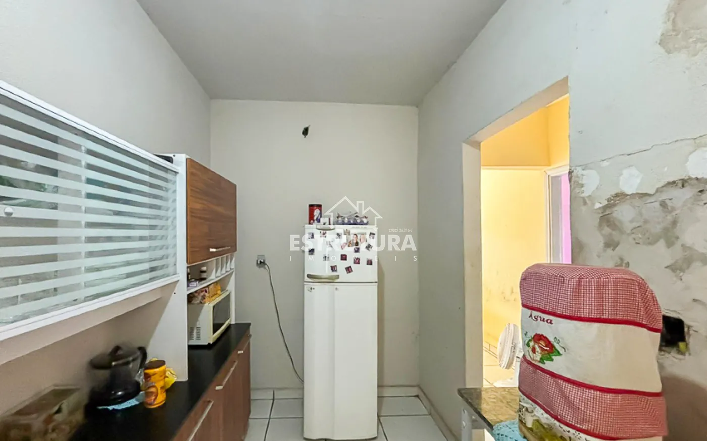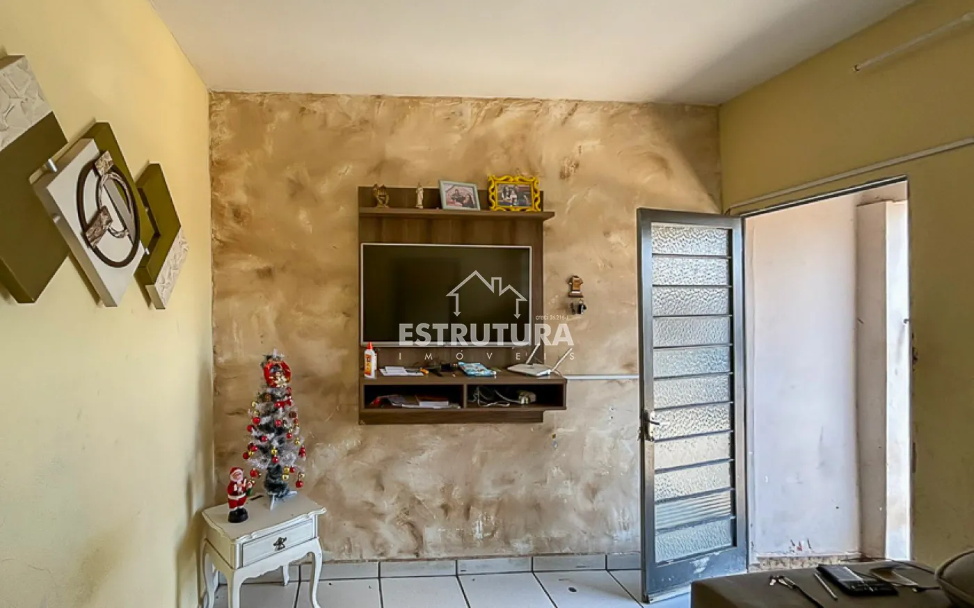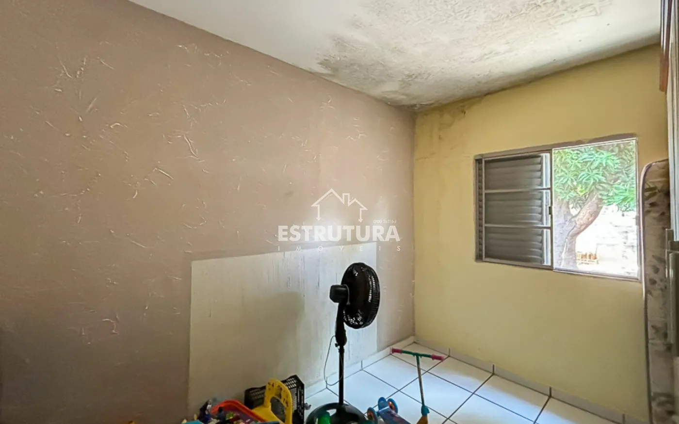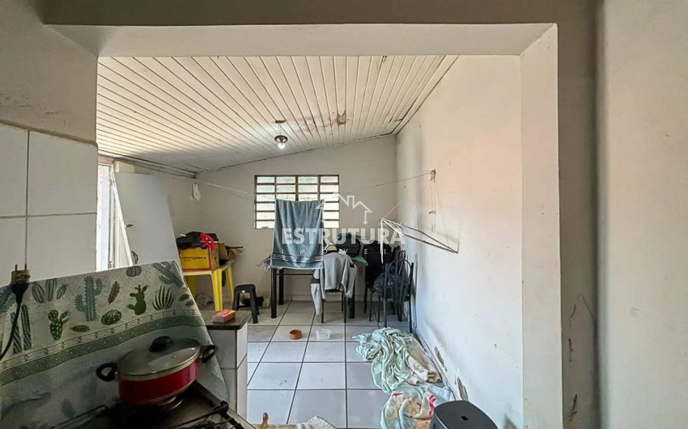 Casa contendo, sala, cozinha, banheiro social e 2 quartos.
