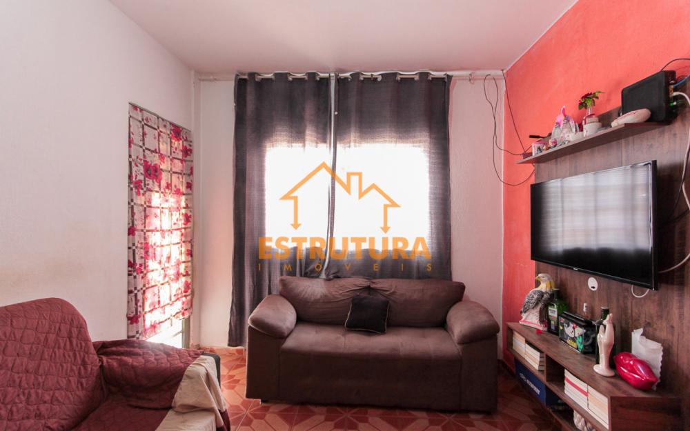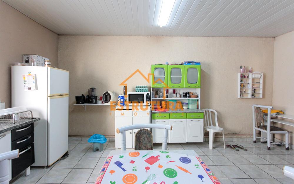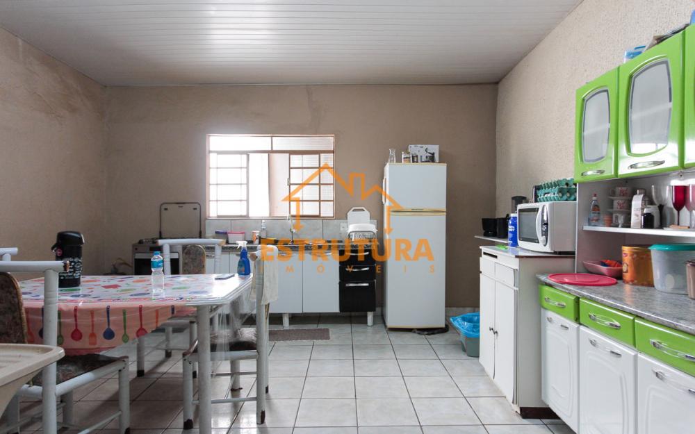 Casa contendo garagem para 4 carros, 1 dormitório, sala, cozinha e banheiro social.