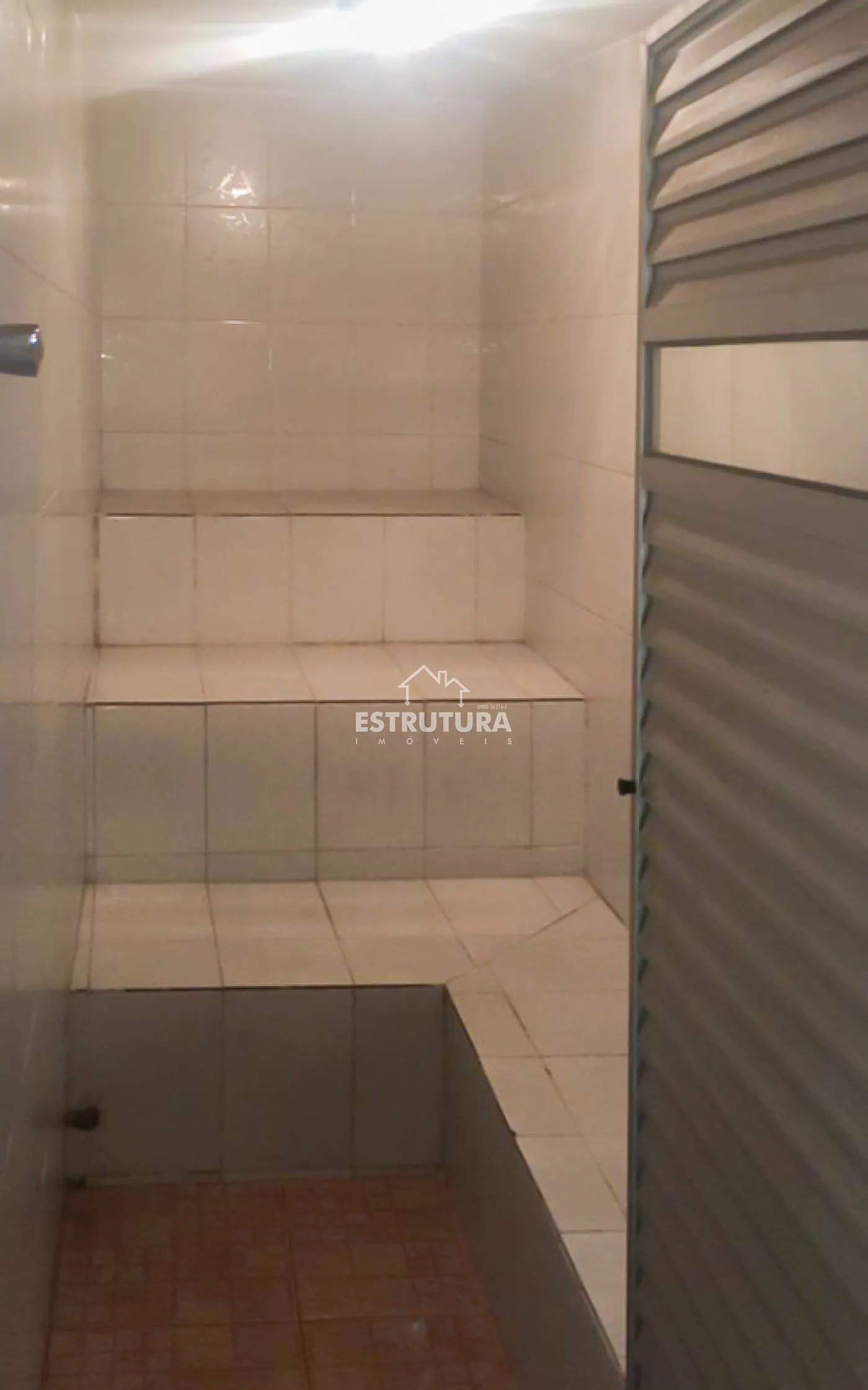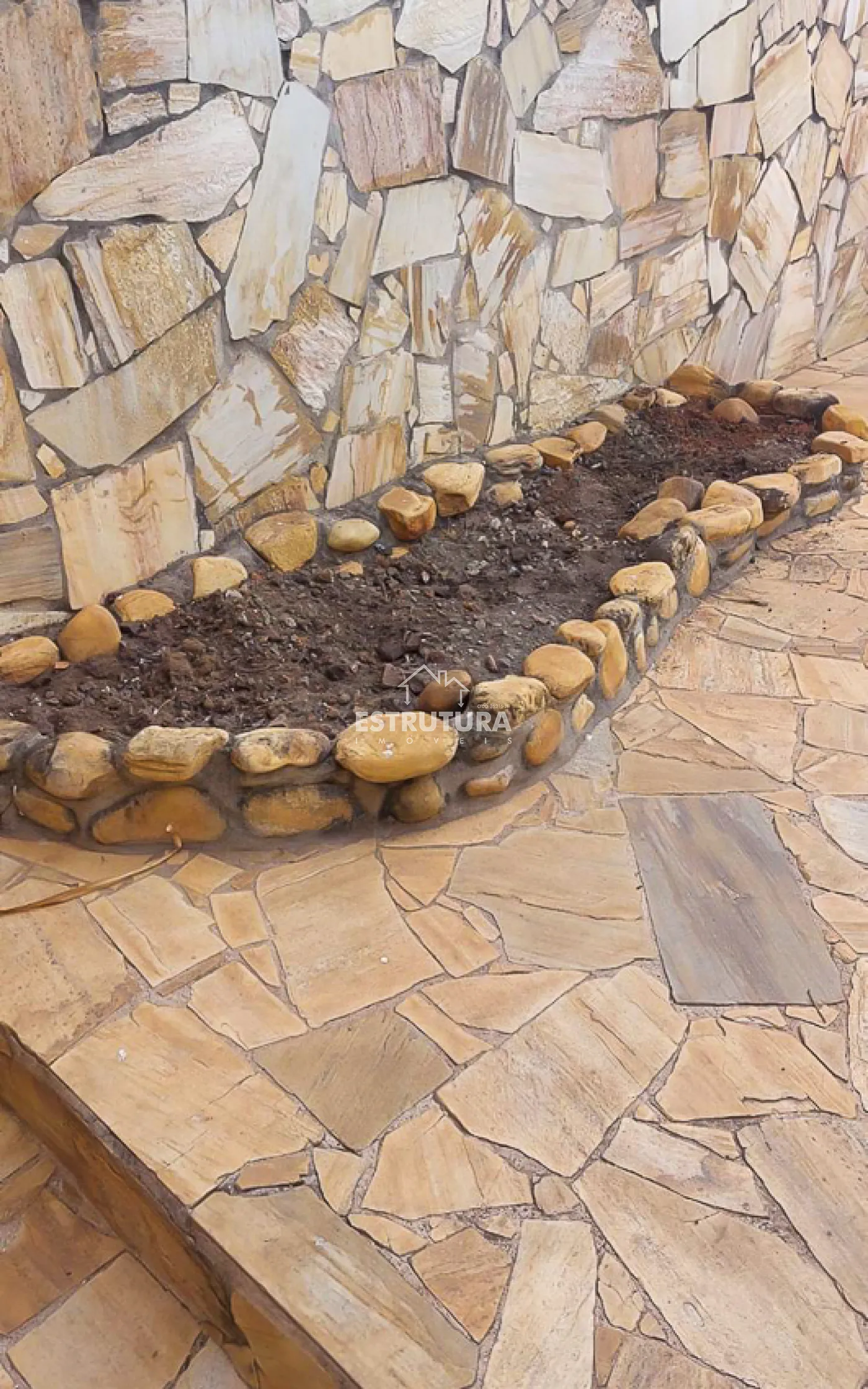 Térreo: sala de jantar, sala de estar, cozinha com dispensa, lavabo, escritório, garagem pra dois carros. Área de lazer: Piscina de azulejo com cascata e ducha, sauna a gás e ducha, churrasqueira com forno a lenha, cozinha, banheiro e sala de estar.