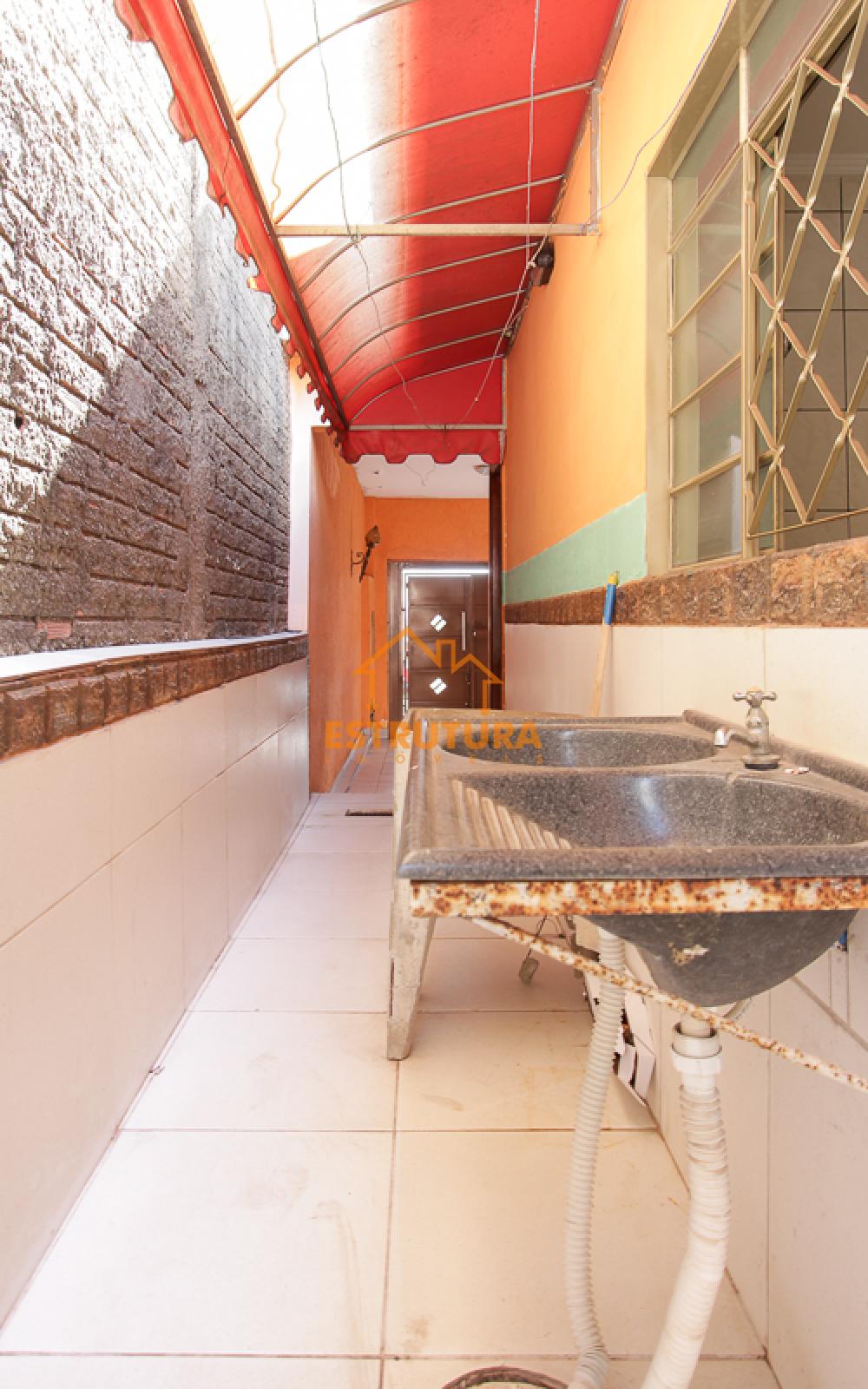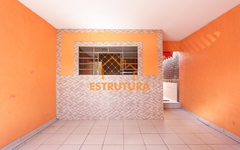 Garagem para 2 veículos, 2 dormitórios sendo uma suíte, sala, copa, cozinha, 1 banheiro social, lavanderia, quarto de despejo e um corredor lateral.
