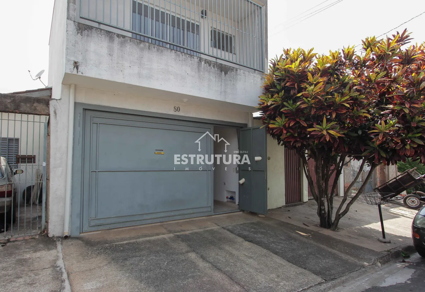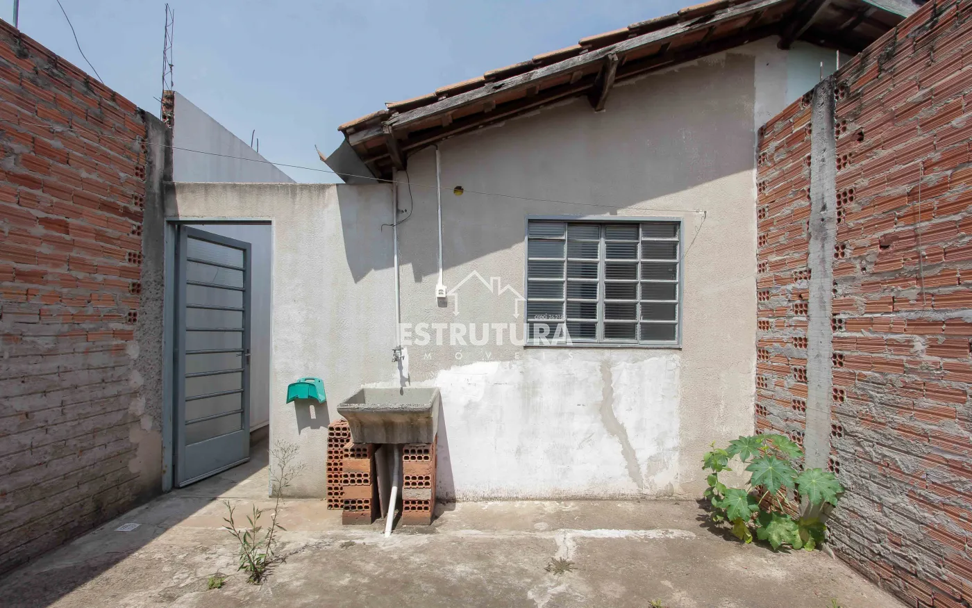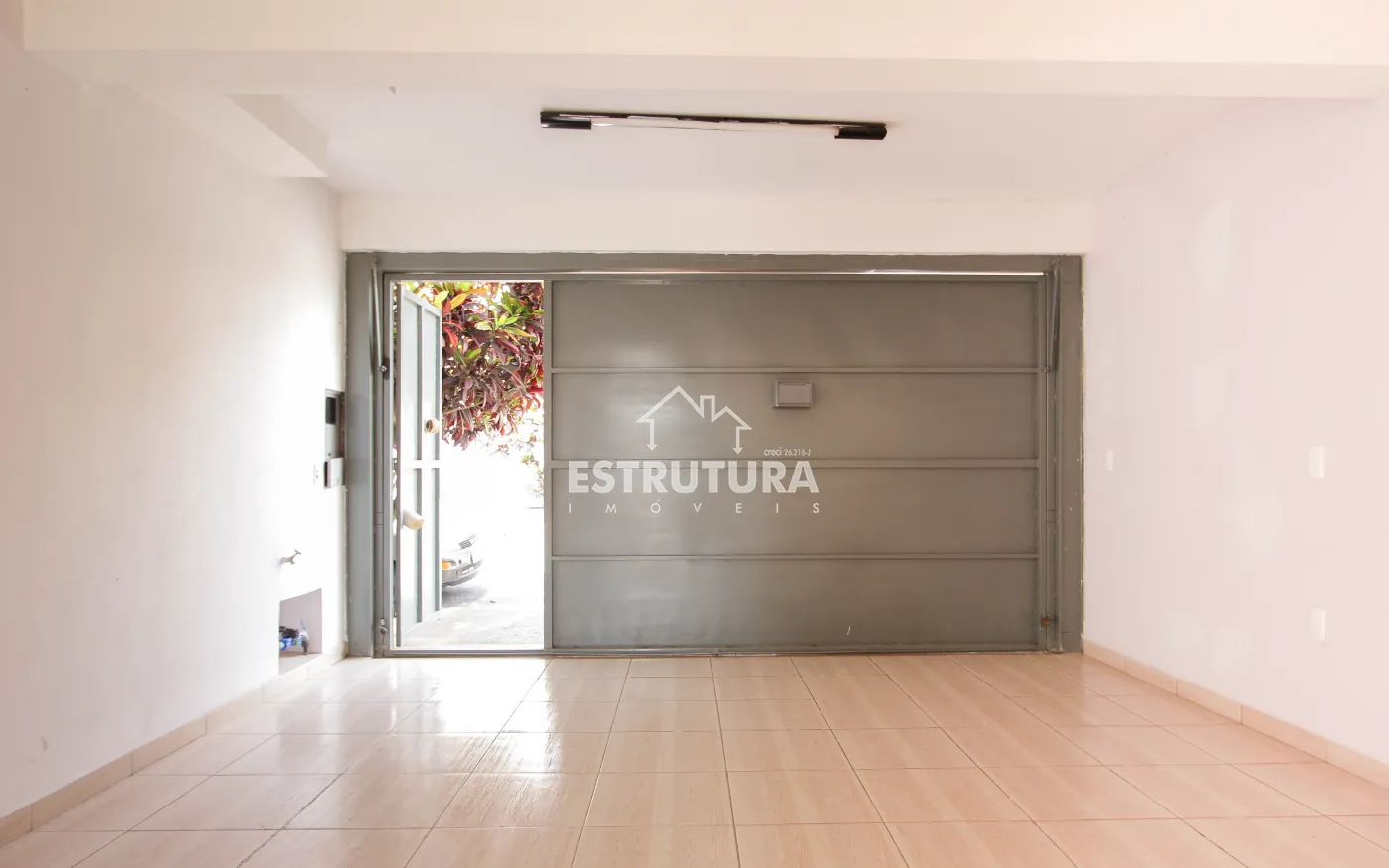 Casa com 4 vagas de garagem e portão eletrônico. Conta com lavabo, sala ampla (com possibilidade de adaptação para dormitório), banheiro social, área de serviço e pequeno quintal. No piso superior, há 2 dormitórios, 1 banheiro e uma sacada.