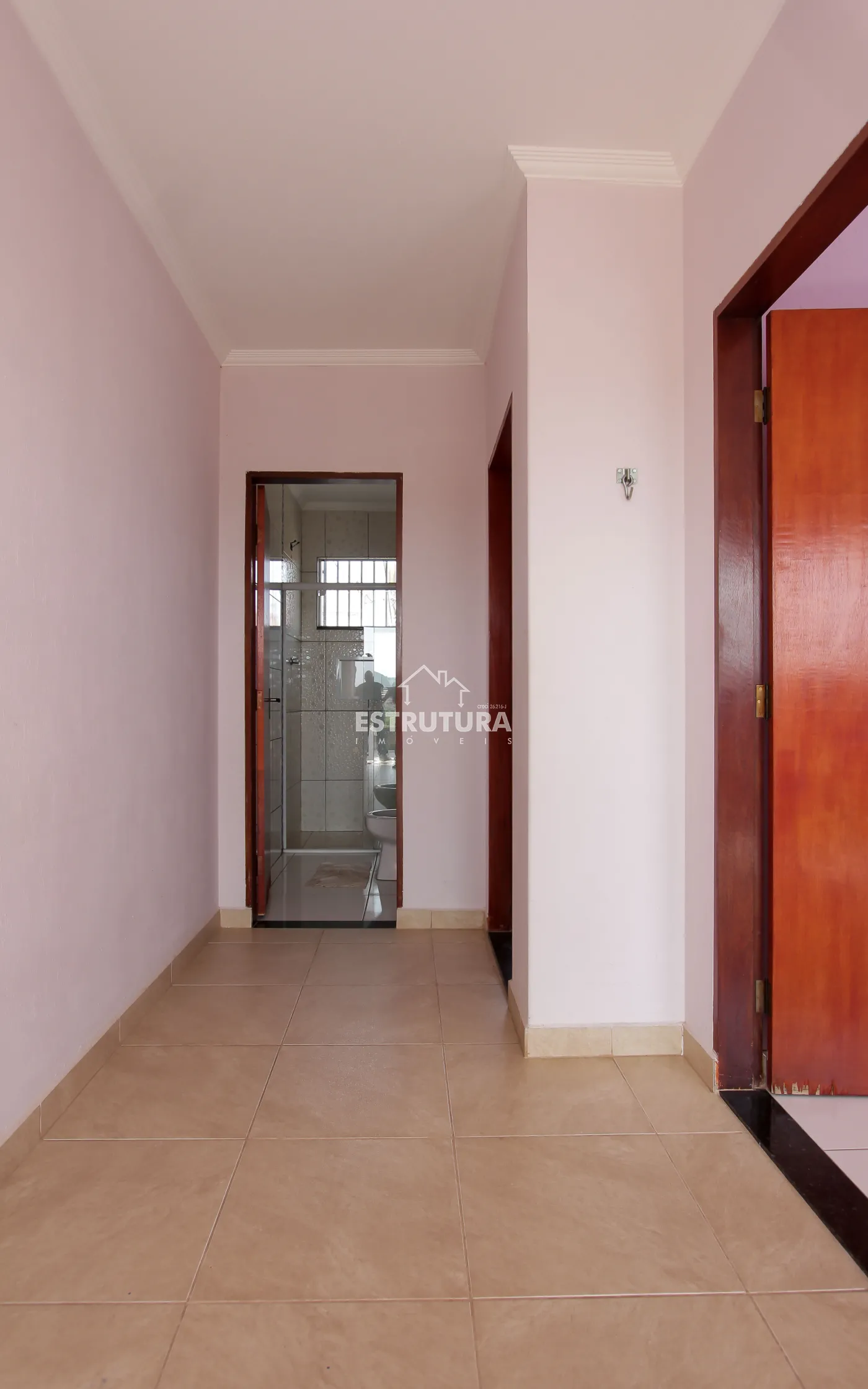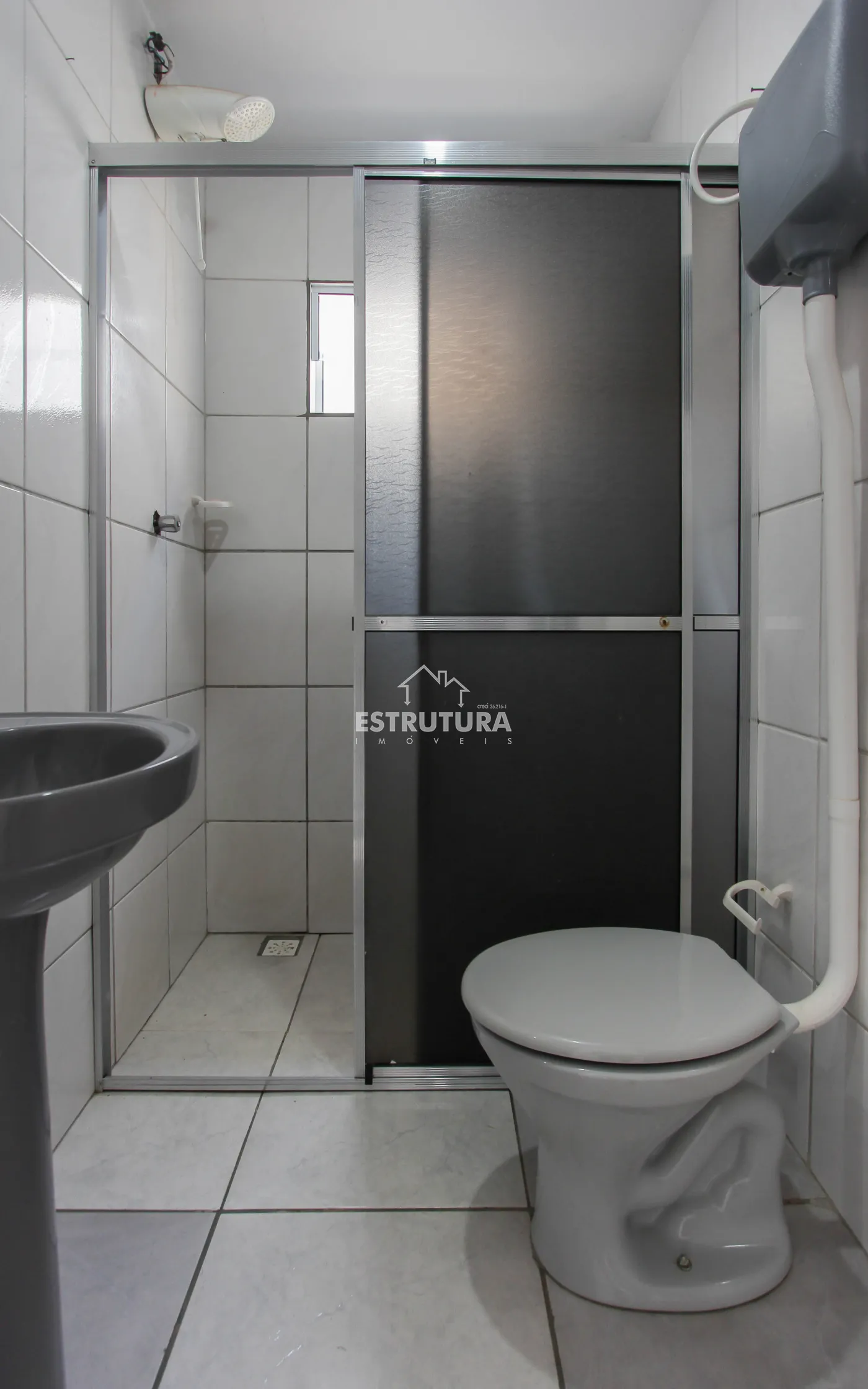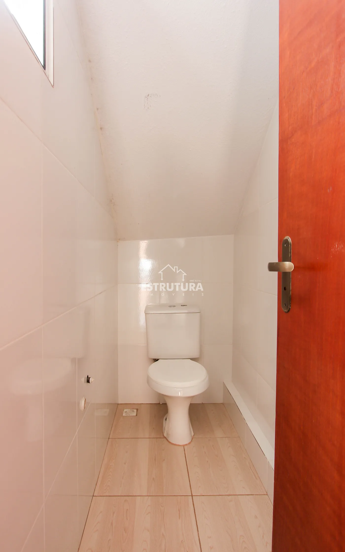 Casa com 4 vagas de garagem e portão eletrônico. Conta com lavabo, sala ampla (com possibilidade de adaptação para dormitório), banheiro social, área de serviço e pequeno quintal. No piso superior, há 2 dormitórios, 1 banheiro e uma sacada.