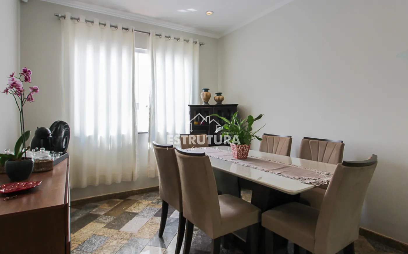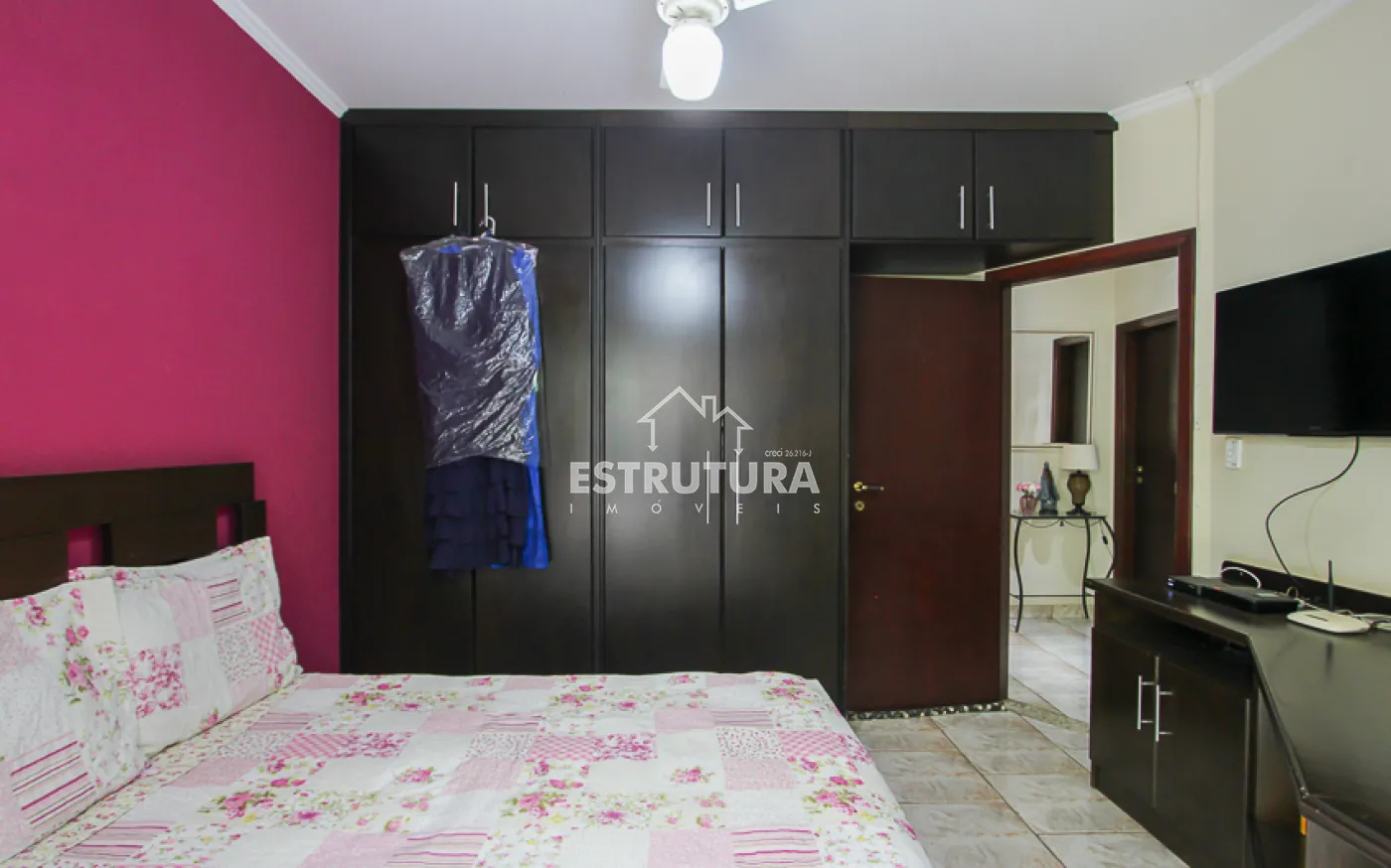 - 3 dormitórios: sendo 2 suítes (uma master com hidromassagem) e 1 quarto com armário embutido em madeira maciça. Todos os quartos possuem papel de parede, ventiladores de teto e estrutura para ar-condicionado.