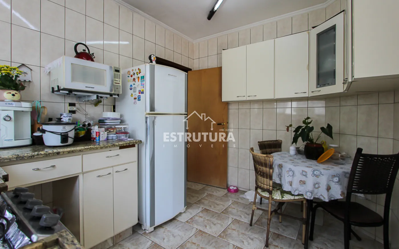 - Cozinha: totalmente revestida em granito, equipada com armários aéreos e gabinetes de aço Itatiaia novos, sugador novo e instalações para lava-louças e bebedouro.