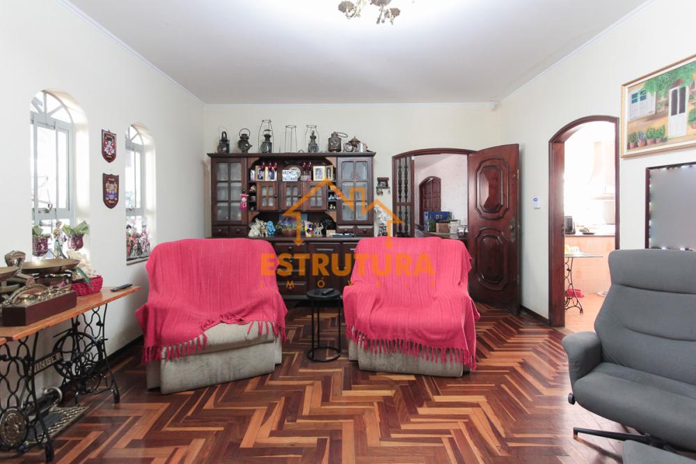 Casa contendo garagem coberta para 4 carros, sala de estar, cozinha e sala de jantar integradas, despensa, 3 dormitórios sendo 2 suítes e banheiro social.