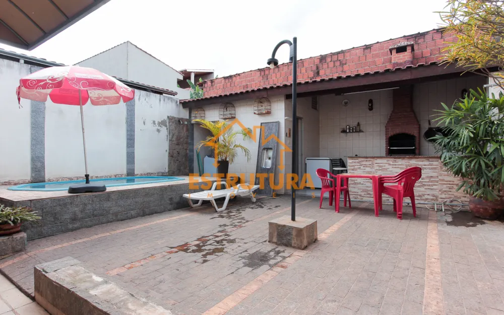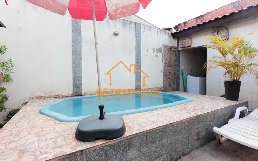 Esta casa oferece um espaço acolhedor e funcional com uma garagem coberta para um carro, uma sala de TV, 2 quartos, um banheiro social, uma cozinha e uma sala de jantar. Ao fundo, você encontrará uma piscina, uma área de lazer com churrasqueira, um quintal, um quarto de depósito, um banheiro social e uma lavanderia, tudo para aproveitar ao máximo seu tempo livre.