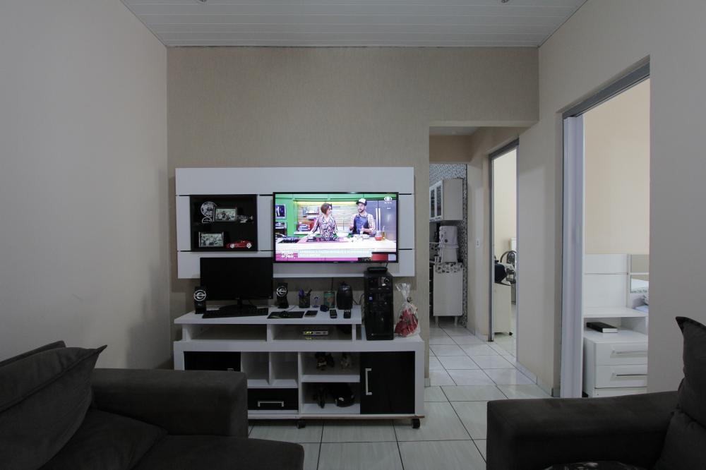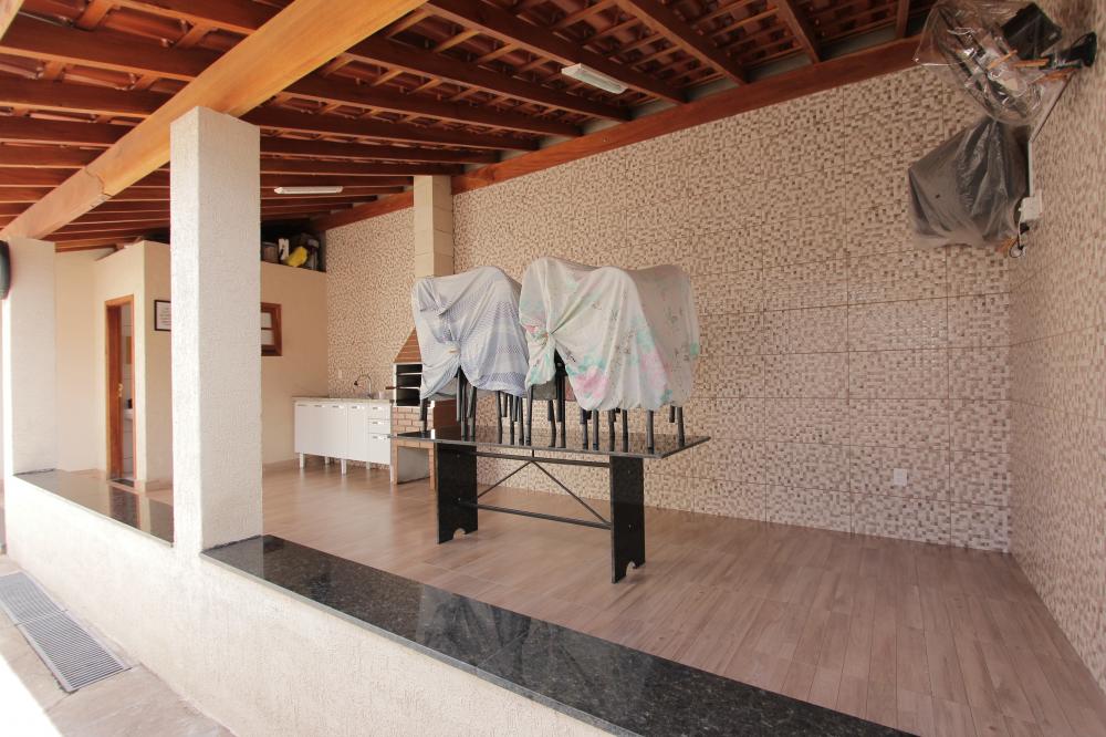 Imóvel com 2 vagas de garagem, 2 dormitórios, 2 WC, cozinha e sala com porta blindex e área de lazer aos fundos.
